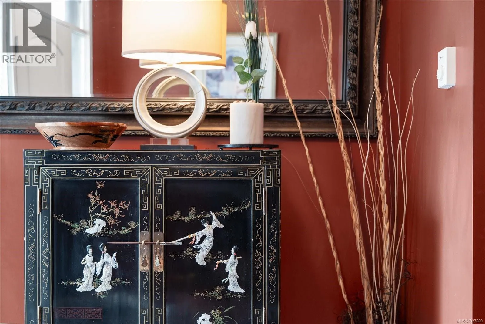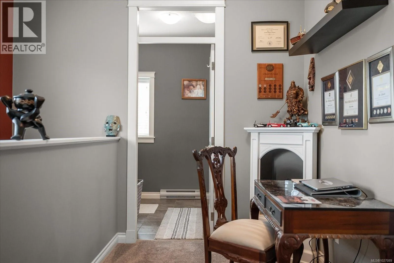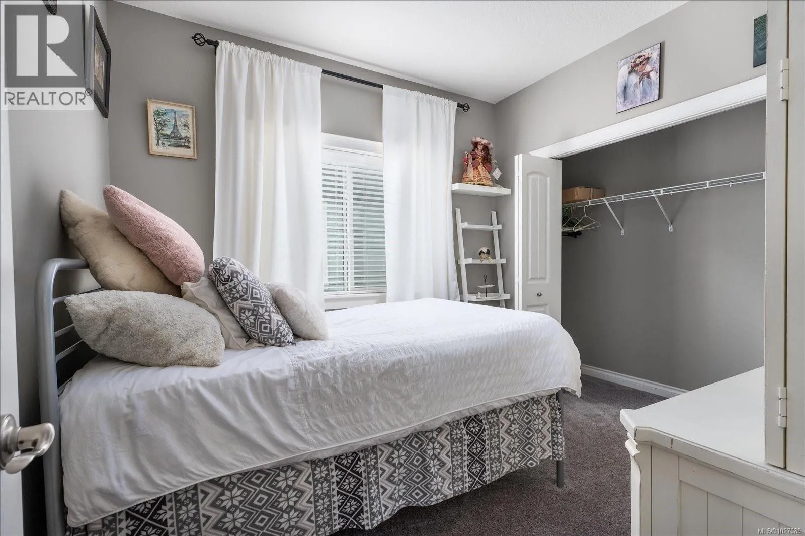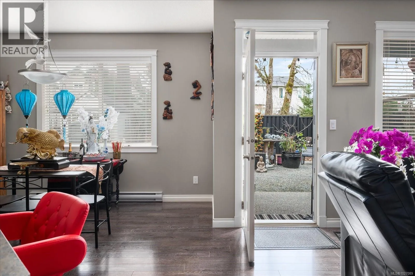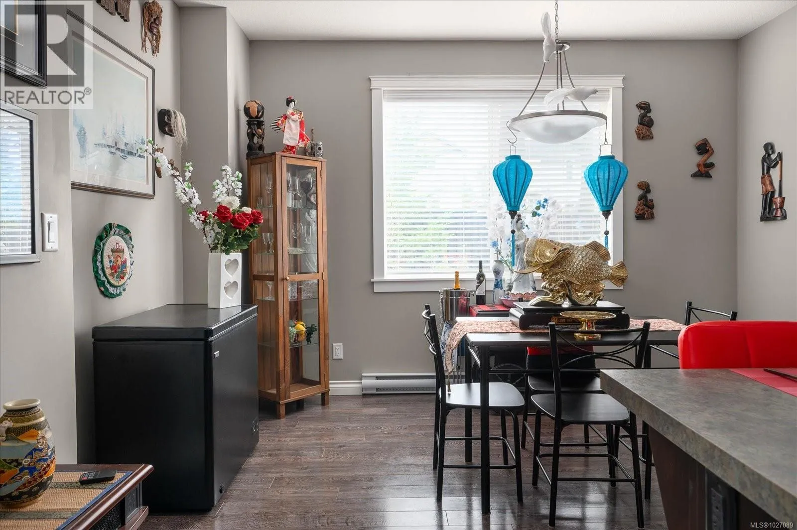 This immaculate home is perfect for a first time buyer, family or retiree, located near Westwood Lake Park which offers hiking, swimming, kayaking, jogging & biking. The 2 storey home is 2143 sq. ft. of fabulous living space with 4 bedrooms & 3 bathrooms in a very desirable neighbourhood & situated on a quiet no thru street. Walk through the front door to the main level and you are greeted with a spacious open plan, 9 ft ceilings, gas fireplace in the living room, large windows allowing an abundance of natural light providing a very bright & airy ambience. The dining area is a nice size perfect for family dinners. Between the living and dining area there is access to the backyard with a patio for sitting, outdoor dining, bbq area all for your outdoor enjoyment, overlooking mature trees & park like setting. This backyard is incredible with all the beautiful flowers, several fruit trees, privacy, it truly is your own little piece of paradise. The gourmet kitchen has tiled backsplash, a convenient island/eating bar, lots of cabinets & counterspace allowing plenty of workspace. Upstairs you will find the primary bedroom with vaulted ceilings, large walk in closet and a 5 piece luxurious ensuite. There are 3 additional bedrooms, a 4 piece bathroom & efficient laundry room with built in cabinets, counter space and sink. The fantastic location is also close to Vancouver Island University. Pride of ownership is very evident in this wonderful home that is suitable for any life style. The back yard is low maintenance, fenced & includes a garden shed for outdoor storage. (id:27476)
