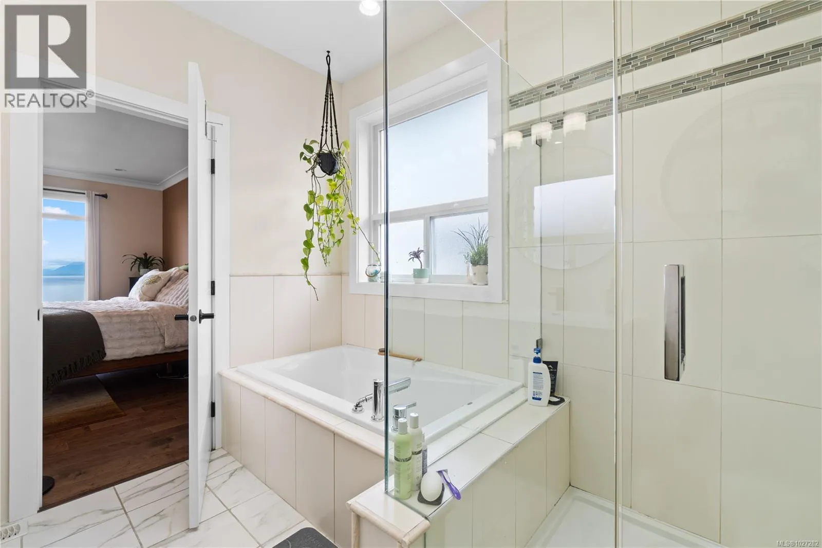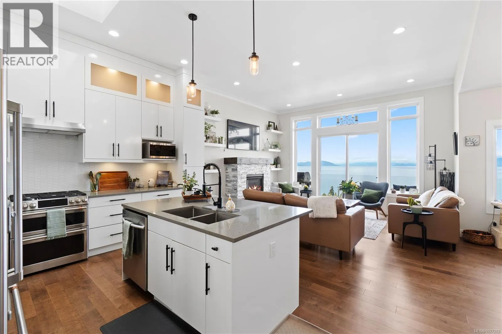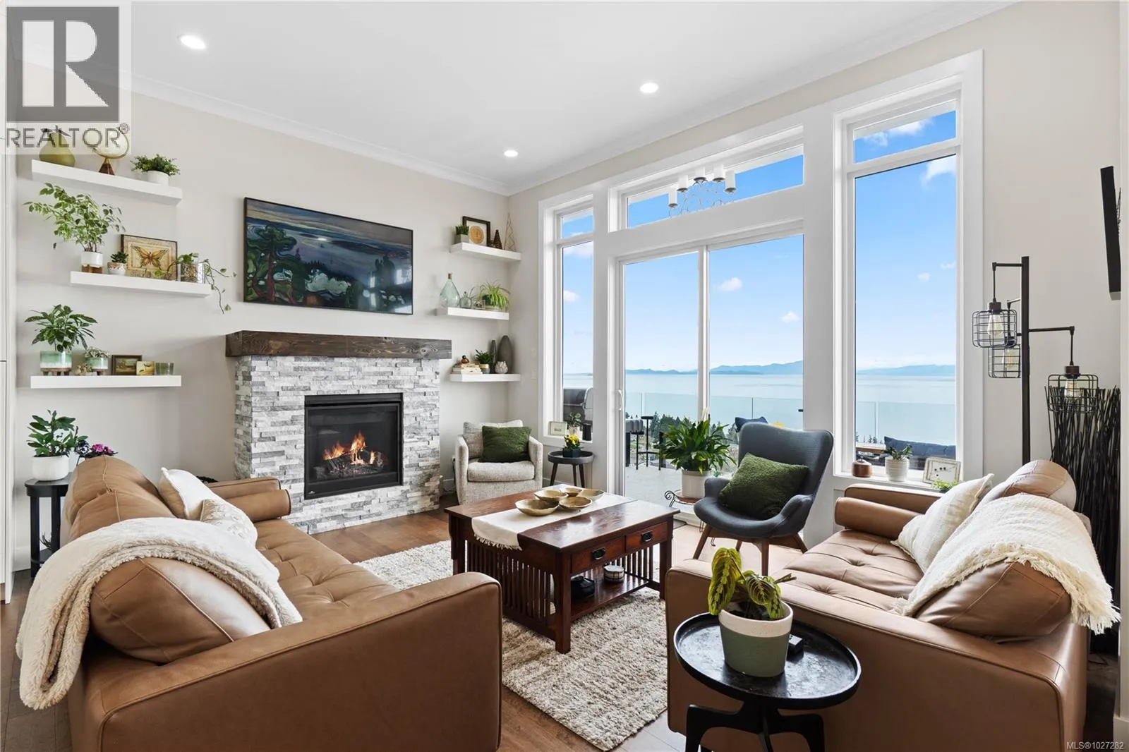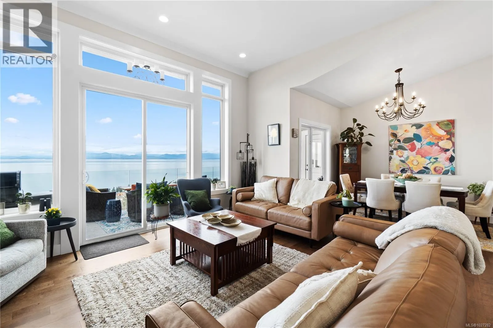 Your new home begins where the ocean views never stop. Sunrise to sunset, across the strait to snow capped mountains, these views will not disappoint. This impressive three level residence will work for a wide range of homeowners. Blended families? Main level has the primary bedroom with a five piece ensuite, a large window to enjoy the views, and a door to the deck for morning coffee. The high ceilings open the living/dining room while the chefâs kitchen is a dream with granite counters, stainless steel appliances, double oven, and spice kitchen. The second level has three more bedrooms (one with ensuite), another full bathroom and a home theatre/gym space. The third level is a separate two bed legal suite. The bonus is all three levels enjoy the amazing views! Your guests will never want to leave! Quality finishing includes engineered wood floors, topless glass on the deck and rock landscaping in the front with watering system. Measurements by Proper Measure buyer to verif. (id:27476)