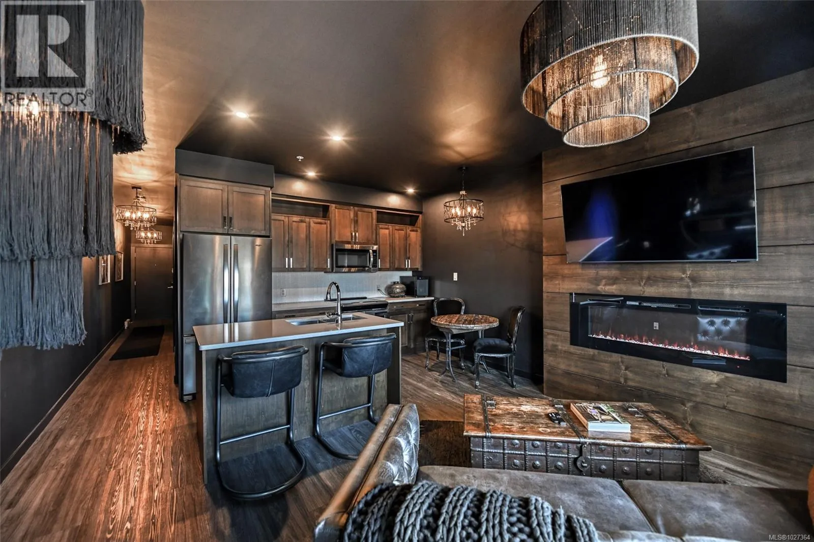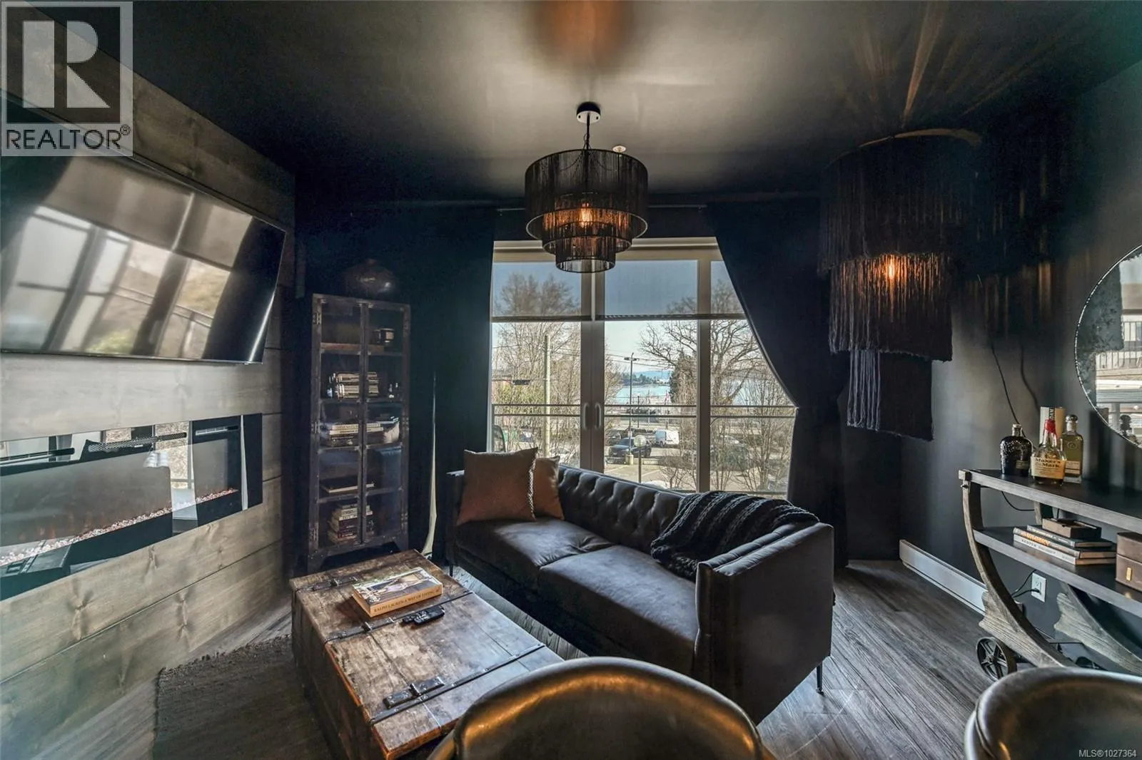 Elevated urban living in the heart of historic Nanaimo. This beautifully refinished 1 bedroom, 1 bath condo with private patio is chic sophistication. Floor-to-ceiling windows showcase views of the Nanaimo Harbour & the Harbourfront Walkway creating a seamless connection to the west coast lifestyle. Inside every detail has been thoughtfully curated- soft-close cabinetry, quartz countertops, sleek stainless-steel appliances, upgraded shower head & bathroom faucet, gorgeous designer lighting & a lg electric fireplace feature wall that anchors the living space in warmth & style. The open-concept layout feels airy & intimate, perfect for both quiet evenings in & easy entertaining. An architecturally striking industrial courtyard contrasted by lush, organic landscaping and secure underground parking add everyday convenience. While the unbeatable downtown location places you steps from dining, boutiques, and the vibrant downtown core. An exceptional blend of luxury, location, and lifestyle. (id:27476)