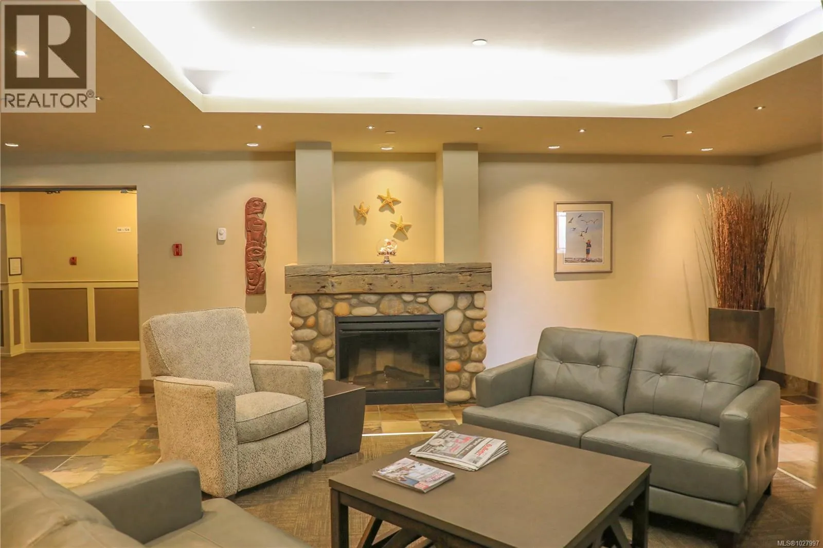 1 BED + DEN TOP-FLOOR CONDO WITH VIEW! Tucked away on the top floor of the popular Texada building in North Nanaimo, this bright and welcoming 1 BED & DEN condo offers distant ocean views from the balcony and a comfortable, easy-living layout. Inside youâll find updated flooring, modern LED lighting, and a cozy electric fireplace with power above ready for your TV. The kitchen features stainless steel appliances, updated countertops, tiled backsplash, under-cabinet lighting, and a handy eating bar, all flowing nicely into the dining and living areas. The den includes a stylish built-in Murphy bed, making it perfect for visiting family or overnight guests while still working well as a home office. The spacious primary bedroom fits a king-sized bed and offers balcony access, a walk-in closet, and a four-piece ensuite with heated floors. In-unit laundry, underground parking, a roomy balcony, and access to the buildingâs fitness room round out this great home. (id:27476)