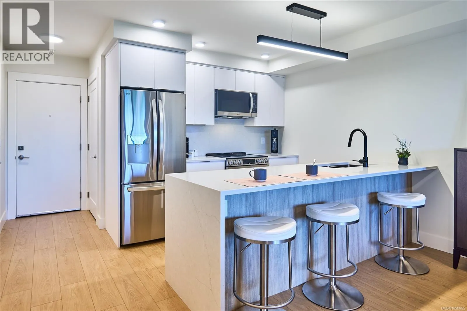 Discover Lumina, perfectly positioned in the heart of Nanaimoâs Harbourview District â a Principal Property community. Just moments from the seawall, harbourfront, cafés, parks, and Hullo Ferries, Lumina places you in one of downtownâs most dynamic, walkable neighbourhoods. This beautifully designed home showcases contemporary comfort and craftsmanship with open-concept living, premium finishes, and natural light. A covered patio extends from the main living space, offering an inviting place to relax or entertain. From the quartz waterfall island and smart appliances to the soft-close cabinetry and sleek fixtures, every detail reflects understated luxury. Residents also enjoy Luminaâs spectacular rooftop terrace â a private escape with panoramic harbour and mountain views, perfect for unwinding at the end of the day. Blending style, connection, and the spirit of coastal living, this home offers a front-row seat to the energy and growth of downtown Nanaimoâs Harbourview District. (id:27476)