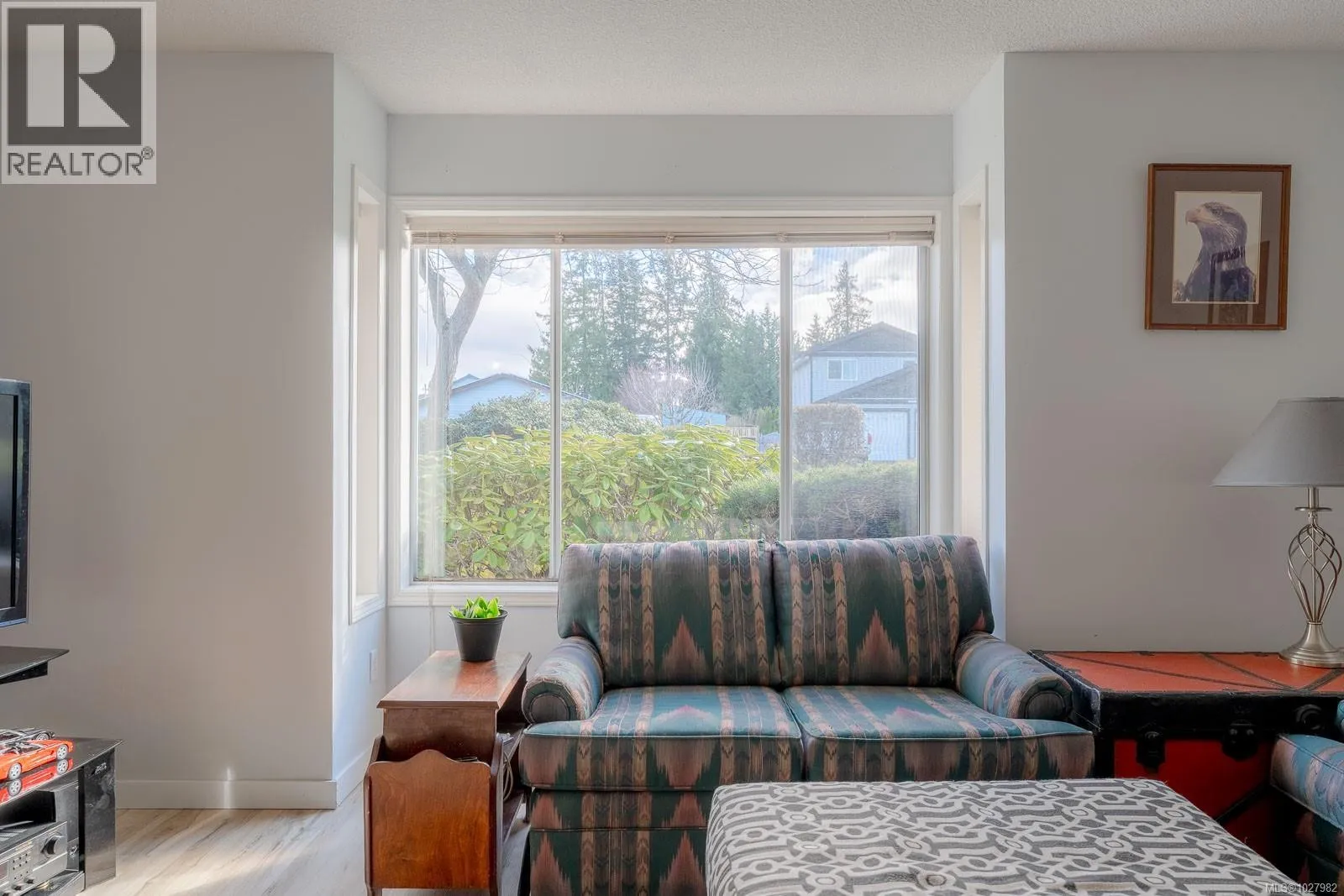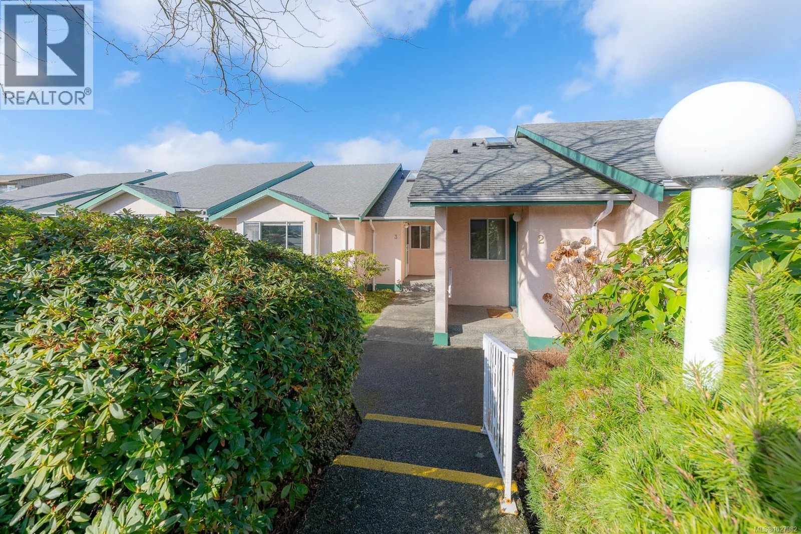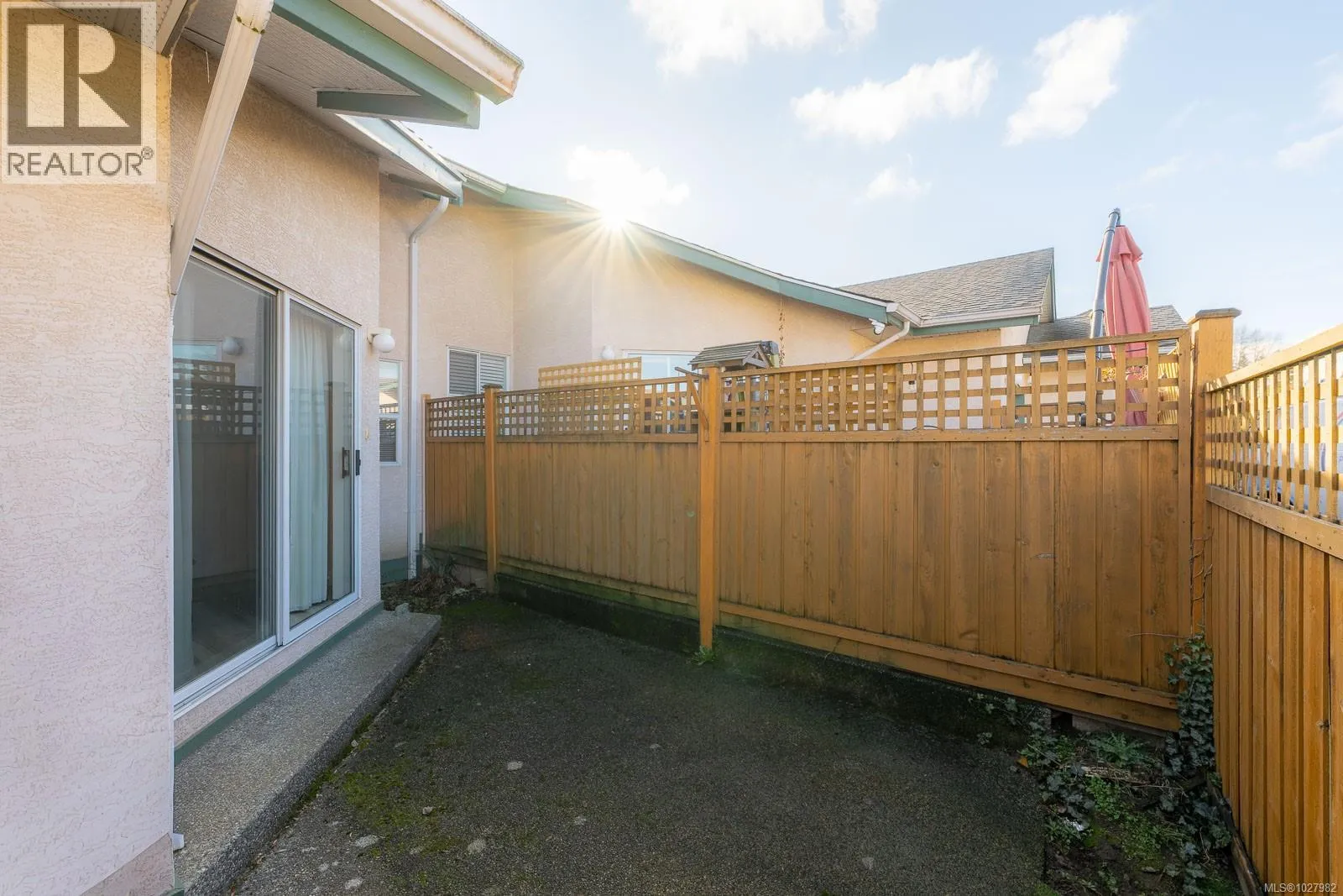This nicely updated 2-bedroom, 1-bathroom patio home offers 913 sq ft of comfortable single-level living in a well-managed 55+ strata community in central Nanaimo. Recent improvements include updated flooring, fresh paint, and modern fixtures, creating a bright, clean, and move-in ready space. The functional layout provides a spacious living area, a practical kitchen, and two bedrooms that work well for guests or a home office. The home features a private front entrance, along with a fenced and private rear patioâperfect for relaxing outdoors. Additional conveniences include in-suite laundry, garage parking at the rear of the complex, and street parking available out front. Pets are allowed, adding flexibility for pet owners. Ideally located just minutes from Nanaimo Regional General Hospital, shopping, restaurants, parks, and everyday amenities, making it an excellent option for those looking to downsize or enjoy easy-care living in a central location. (id:27476)