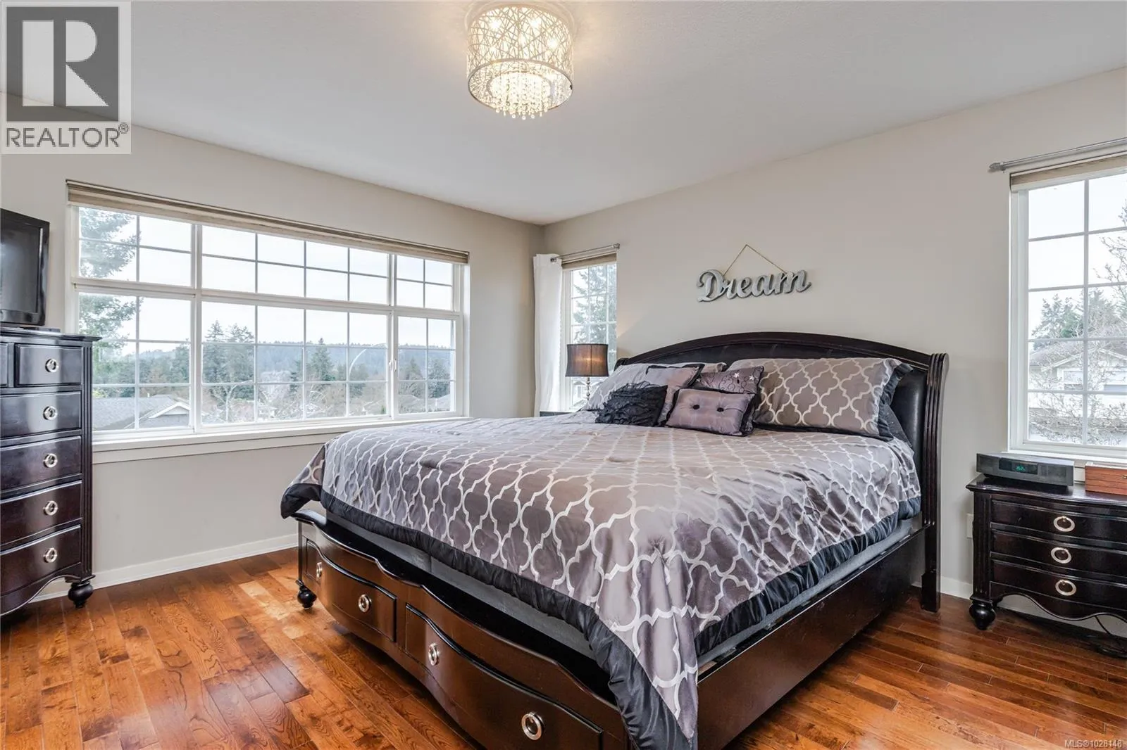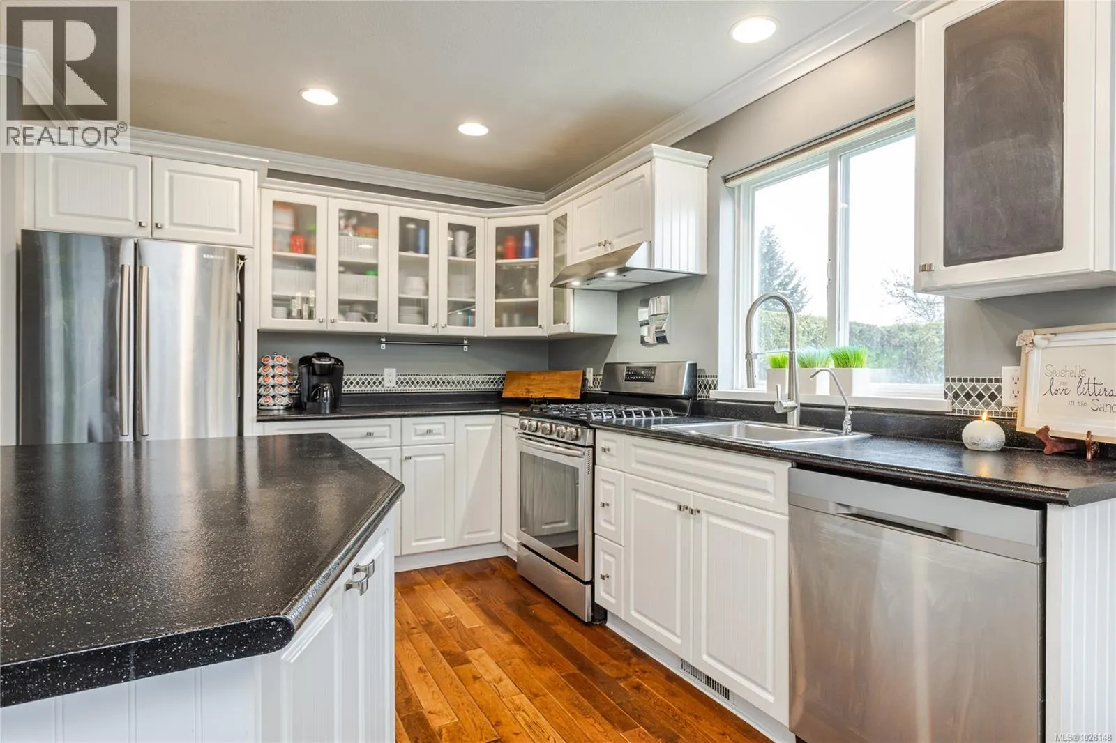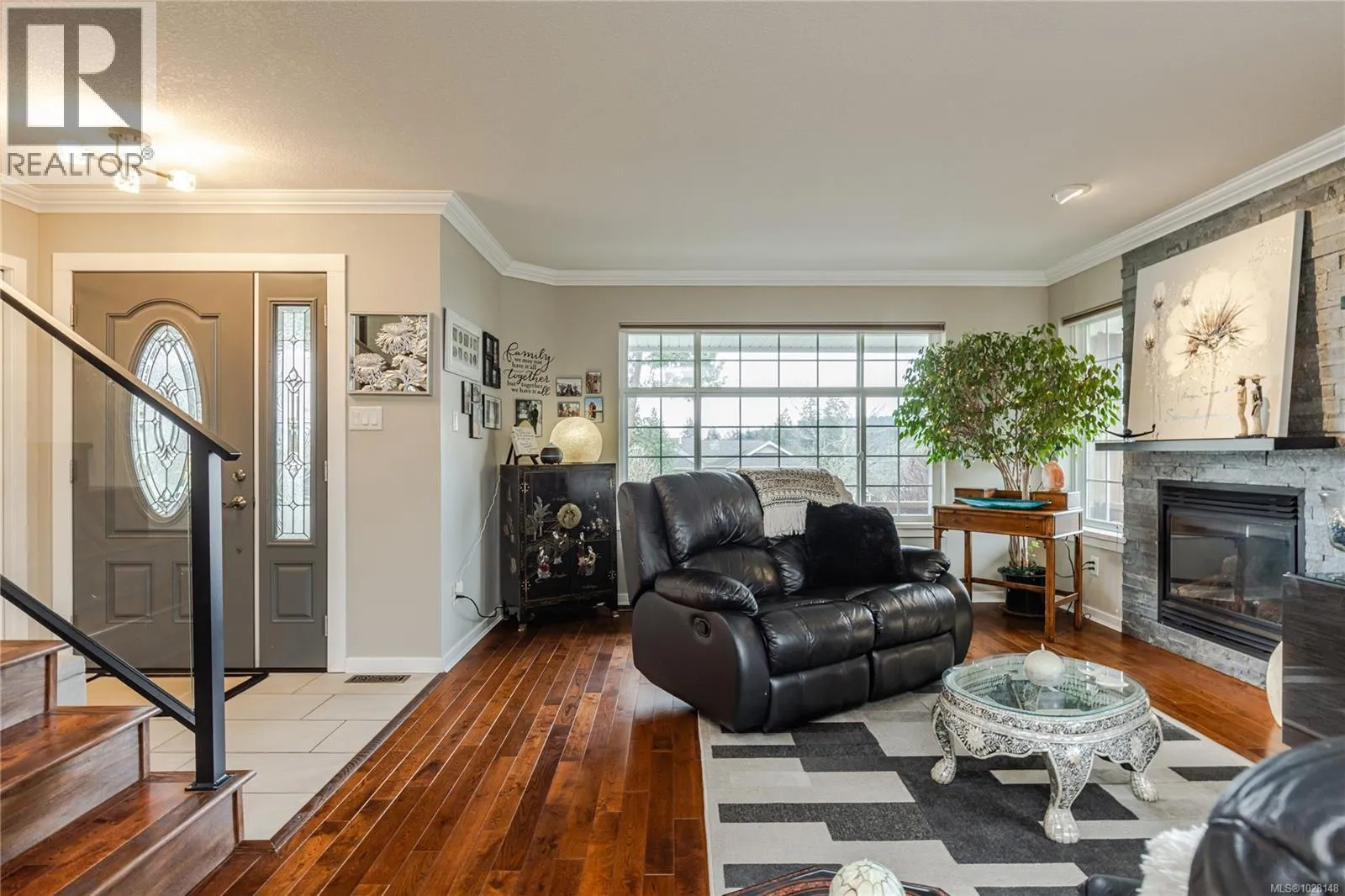 Situated on a spacious 8,973 sq ft corner lot in the heart of Chase River, where space and privacy are truly valued. This impressive home offers 4 bedrooms and 3 bathrooms between 2 levels and shows even better in person. A charming covered front porch welcomes you inside, where pride of ownership is clearly evident. The main level features continuous hardwood flooring, a bright and spacious living room with a natural gas fireplace, an inviting open-concept kitchen that flows through to the adjoining dining and family rooms. The family room is enhanced by French doors opening to an enchanting covered patio, creating a wonderful indoor-outdoor atmosphere. Upstairs, a glass-railed staircase leads to the primary bedroom with walk-in closet and ensuite, 3 additional sun-filled bedrooms and a main bathroom. A heat pump provides economical year-round comfort. Completing the home is a spacious dbl garage, ample driveway space for 5 vehicles and enclosed RV parkingâperfect for all your toys. All measurements are approx. and must be verified if relied upon. (id:27476)