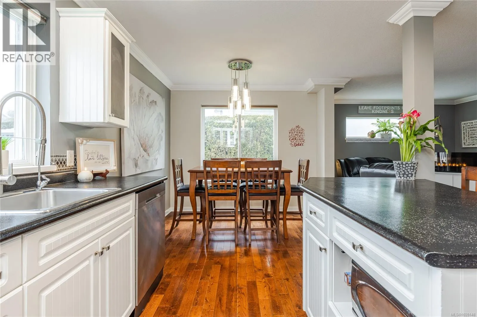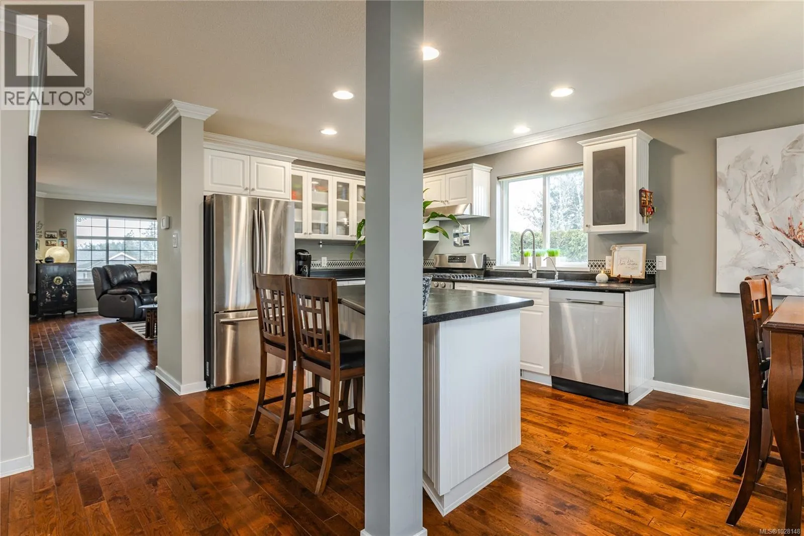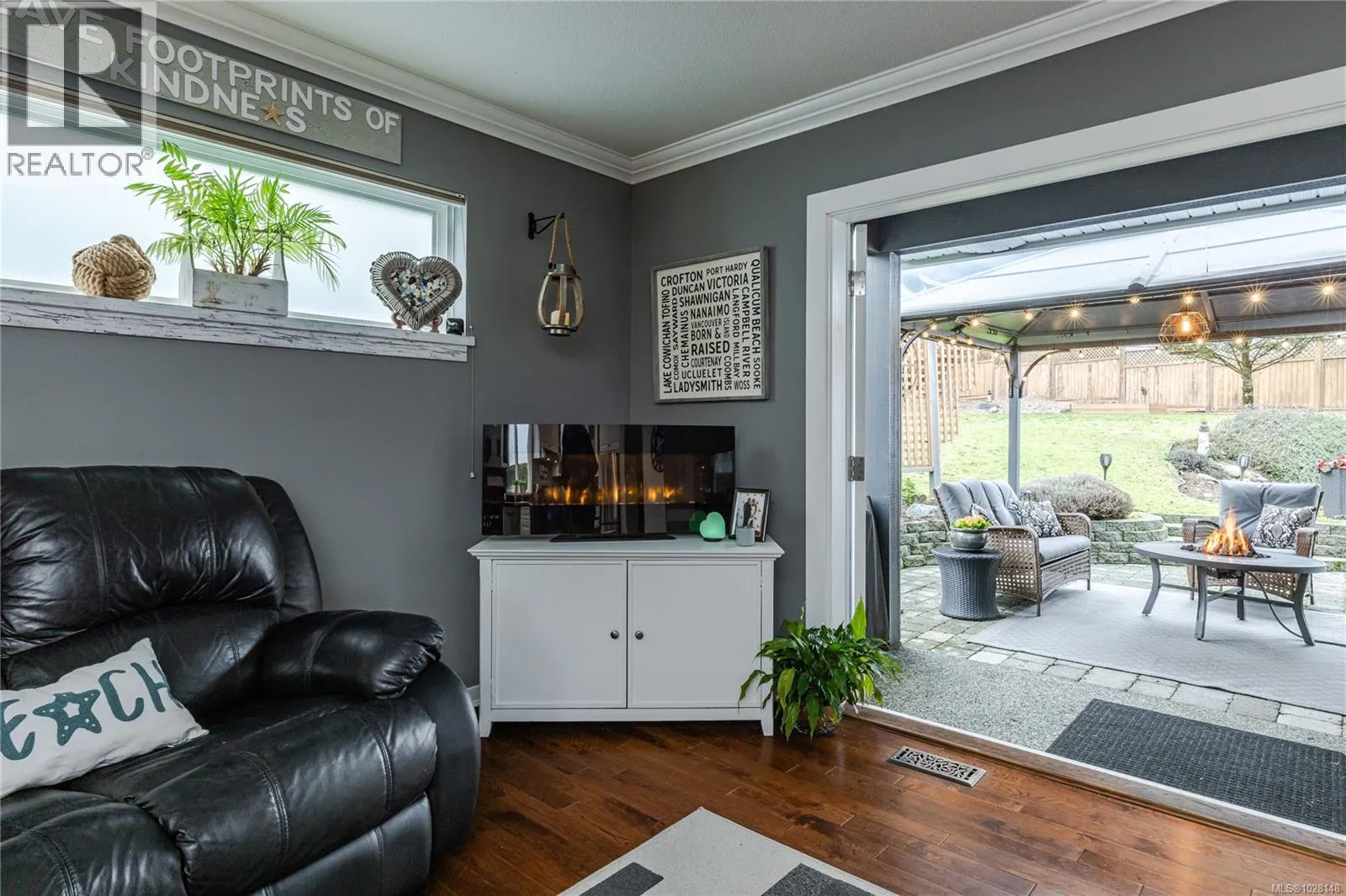 Situated on a spacious 8,973 sq ft corner lot in the heart of Chase River, where space and privacy are truly valued. This impressive home offers 4 bedrooms and 3 bathrooms between 2 levels and shows even better in person. A charming covered front porch welcomes you inside, where pride of ownership is clearly evident. The main level features continuous hardwood flooring, a bright and spacious living room with a natural gas fireplace, an inviting open-concept kitchen that flows through to the adjoining dining and family rooms. The family room is enhanced by French doors opening to an enchanting covered patio, creating a wonderful indoor-outdoor atmosphere. Upstairs, a glass-railed staircase leads to the primary bedroom with walk-in closet and ensuite, 3 additional sun-filled bedrooms and a main bathroom. A heat pump provides economical year-round comfort. Completing the home is a spacious dbl garage, ample driveway space for 5 vehicles and enclosed RV parkingâperfect for all your toys. All measurements are approx. and must be verified if relied upon. (id:27476)