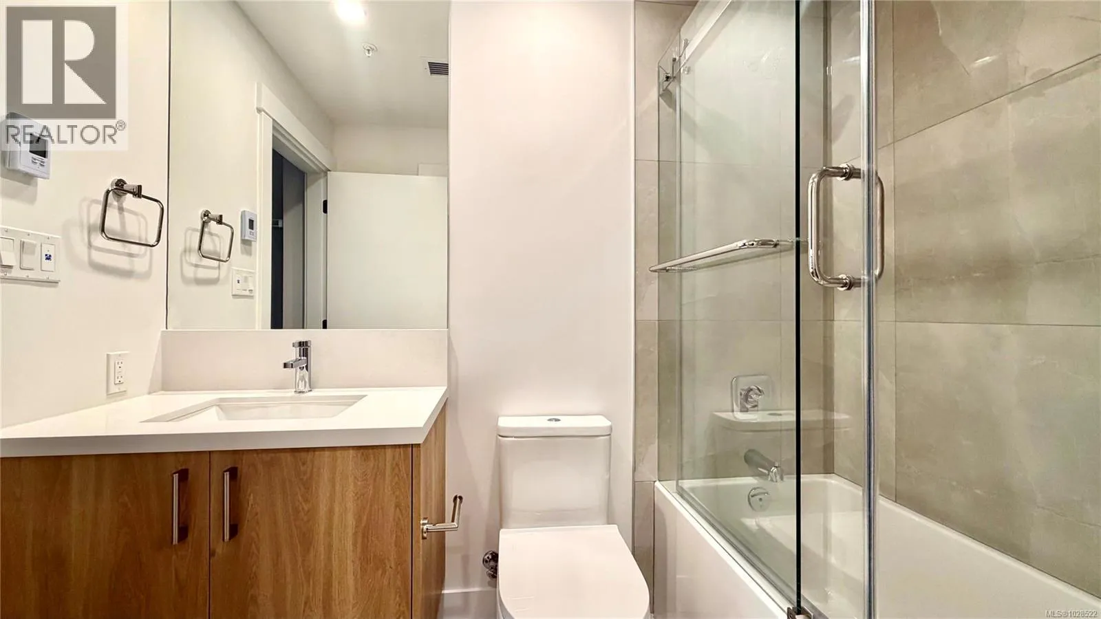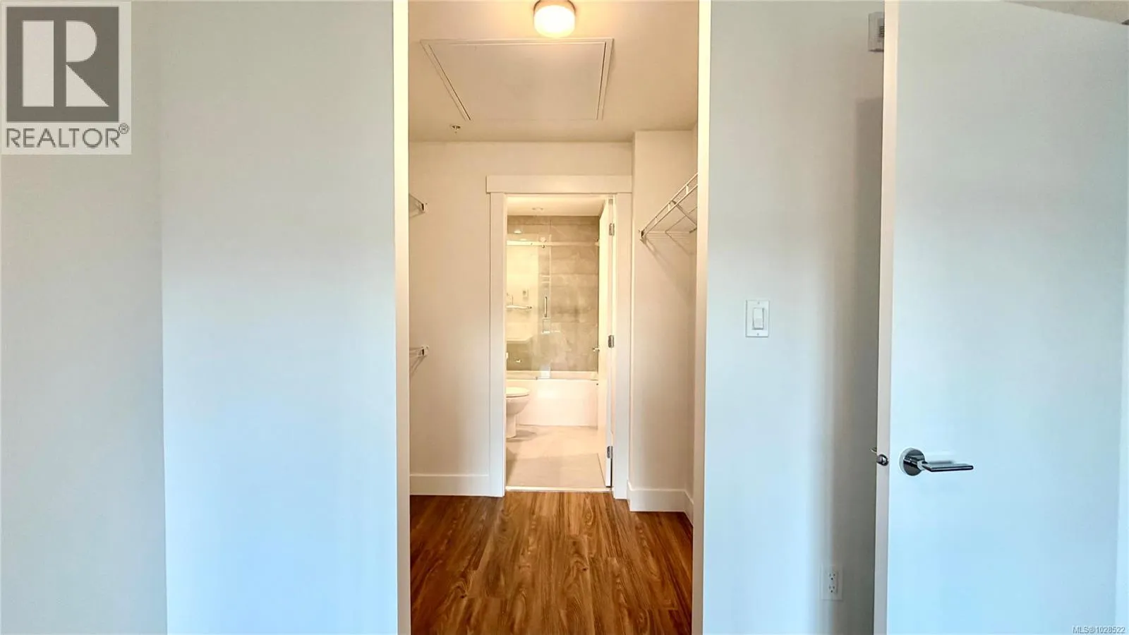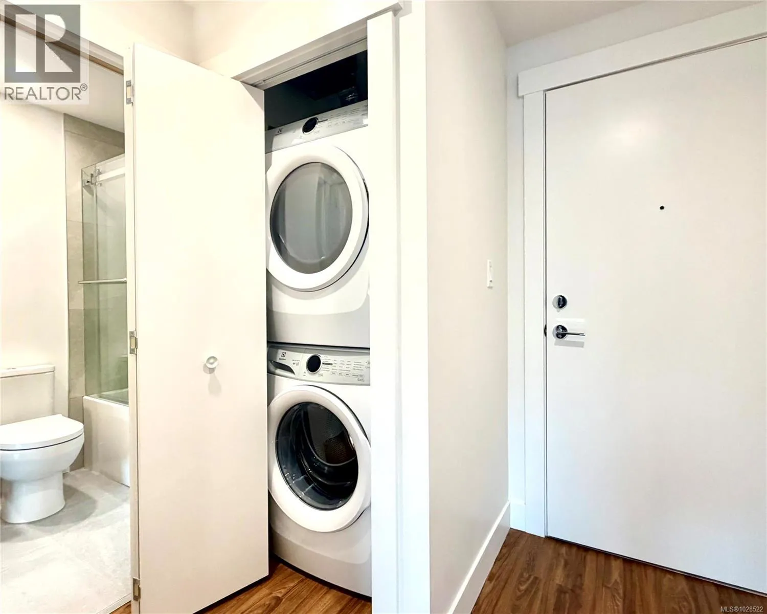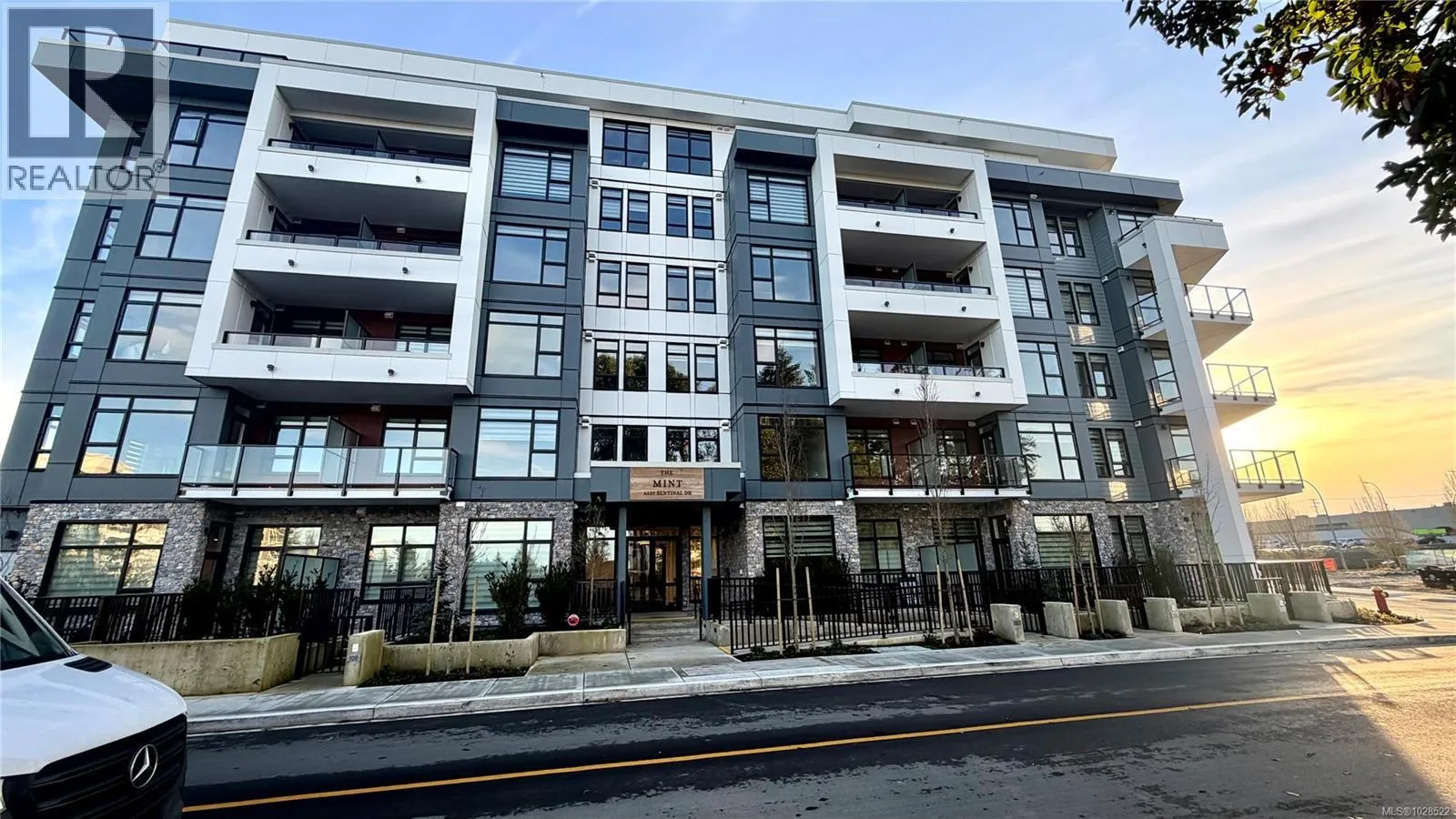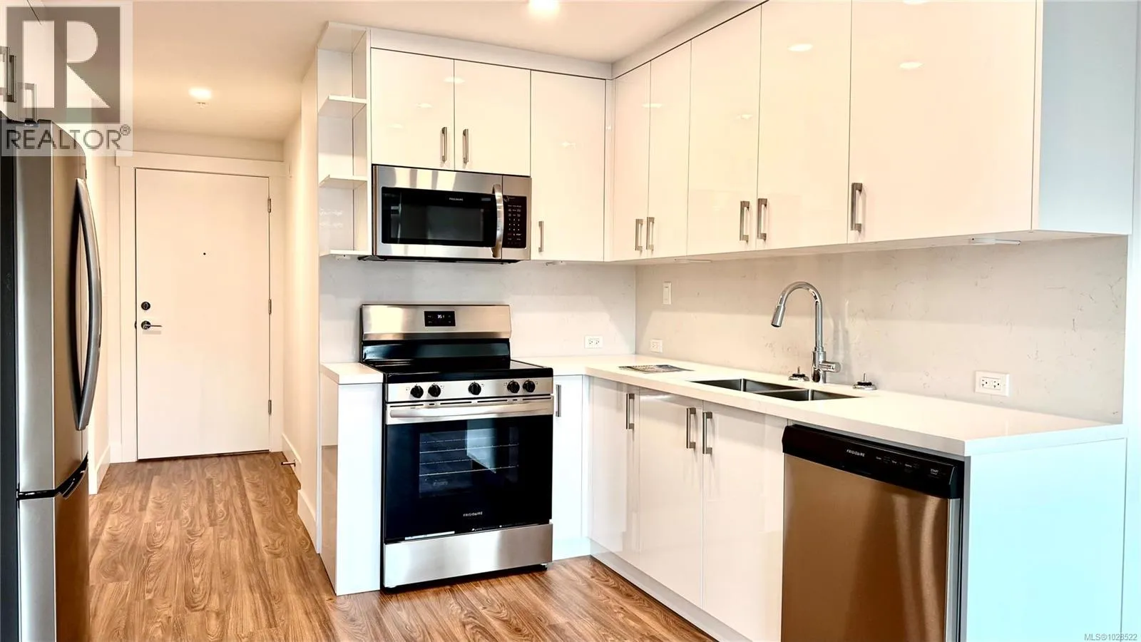 Prestige 1-bdm suite on the 5th floor at The MINTâbrand new North Nanaimo condosâfeaturing a beautiful mountain view and sunny southern exposure. This bright, modern home offers an open-concept kitchen with quartz countertops and an American-made Frigidaire appliance package, plus in-suite Electrolux front-load stacked washer/dryer. Enjoy top-quality laminate flooring throughout, a spacious bdrm with large windows for abundant natural light, and a walk-in closet. The stylish bthrm is a semi-ensuite with multiple entrances, offering added flexibility and convenience, and showcases a full-height tile tub surround and quartz vanity for a clean, upscale finish. Step outside to a generous balconyâperfect for relaxing, entertaining, and enjoying sunny days. Comfort and convenience continue with secure building entry, underground designated parking, and a storage locker. Unbeatable location next to Costco, close to Woodgrove Centre, schools, transit, & everyday amenities. Ideal for first-time buyers, small families, or smart investors. (id:27476)