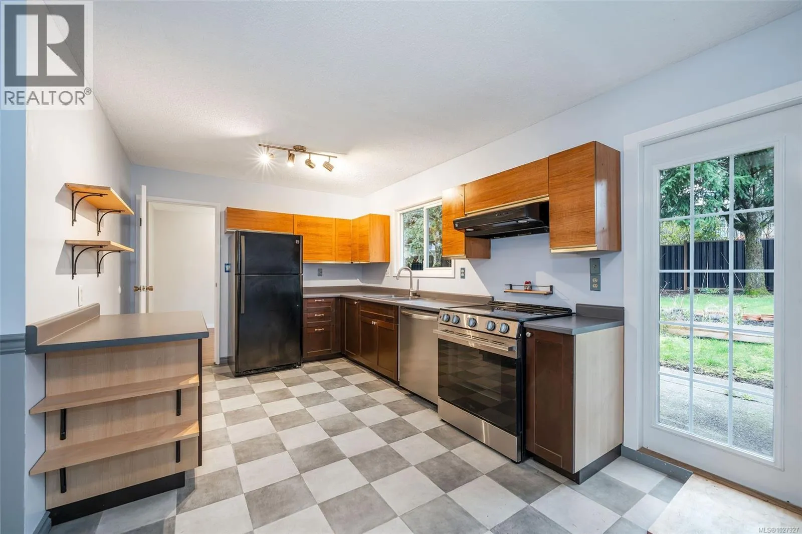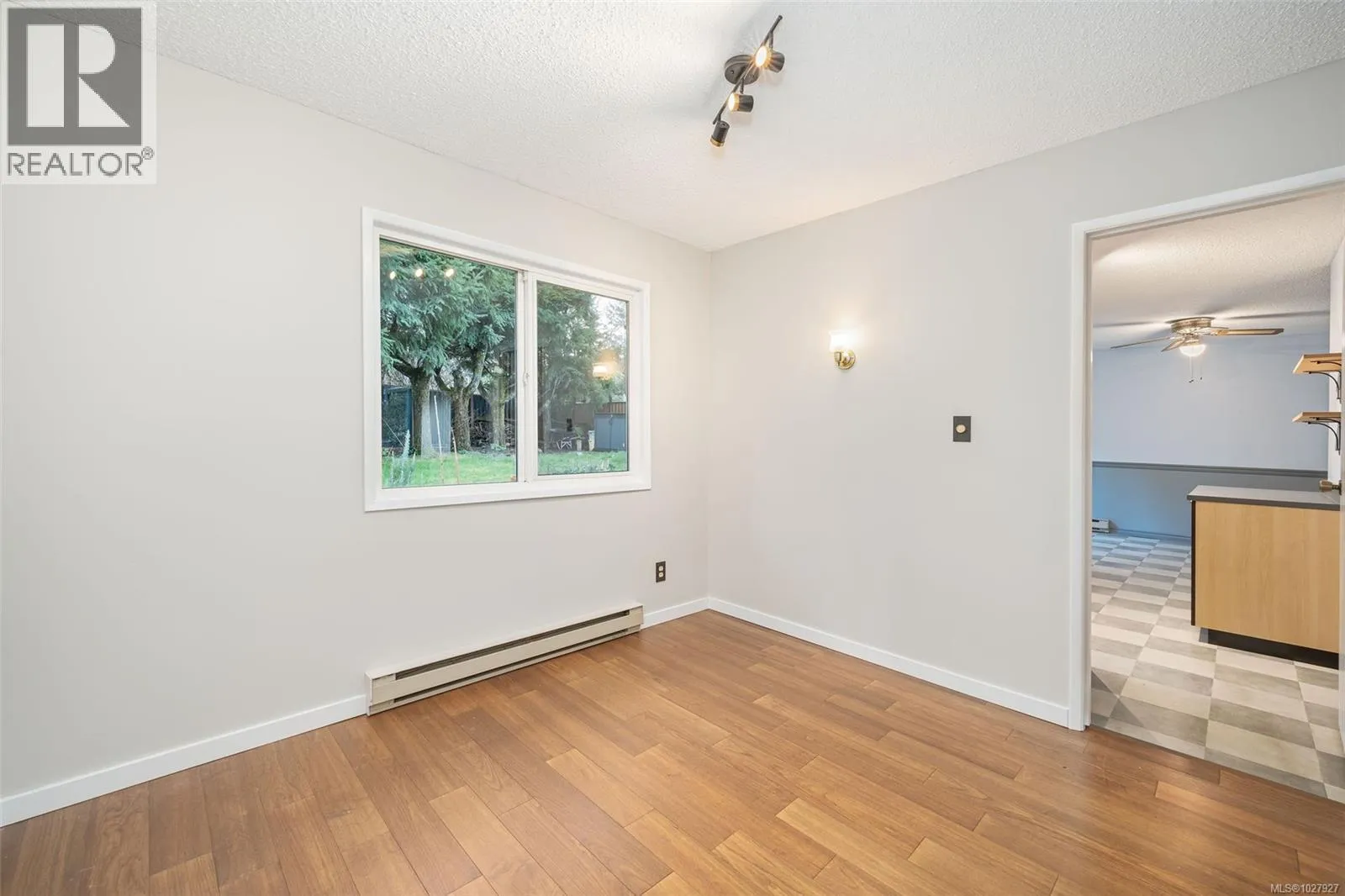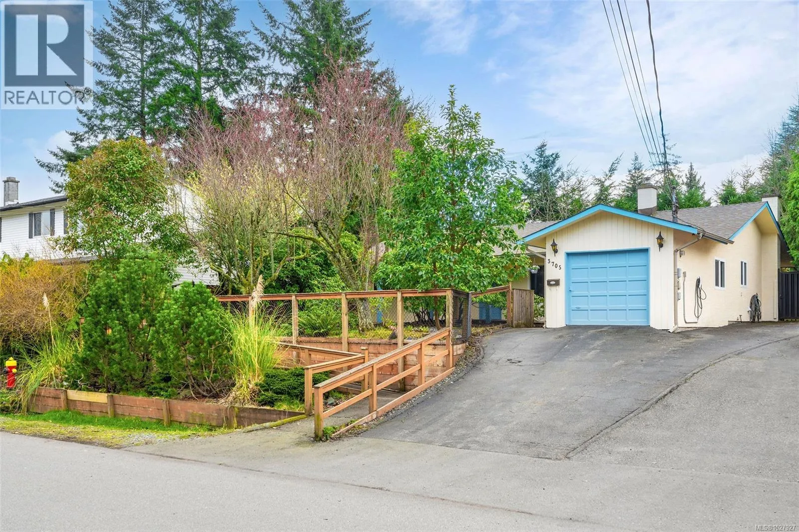 A charming rancher in Nanaimoâs sought-after Uplands neighbourhood offering 3 bedrooms+den,2 baths and comfortable one-level living. Ideally located within walking distance to Uplands Elementary School, this home is perfect for families or downsizers seeking convenience in a friendly community. Freshly painted, the home feels bright and welcoming throughout.The functional layout includes a versatile den, perfect for a home office, hobby room, or extra living space. Beautiful hardwood flooring runs through the main living area, with new flooring in the bedrooms and the cozy wood-burning fireplace adds warmth and charm.French doors open to a private,fully fenced backyard with fruit trees and space for kids,pets,gardening or relaxing outdoors.The heated garage adds year-round versatility.Situated on a 7,547 sq ft lot on a quiet street, the home also offers accessibility features including a ramp and accessible entrance. A great opportunity close to schools, parks, and everyday amenities. (id:27476)