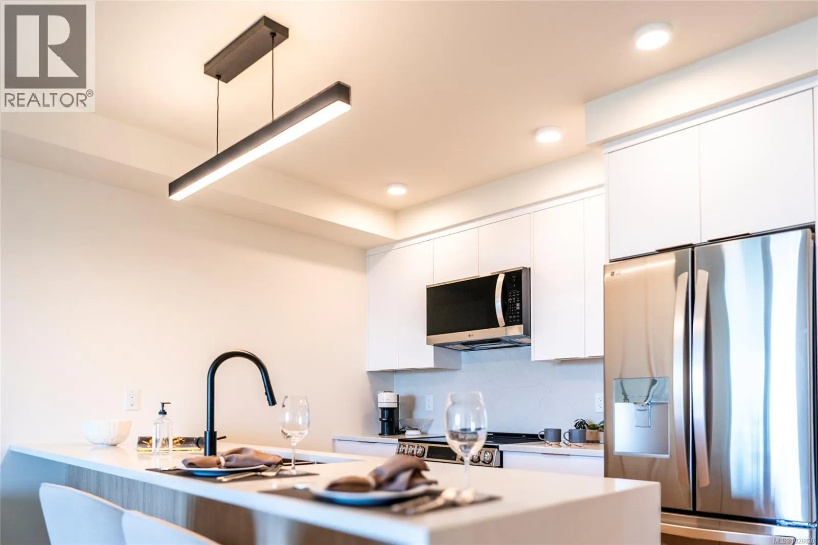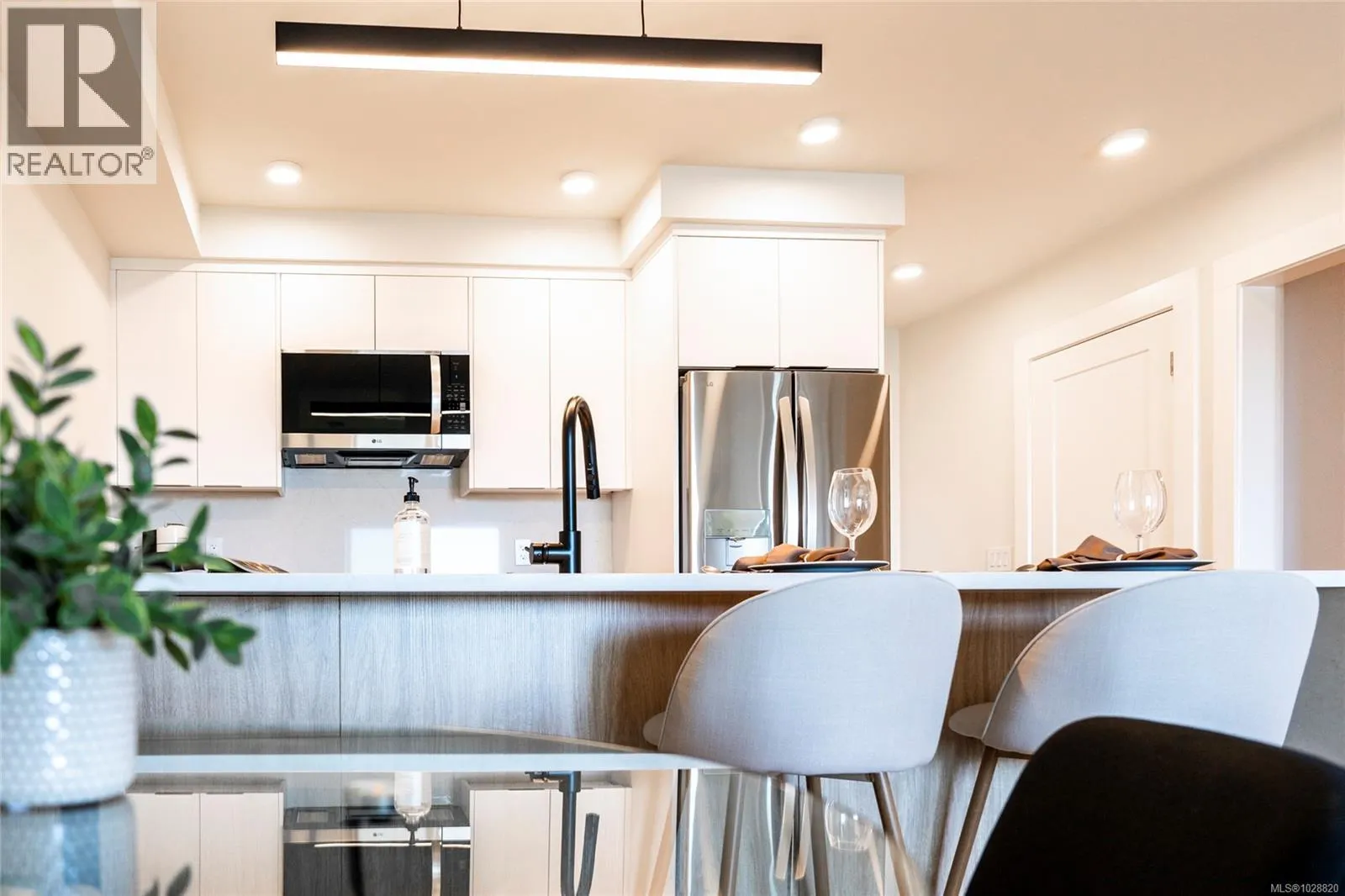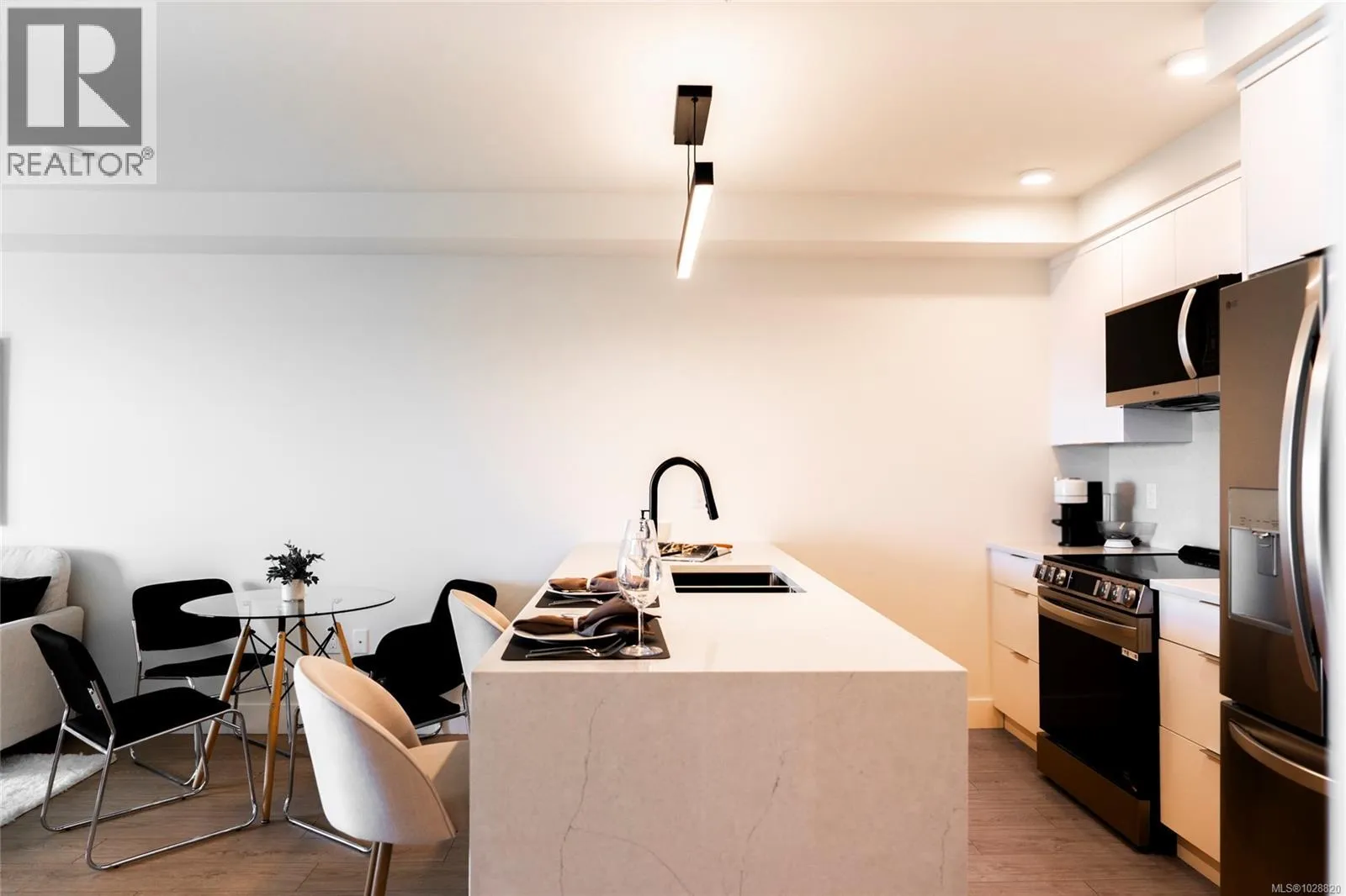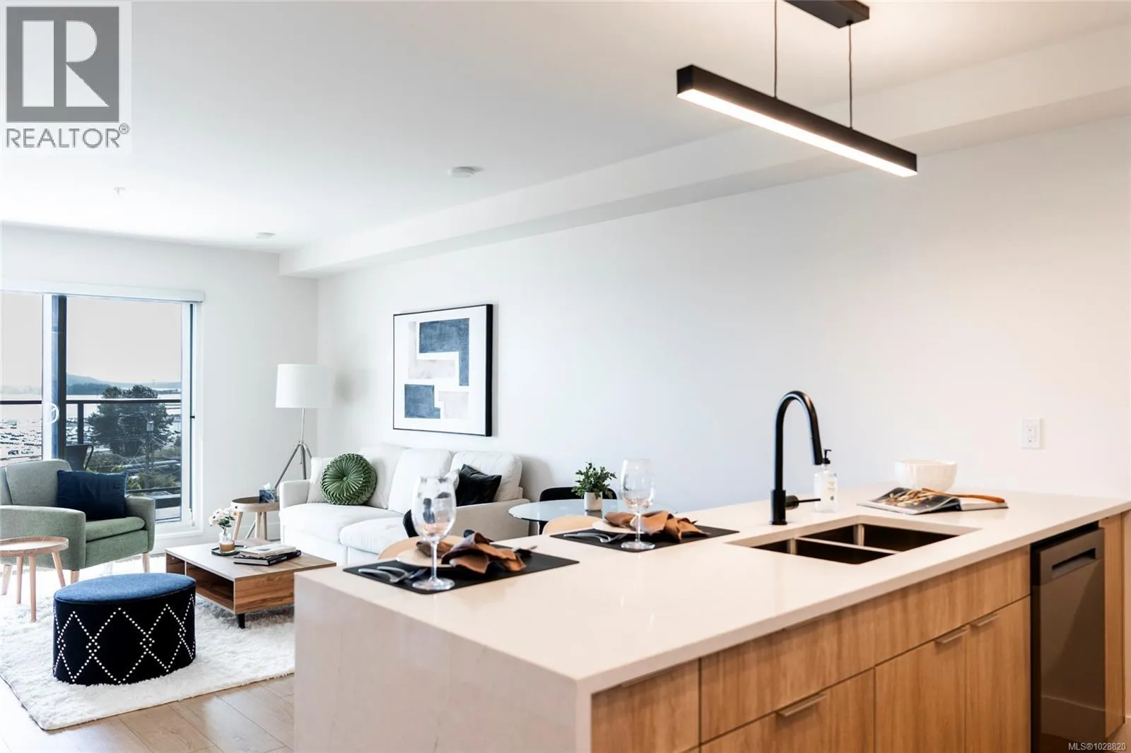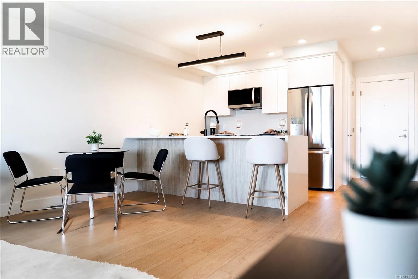 Welcome to Lumina in Harborview District, another principal property community in the heart of downtown Nanaimo, where city living meets coastal charm. Steps from the harbourfront, seawall, cafés, shops, parks, and Hullo Ferries, Lumina places you in the center of a growing, evolving district. Enjoy your mornings on the rooftop patio surrounded by lush greenspace and expansive ocean views. This beautifully designed 2-bedroom, 1-bath home features bright, open living with views of the harbour, city, and mountains â a striking blend of coastal beauty and urban energy. The kitchen stands out with waterfall-edge countertops, sleek cabinetry, and contemporary lighting, all contributing to a clean, modern aesthetic. Whether itâs a stroll along the waterfront, coffee with friends, or a rooftop sunset, this home connects you to the best of downtown â and the exciting future unfolding around it. (id:27476)