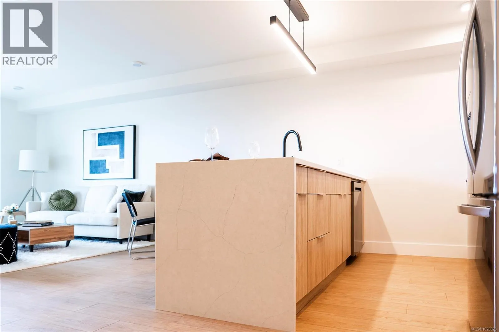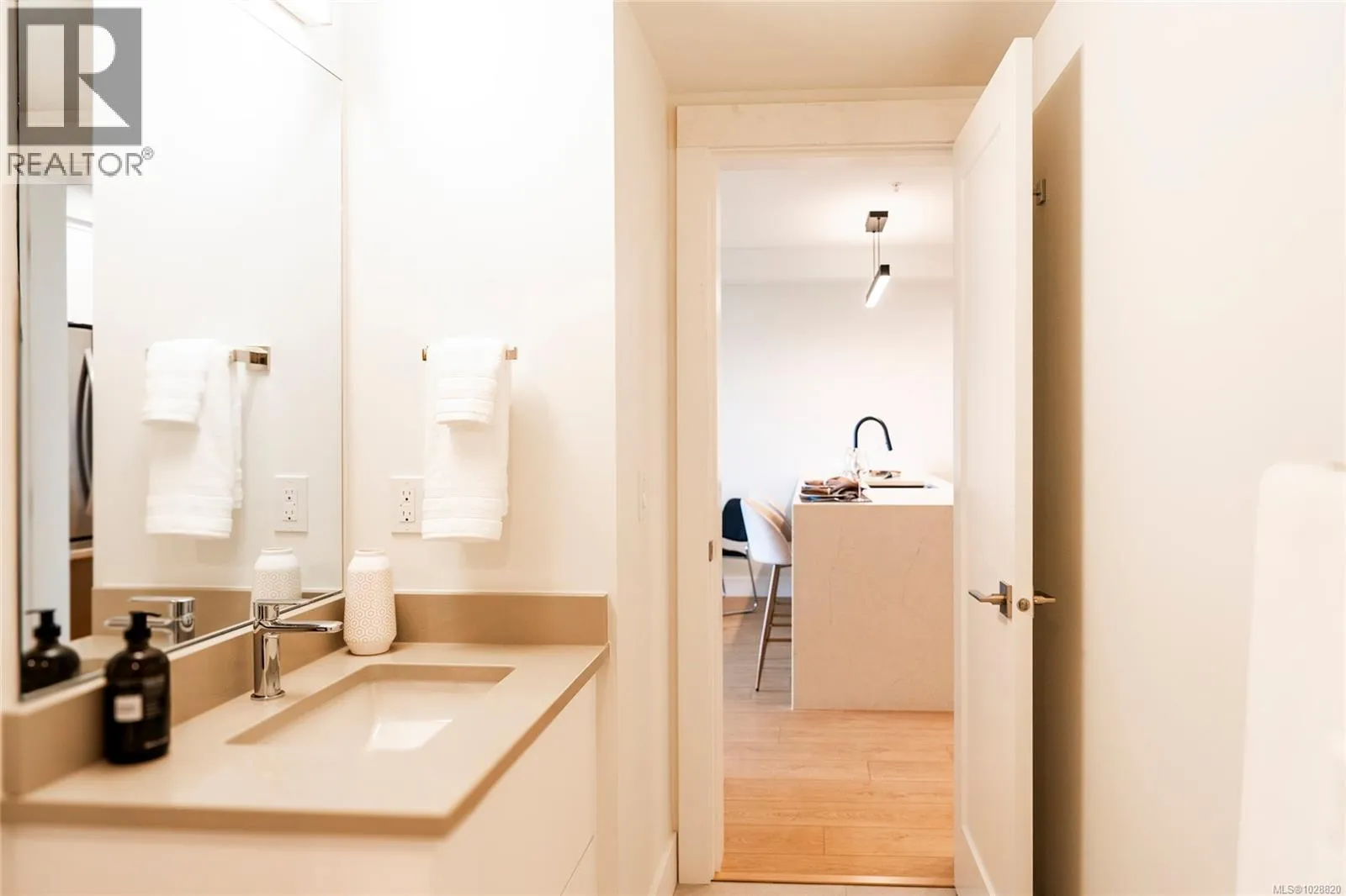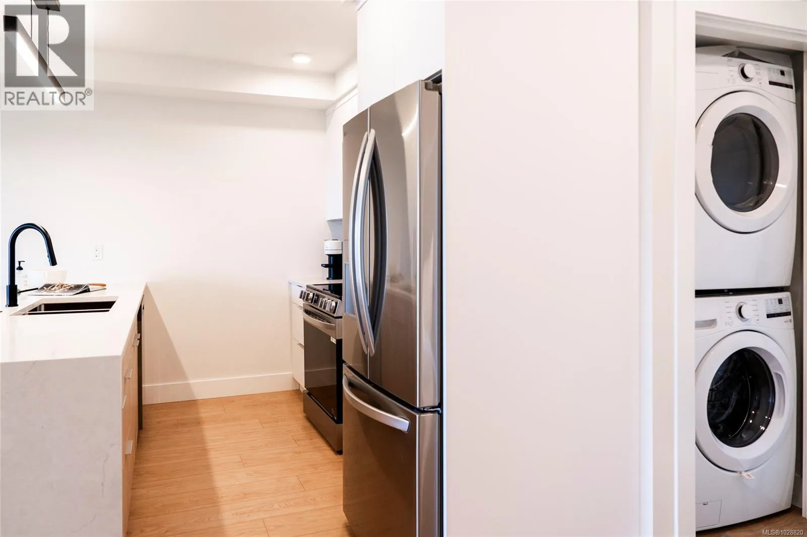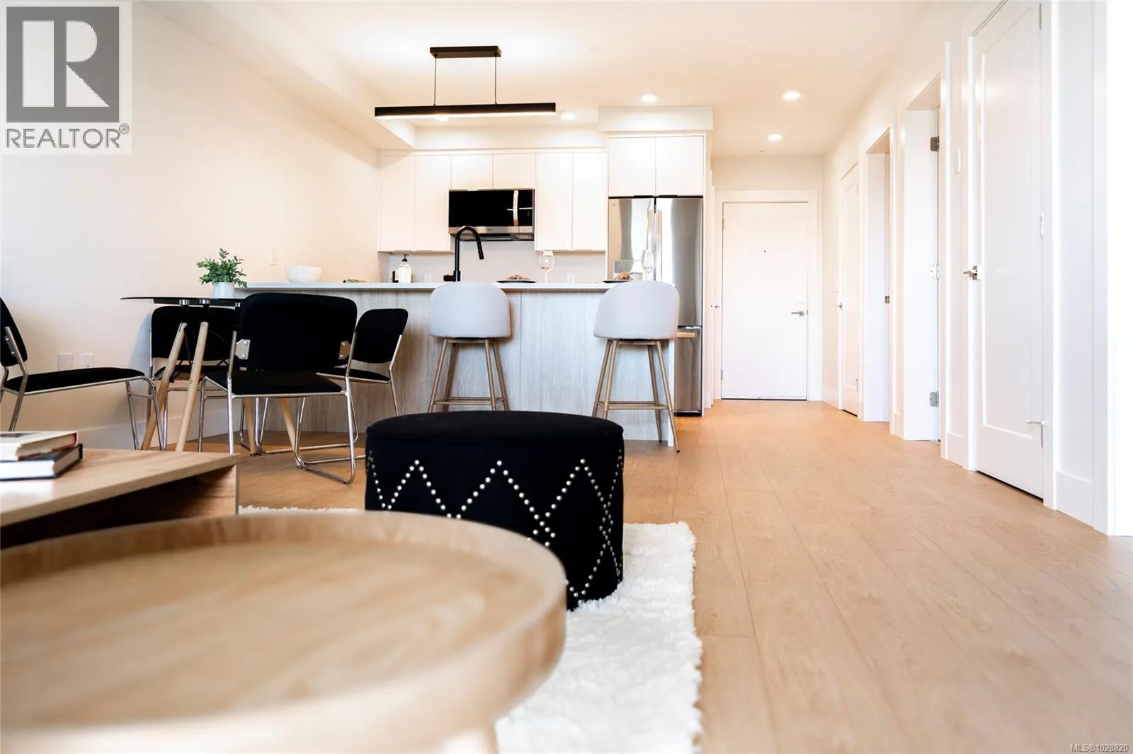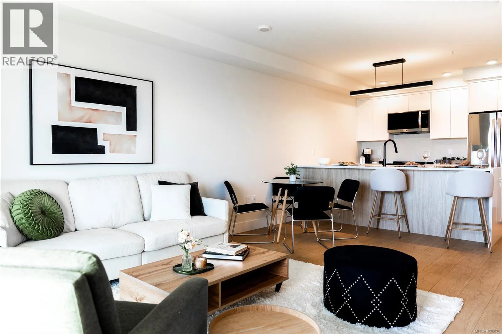 Welcome to Lumina in Harborview District, another principal property community in the heart of downtown Nanaimo, where city living meets coastal charm. Steps from the harbourfront, seawall, cafés, shops, parks, and Hullo Ferries, Lumina places you in the center of a growing, evolving district. Enjoy your mornings on the rooftop patio surrounded by lush greenspace and expansive ocean views. This beautifully designed 2-bedroom, 1-bath home features bright, open living with views of the harbour, city, and mountains â a striking blend of coastal beauty and urban energy. The kitchen stands out with waterfall-edge countertops, sleek cabinetry, and contemporary lighting, all contributing to a clean, modern aesthetic. Whether itâs a stroll along the waterfront, coffee with friends, or a rooftop sunset, this home connects you to the best of downtown â and the exciting future unfolding around it. (id:27476)