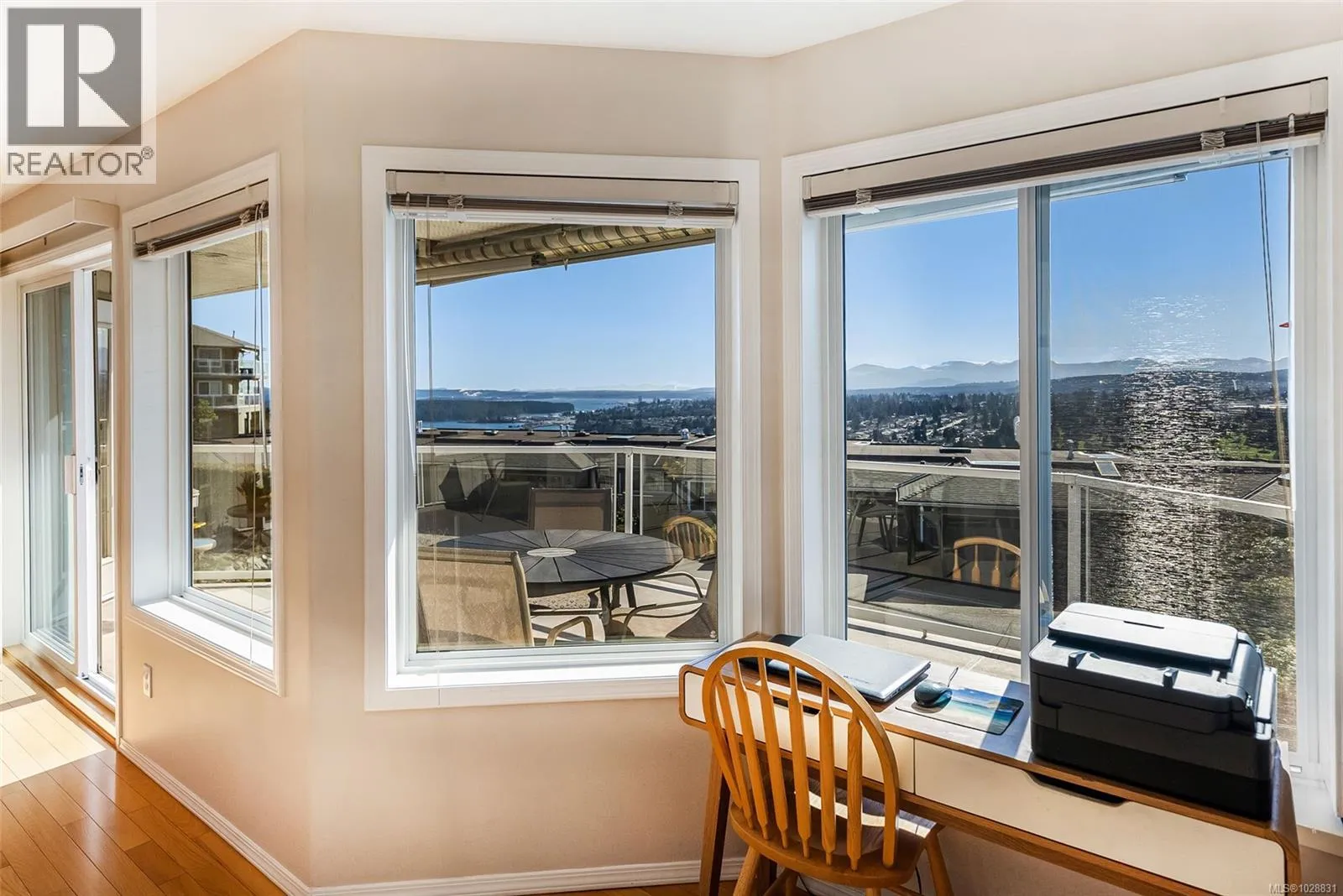 The ultimate ocean & mountain views! Wake to sun drenched morning sunrises & end the day with a dreamscape sunset. The 180 degree vistas are intoxicating. Beautifully maintained 3 bedroom townhome with full ensuite, kitchen with big windows to the views, lots of white cabinets, including pantry, ceramic flat top range & hardwood floors. Livingroom and dining combo allows for many options for furniture placement & full enjoyment of the natural gas fireplace, Master bedroom has full ensuite with jetted tub & separate shower & Large walk in closet. Private door to sundeck. Lower level has 2 spacious bedrooms, full bath, & a family room with access to another ocean view sundeck. Large storage room plus Extra 3rd level storage. Manicured low maintenance yard. Located in the heart of Departure Bay close to the beach, ferries, golf course & shopping Other features - new hot water tank May 2023, Phantom screens, quality designer window blinds, large double garage. 55+ strata, pets allowed. (id:27476)