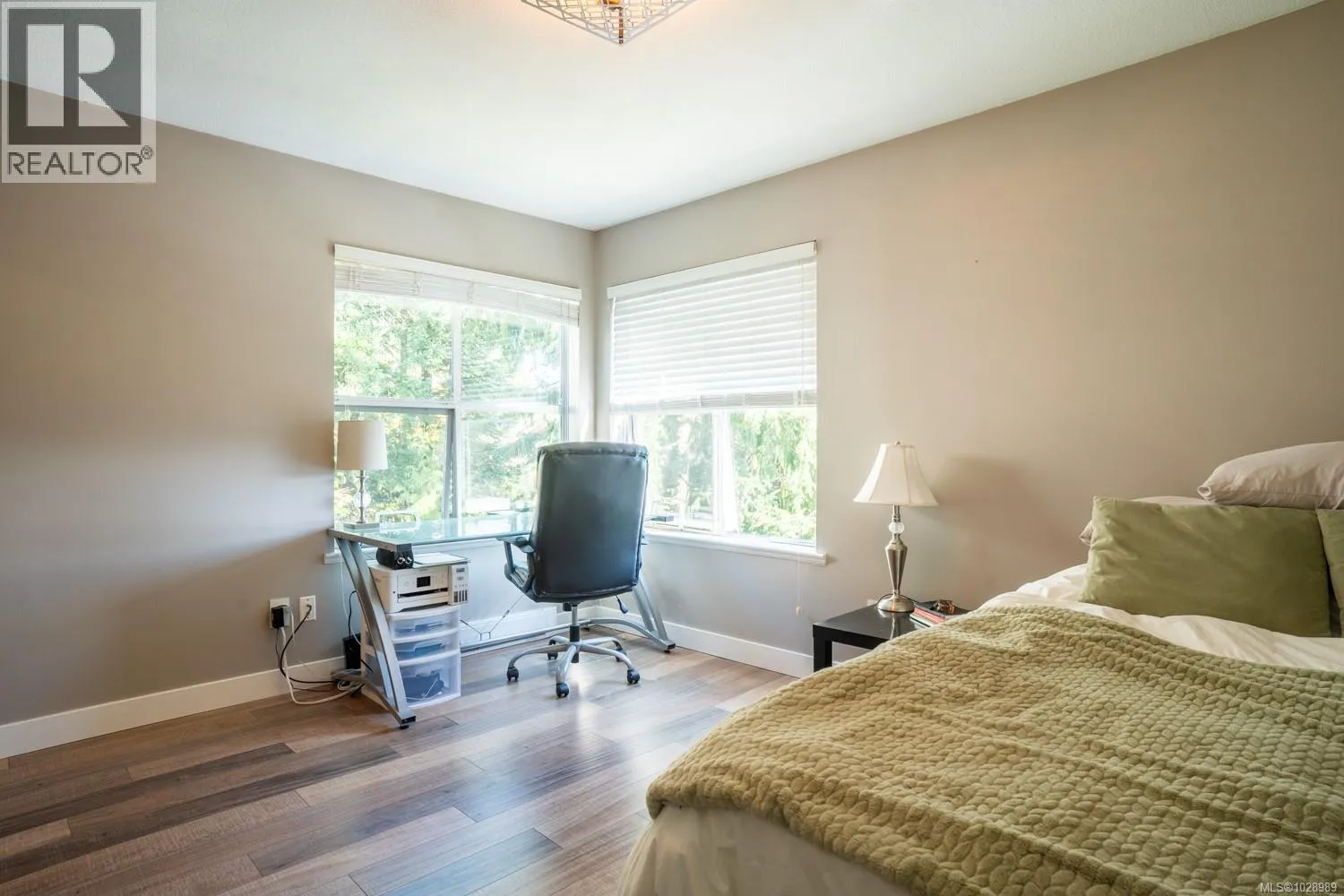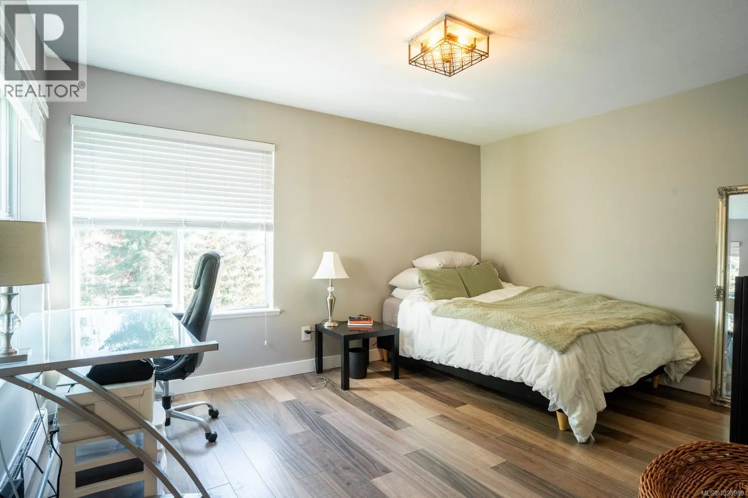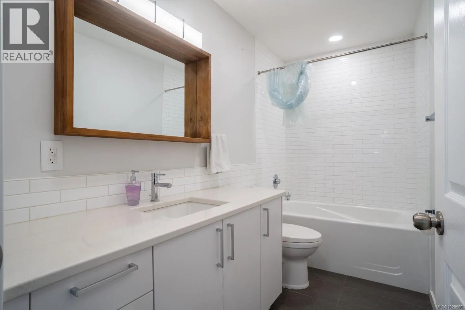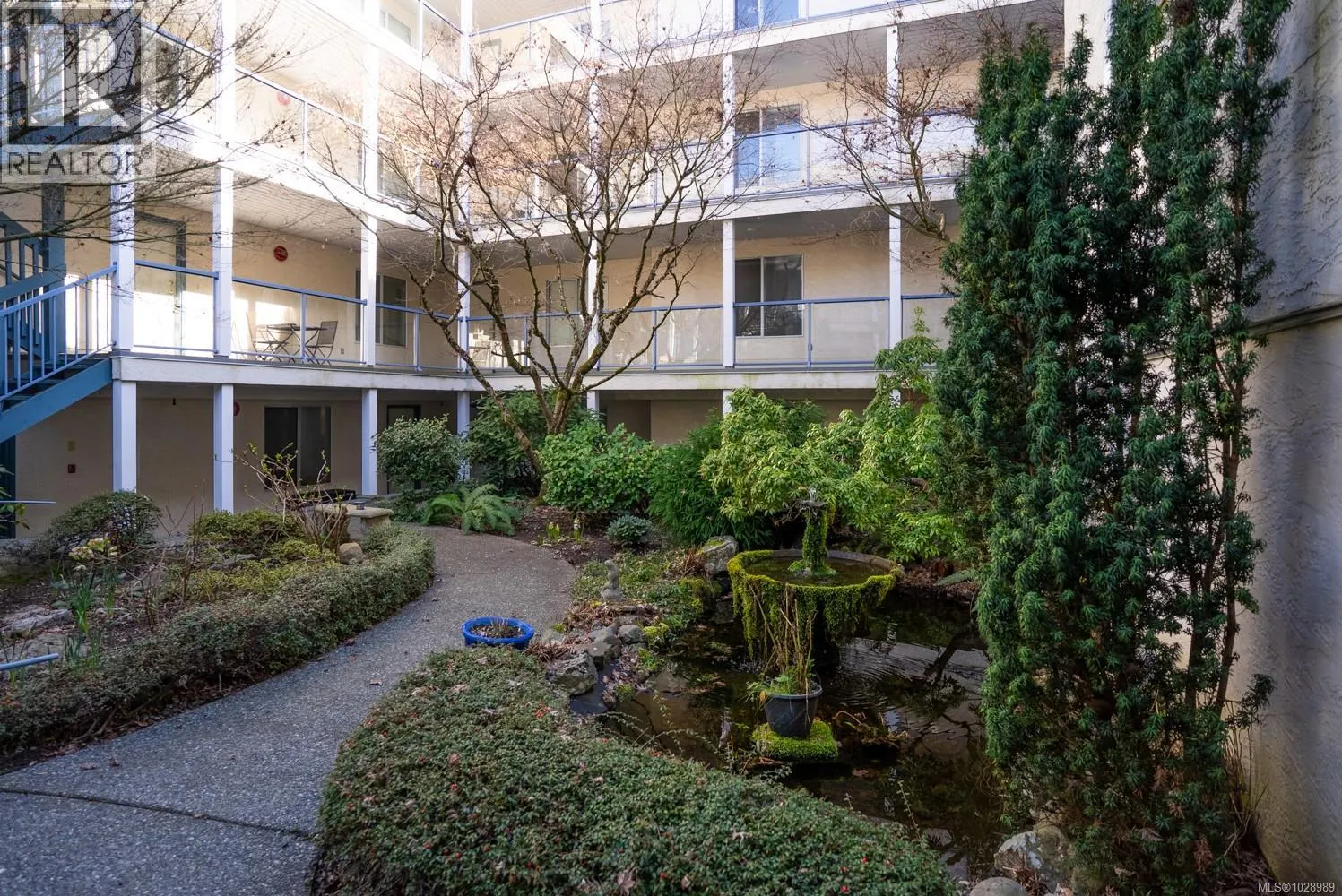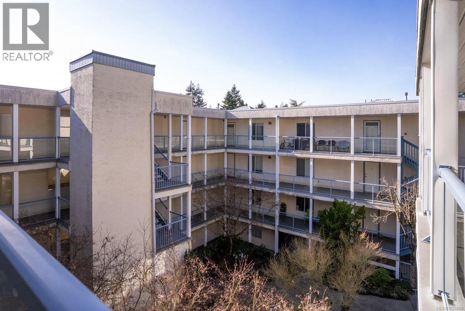 Stylish and sophisticated 2 bed, 2 bath condo in desirable North Nanaimo. This well-appointed 964 sq ft home is ideally located close to restaurants, shopping, schools, parks, and scenic nature trails. The open-concept layout connects the kitchen, dining, and living areas, creating a comfortable space for everyday living and entertaining. The beautifully renovated kitchen features custom cabinetry and modern finishes. The bright living room offers peaceful forest views and is anchored by a cozy natural gas fireplace with a marble mantle. Updated flooring and unique light fixtures add a modern touch throughout. The main 4-piece bathroom includes quartz countertops, a custom vanity, and updated tile work. The spacious primary bedroom features a walk-in closet and a private 3-piece ensuite. Enjoy the private balcony overlooking the trees, perfect for relaxing outdoors. In-unit laundry, a dedicated parking stall, and visitor parking are included. This pet-friendly building allows rentals and has no age restrictions, making it a great opportunity for homeowners or investors alike. Data and measurements are approximate and should be verified if important. (id:27476)
