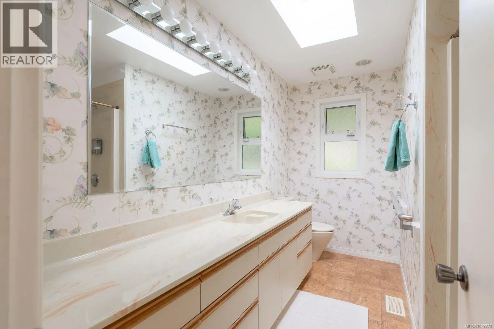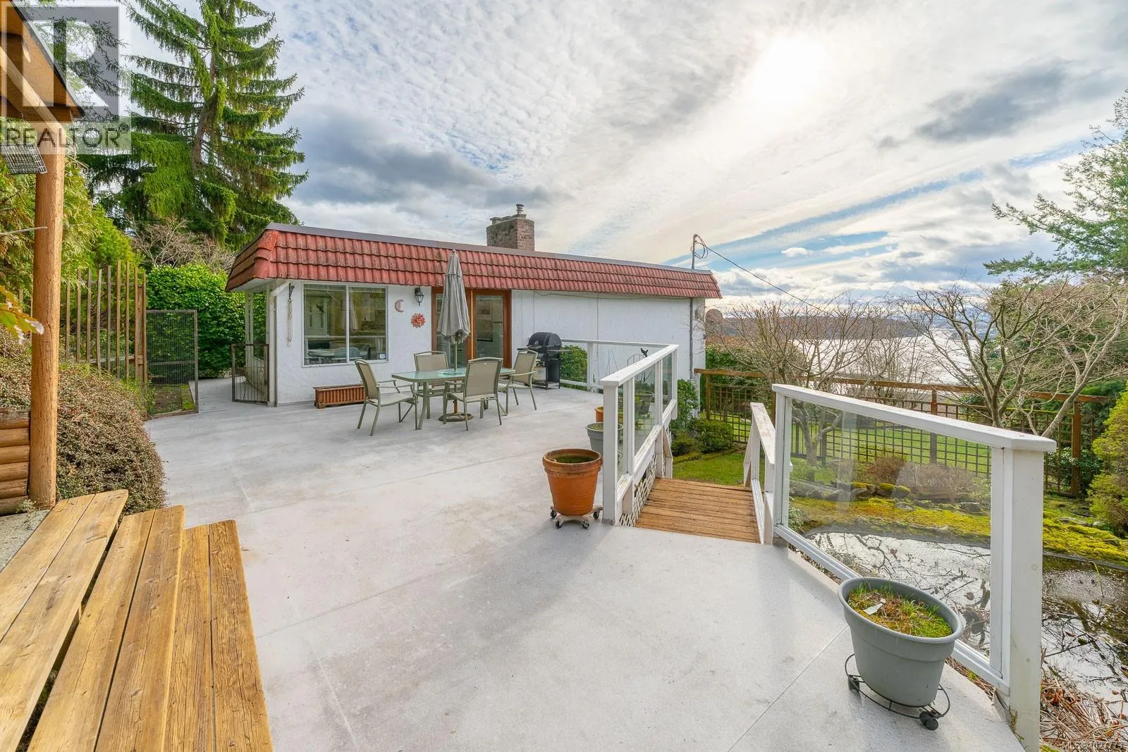 First time on the market in over 40 years; this Southern exposure Departure Bay view home has so much to offer! Sitting on over 1/4 acre and spread across 2 levels, this home has 3 bedrooms including a massive primary with incredible ocean and city views. Built in a Spanish style and offering 2300 square feet of living space + a double garage and workshop, this property is ready for it's next owners and some fresh ideas. Through the large entry and up the stairs, you'll be greeted by the naturally bright living and dining area with a walkout to the front deck offering some of the best views Departure Bay has to offer. The kitchen is full of potential and features a large skylight, sit up countertop and a breakfast nook- oh, it also walks out to the oversized patio area, guarded by greenery and overlooking the pond. Back inside and downstairs there is another full bathroom, the 3rd bedroom and another family room - perfect for those noisy family movie nights. All msmts are approx and should be verified. (id:27476)