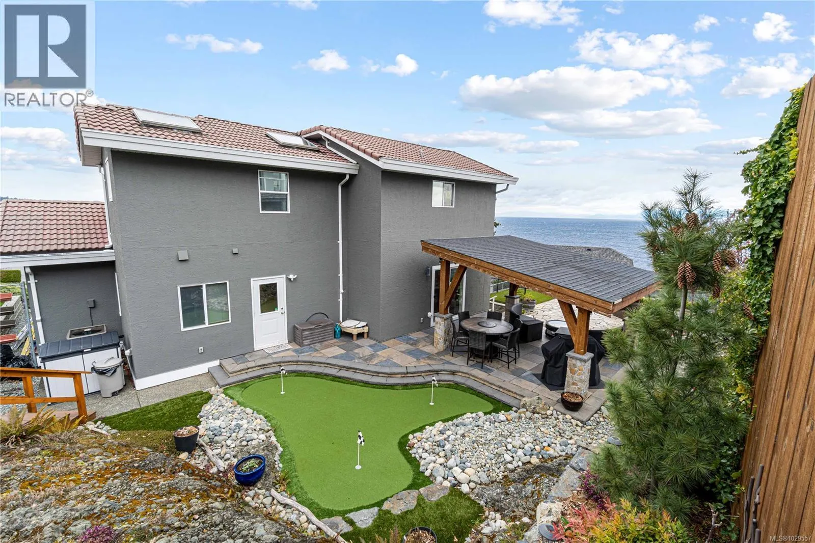 3500 sqft, 4 Bed, 4 Bath Executive Custom Home with absolutely jaw dropping ocean views that must be seen to believe. Perched atop a quiet cul-de-sac, this unique property is sure to impress. From the moment you step into the front door you're greeted by a huge glass etching that is sure to set the tone for things to come. To the right is a large Living Room with massive vaulted ceilings and to the left is the Family Room with a gas fireplace to keep you toasty warm. The kitchen has a massive island and lots of storage and an impressive walk-in pantry with a 2nd full sized fridge. Upstairs is where you'll find a primary bedroom that has arguably the most impressive ocean views that Nanaimo has to offer. Upstairs also has 2 more bedrooms each with their own walk-in closets. The Basement has a very large Rec Room that leads to a big Bedroom that could easily be used as a theatre room. As if all that isn't enough, there'smore! The backyard was completely redone with entertaining in mind. Chill out under your impressive gazebo, putt away on your very own golf green or head up to the garden boxes and fruit trees. Then finish the day with your favorite drink next to your gas firepit overlooking the Straight of Georgia. Get that vacation feeling without having to leave home. Must be viewed to really appreciate the specialness of this one-of-a-kind property. Measurements are approximate and should be verified if important (id:27476)