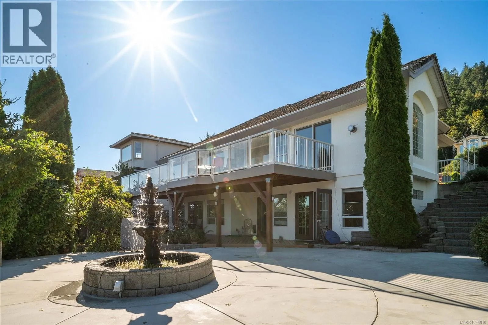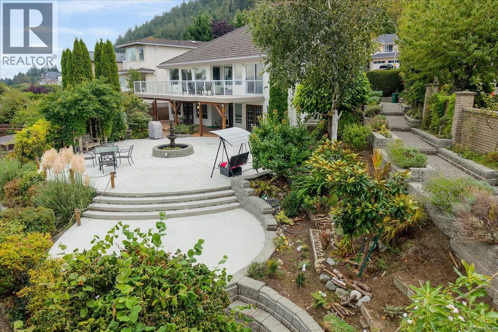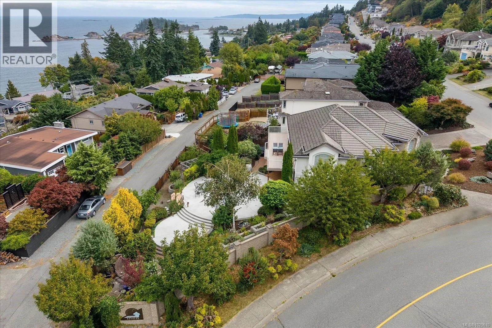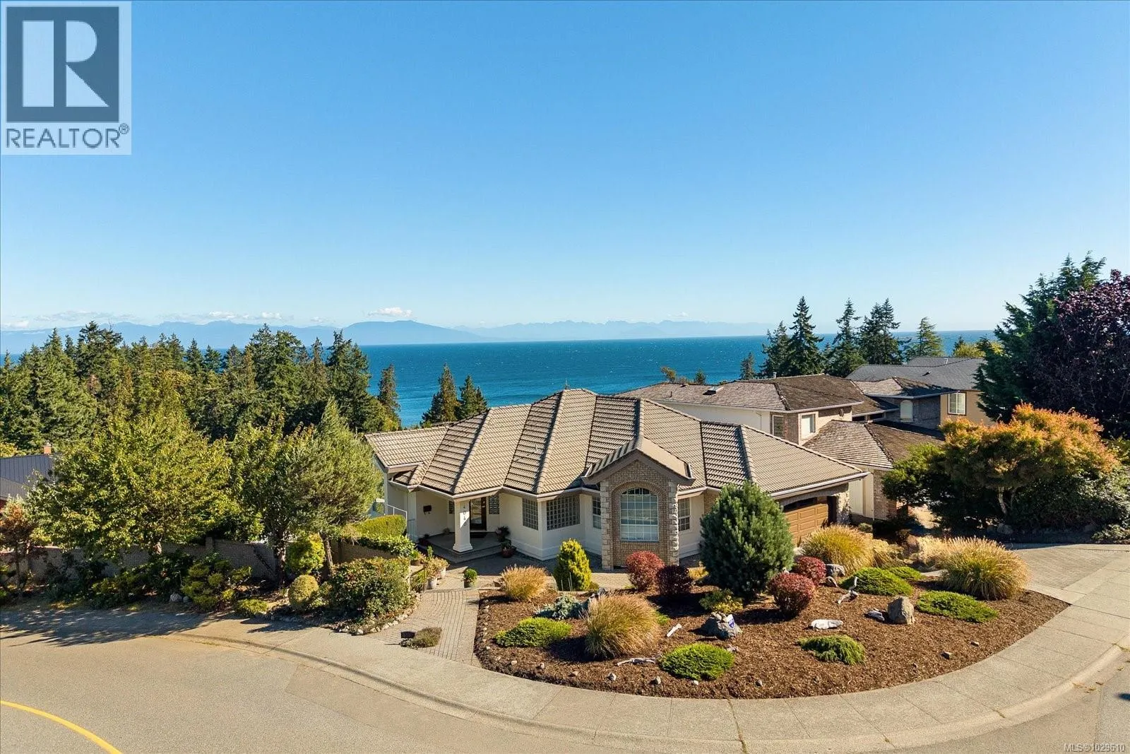 Georgie Award for housing design winner, Morningside Estateâs show home with many updates is now available. This level-entry Gulf view drive located, executive residence on 0.25acres corner lot with magnificent views of Pipers Lagoon, Shack Island & Coast Mountains with R5 zoning. It offers 4 bedrooms/5 full bathrooms with three ensuite bathrooms, master suite with vaulted ceilings, one media room, one office/gaming room with attached bathroom, with a versatile layout ideal for families & combines modern convenience. Recent upgrades include an updated kitchen with new stainless appliances, smart lighting, new exterior paint, new lower floor paint with a kitchen giving suite potential, garden concrete updates. The house has 8 zone intelligent app-controlled irrigation system for a low-maintenance yard and excellent landscaping with mature fruit trees on one side and ornamental garden on the other with fountain and a lily pond. The yard is fully fenced and landscaped. Sliding glass doors open to an ocean-view big deck, while a large patio provides additional outdoor living space. Enjoy easy indoor-outdoor flow & amazing views in this thoughtfully designed home that blends comfort, style, functionality in one of the areaâs most desirable neighbourhoods. Verify any msmts deemed imp. (id:27476)