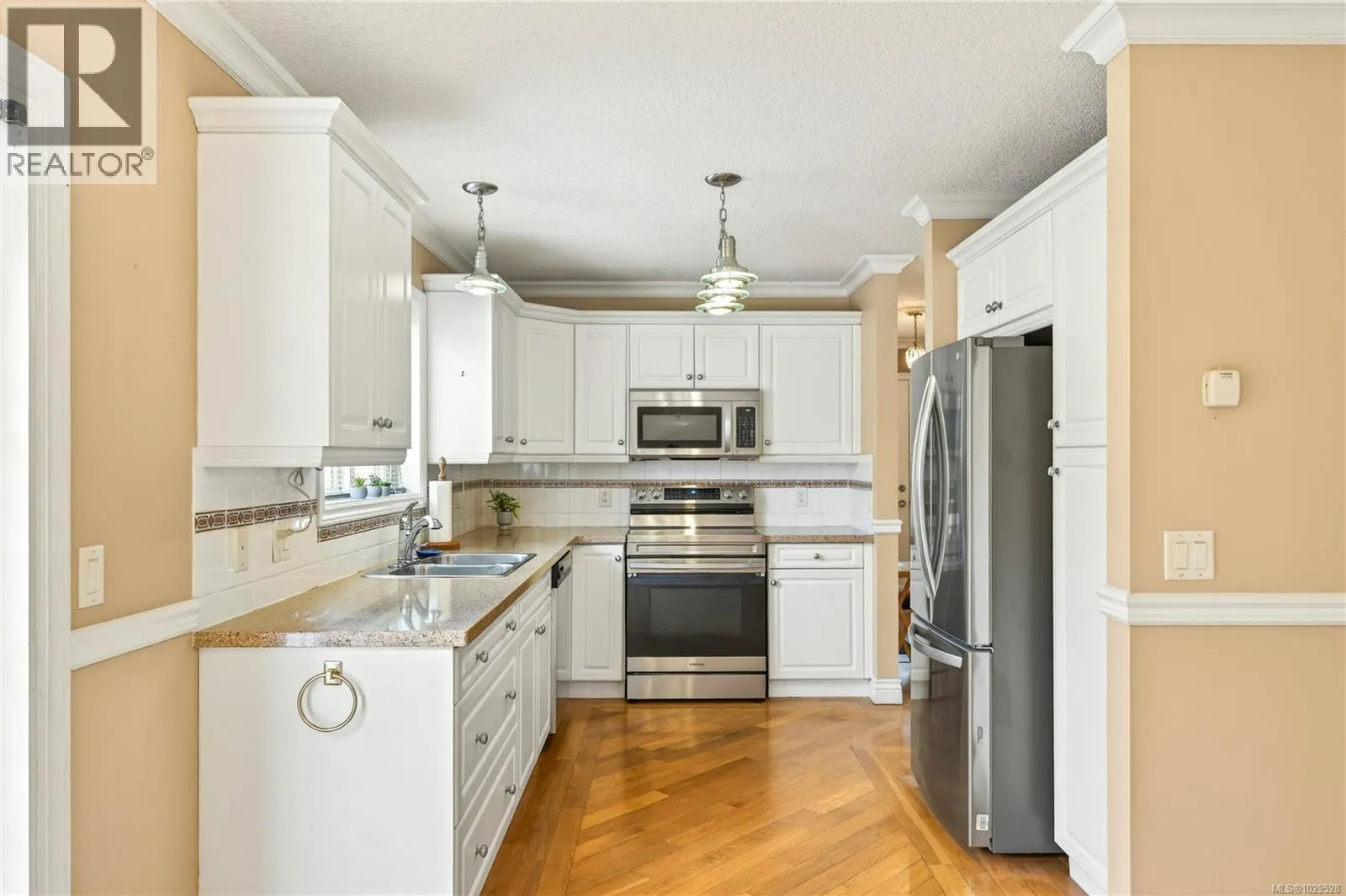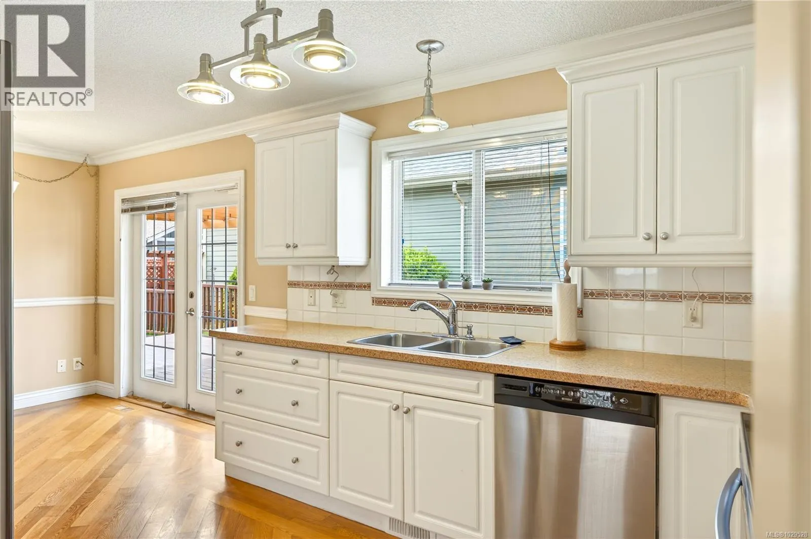 Finding a home thatâs both genuinely quiet and incredibly convenient isn't always easy, but this rancher in Deerwood Estates hits that balance perfectly. Tucked away in a premier 55+ pet-friendly community, youâre just mins from Costco & Woodgrove while feeling worlds away. This ~1200 sq ft single-level gem is turn-key with high-end finishes throughout. Youâll love the stunning hardwood floors, updated kitchen w/ stone counters & SS appliances and the warmth of a natural gas fireplace. The primary suite offers a walk-in closet & bright ensuite. Outside, enjoy low-maint landscaping, Mt Benson views & 2 storage sheds. A unique highlight: the extended garage features a built-in workshop area for hobbies or extra storage. With durable Hardie Plank siding and a built-in vacuum, this home is designed for effortless living. Experience a lifestyle where the pace slows down without sacrificing convenience. (id:27476)