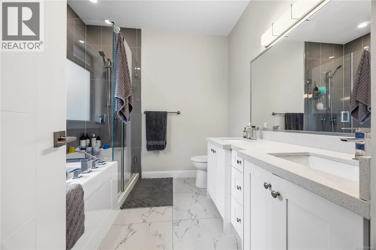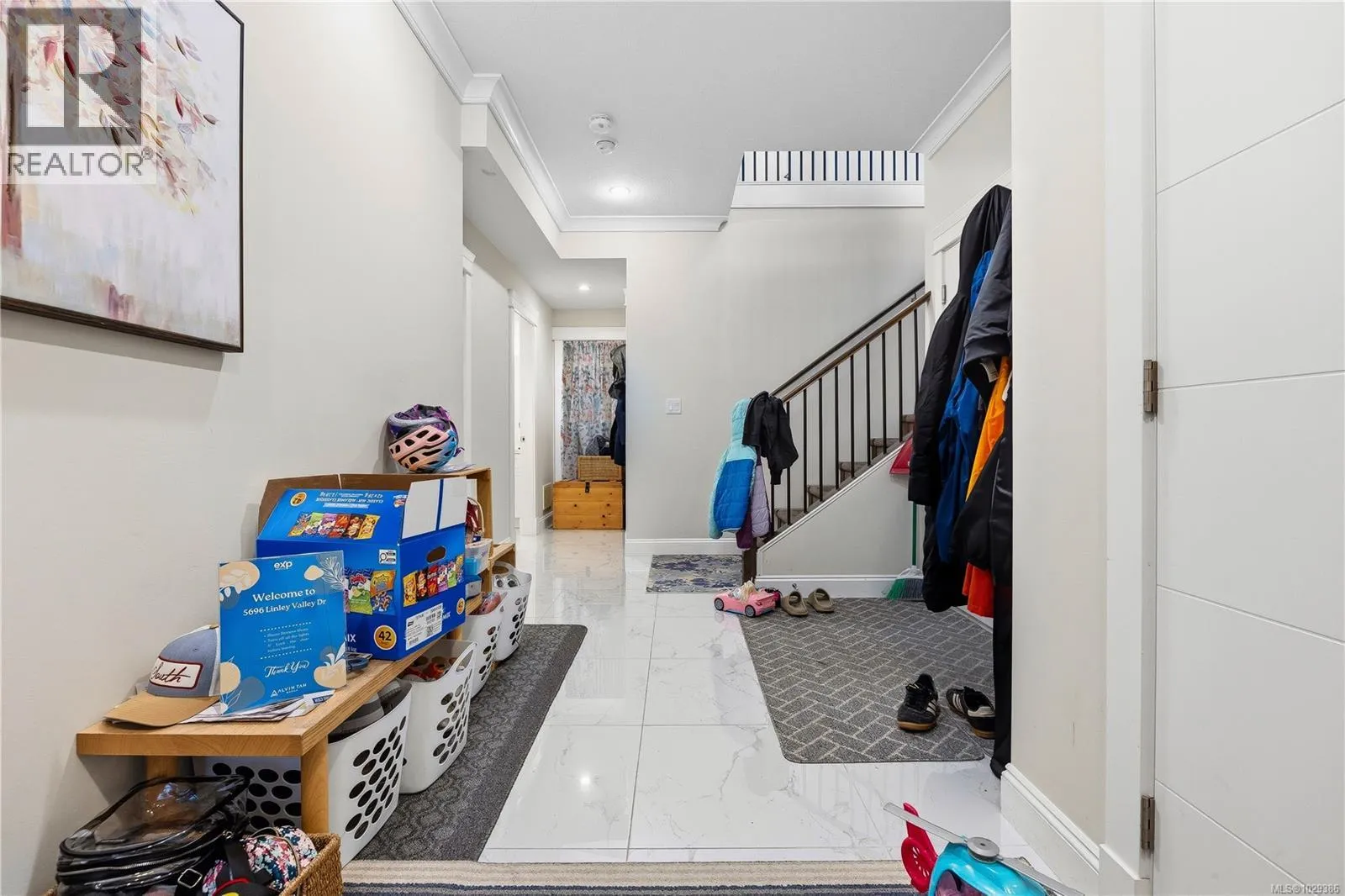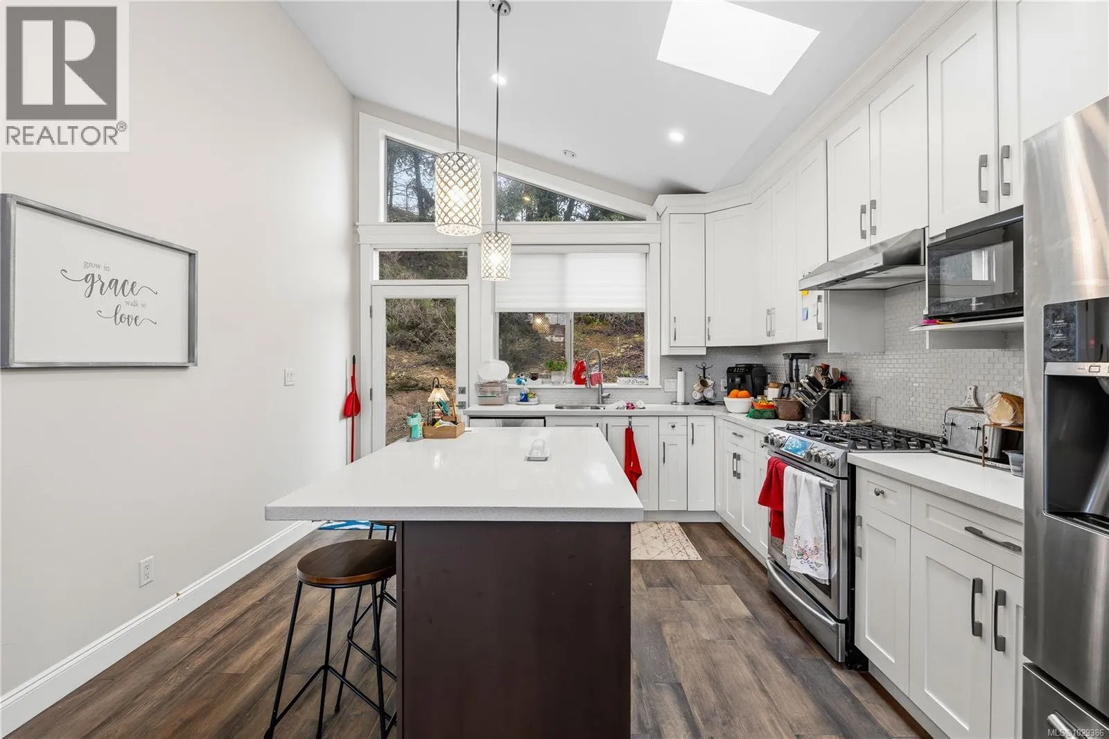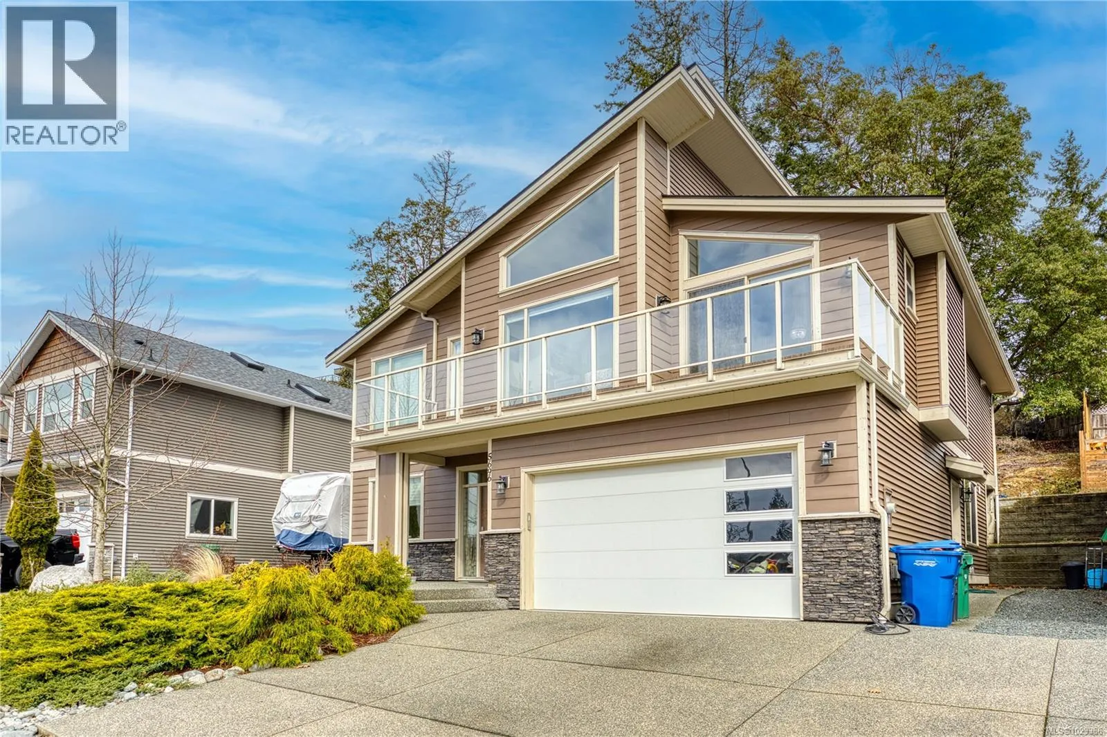Welcome to 5696 Linley Valley, a beautifully designed 6-bedroom home offering the perfect blend of family function, modern finish, and flexible living in one of North Nanaimoâs most desirable neighbourhoods. The main home features a bright open-concept layout with vaulted ceilings, large windows, skylights, engineered flooring, quartz countertops, white cabinetry to the ceiling, pantry storage, and a spacious kitchen, dining, and living area centred around a cozy gas fireplace. The dining space easily accommodates larger gatherings, while the sunny south-facing balcony creates the perfect place to enjoy Mount Benson views. The thoughtful layout includes a bedroom and full bathroom on the entry level, ideal for guests, a home office, or family members wanting fewer stairs. Upstairs, the primary bedroom enjoys mountain views, balcony access, dual walk-in closets, and a spacious ensuite with double sinks, tile shower, and soaker tub. Two additional bedrooms and another full bathroom complete the main living area. Adding exceptional versatility is the separate 2-bedroom suite with its own entrance, laundry, kitchen, living area, and lockable separation door from the main home. Whether used for extended family, guest space, or mortgage support, it offers valuable flexibility for todayâs buyers. A double garage, exposed aggregate driveway, private backyard, and proximity to trails, parks, schools, and North Nanaimo shopping complete the package. A smart move for buyers seeking lifestyle, space, and long-term value. (id:27476)