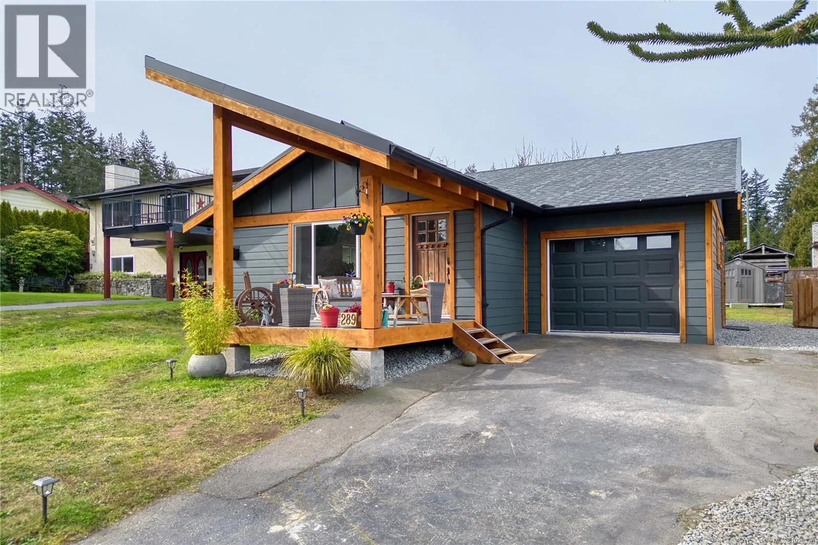 Welcome to 289 Kathryn Placeâwhere comfort, craftsmanship, and setting come together in perfect harmony. Tucked away on a quiet no-through road in the highly sought-after South Jingle Pot area, this beautifully reimagined rancher offers over 1,200 sq ft of refined living with 3 bedrooms and 2 bathrooms, surrounded by peaceful natural beauty, and North Shore mountain views from the back yard by your cherry tree. This home is a must-see. From the moment you arrive, the grand front porch invites you to slow down and take it all in. The homeâs stunning curb appeal is matched by extensive exterior upgrades, including new Hardie plank siding, gutters, soffits, and trimâblending timeless design with modern durability. Every detail has been thoughtfully considered. A new heat pump system and ductwork, a hot water tank, an upgraded 200-amp electrical panel, and added soffit lighting and exterior plugs enhance both comfort and functionality. There are too many updates to listâthis home must be experienced to be fully appreciated. The beautifully updated garage offers a new concrete floor, all-new drywall & paint, new windows, and a well-designed storage space, perfect for both practical living and lifestyle needs. Ideally located just minutes from schools, shopping, downtown Nanaimo, and endless recreation, this home offers a rare opportunity to enjoy elevated living in a truly special setting. (id:27476)