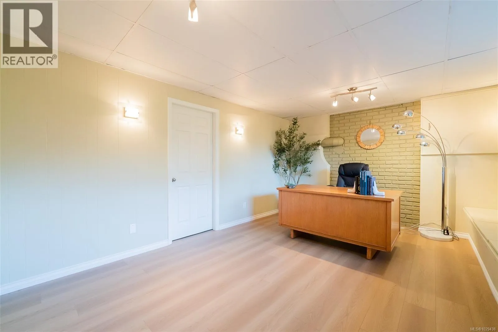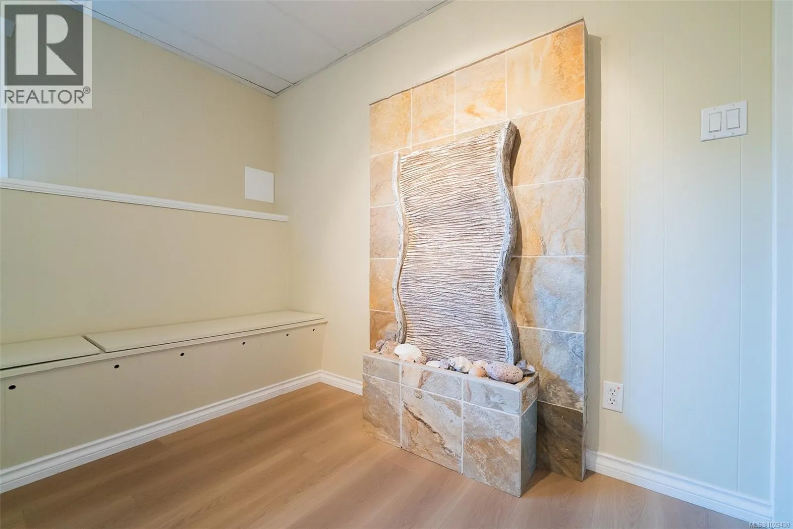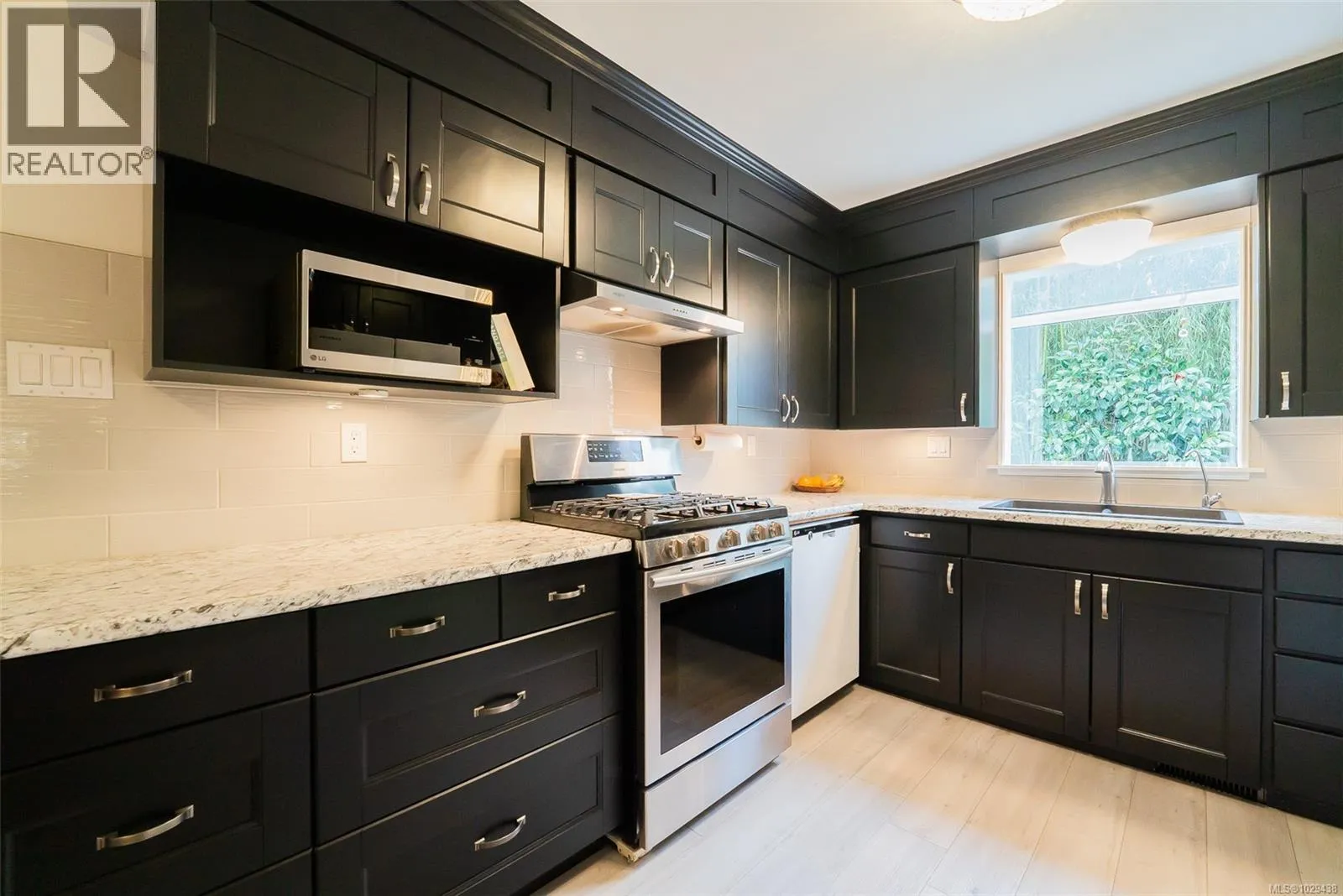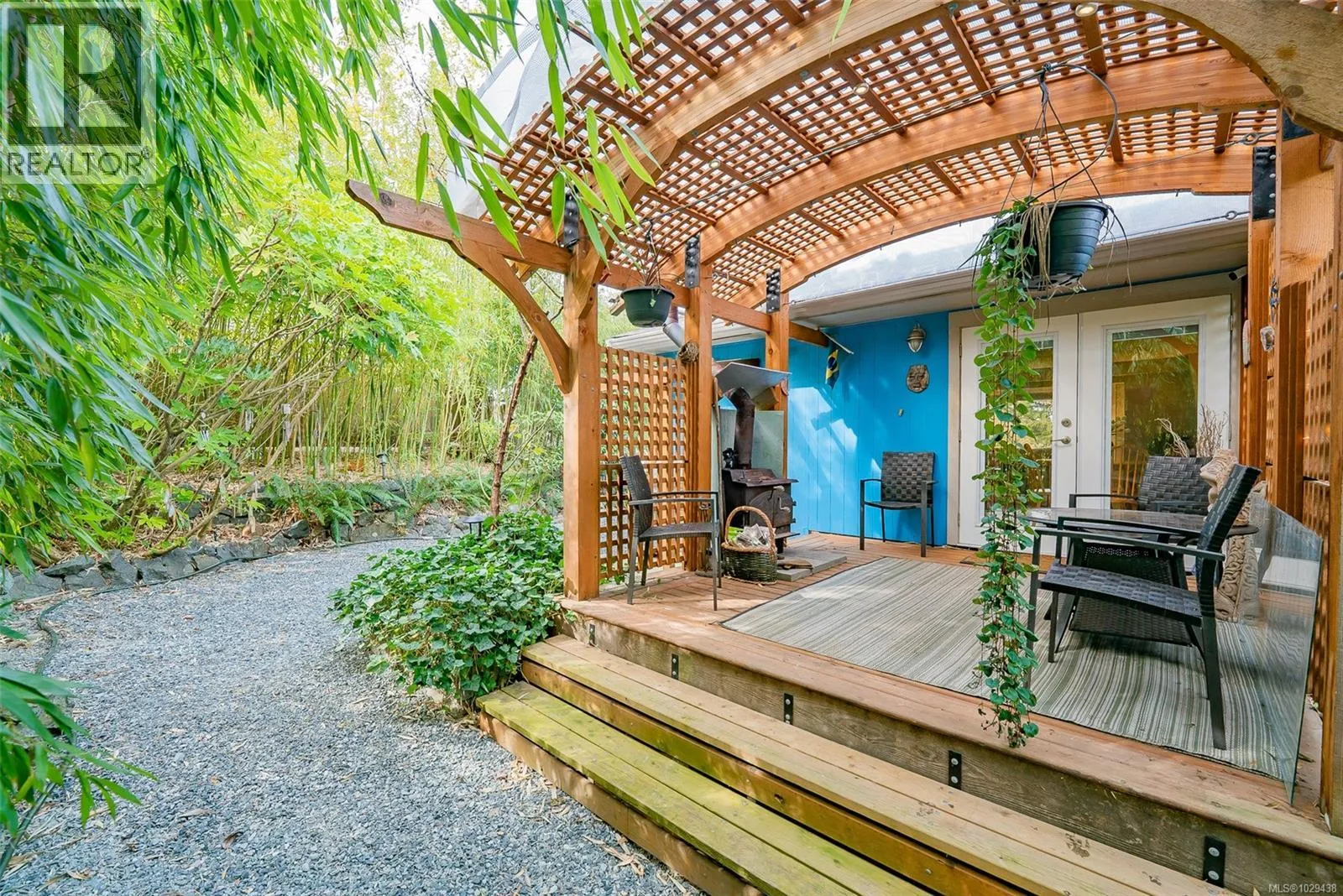 A short stroll to the waterfront and across from an iconic family park, this classy, renovated home reflects the heart and soul of Nanaimoâs Brechin neighbourhood. The sellers created an oasis in their yard with a small waterfall, covered rear south-facing deck with separate woodstove, and even an outdoor nook to sip a coffee or read a book in genuine privacy. Lined with palm trees and banana plants only the warmth of Westcoast living offers, the front yard also has a patio to get some summer shade. Lots of parking and a single garage. Inside reflects a great plan: a bright foyer with 12â ceiling greets you; the main level is tastefully updated with deep living room, contemporary paint colours, fireplace with electric insert, valance, and wired for surround sound. The dining and kitchen areas are cozy yet functional with built-in glass buffet, double French doors to your rear yard oasis, modern cabinetry with under counter lighting, tiled backsplash, gas range, quality appliances, double sink overlooking a truly unique small bay window, ideal for flowers or a small herb garden. Three bedrooms on this level are complemented by remodeled 5-piece bathroom. The lower level includes a large family room/home office, 4th bedroom, spacious laundry room with EE furnace, and 3 pc bathroom. A door to the garage completes this level. So many extra features include vinyl windows, 7-year-old roof, hardi-clad exterior, generator, irrigation system in rear, newer HWT, and upgraded perimeter drains. (id:27476)