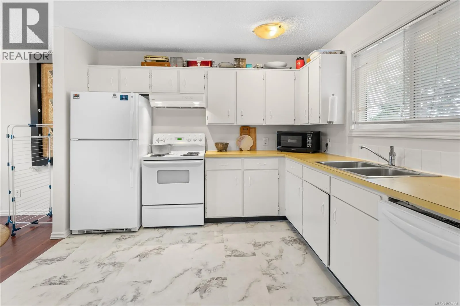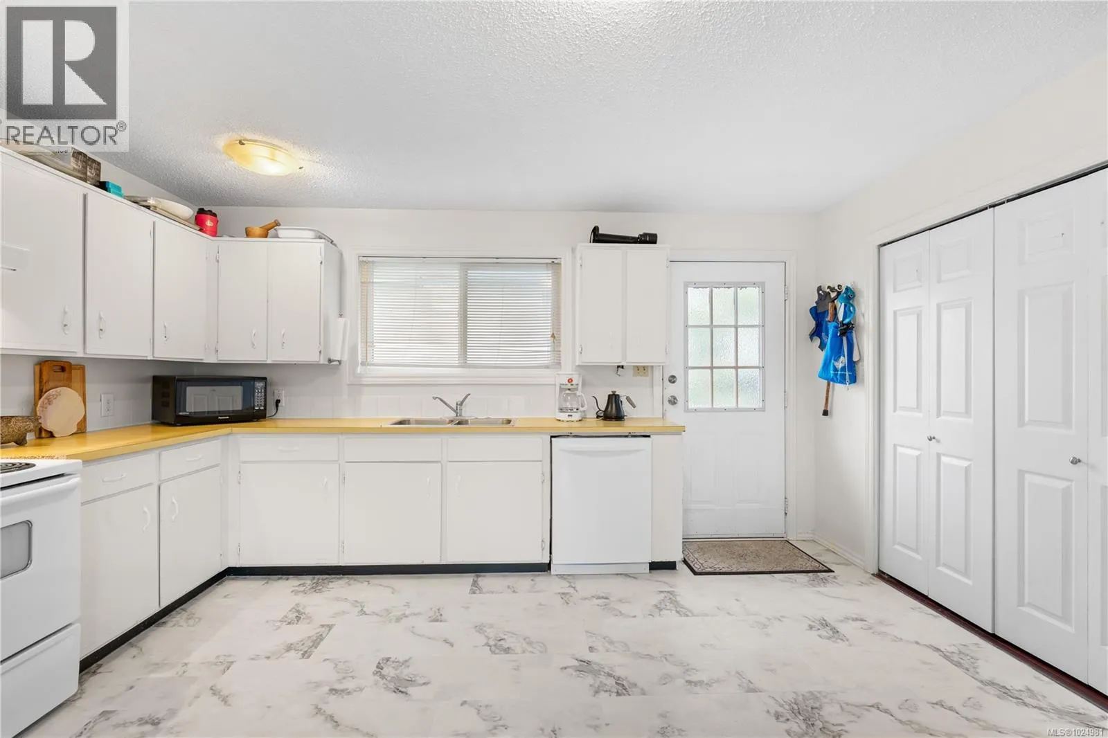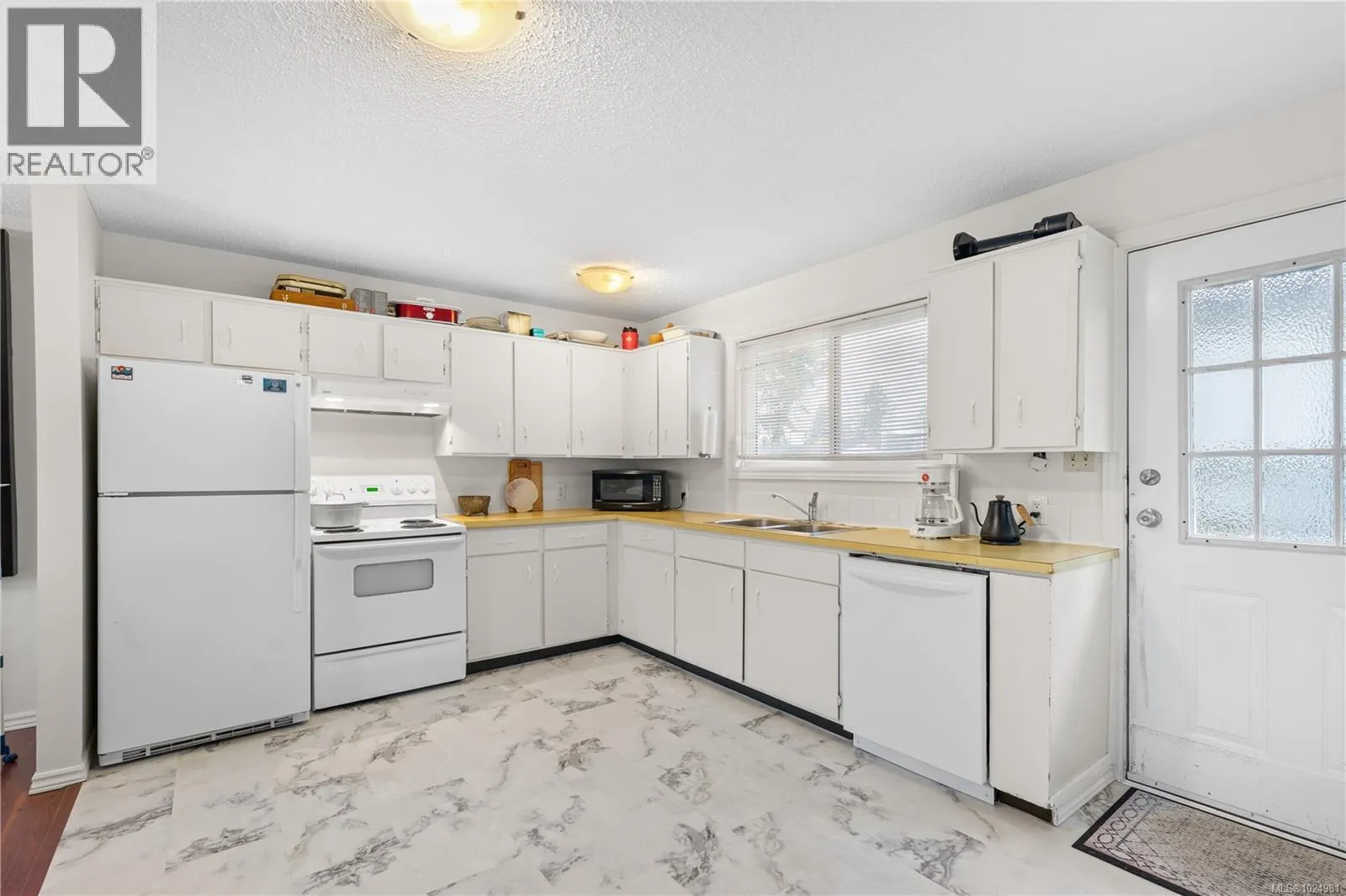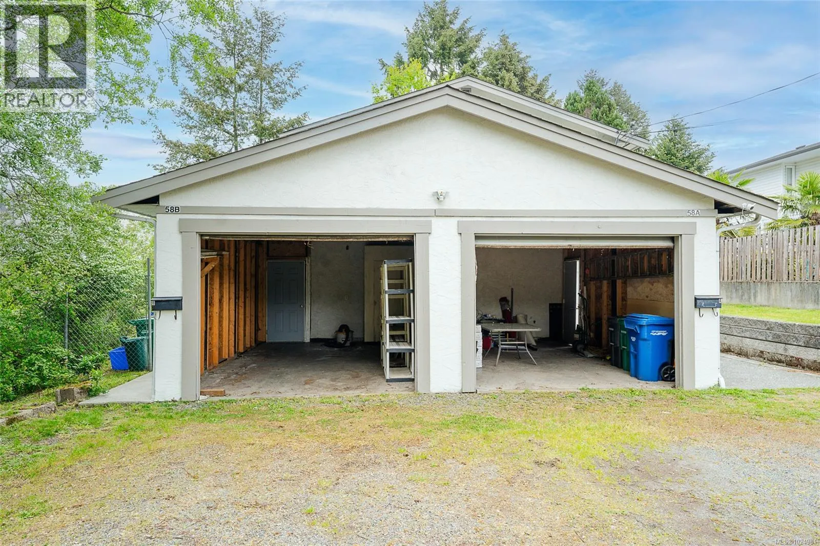 Opportunity! This full duplex on a double lot, offering stunning views of Mt. Benson, is your chance to secure an excellent investment. Ideally located near all levels of education, including VIU, shopping, downtown, ferries, and the fast ferry. Enter the market with a family member or friendâeach enjoying a private suite and single-car garageâor take advantage of a fantastic investment or have a mortgage helper. This duplex offers flexibility to suit a variety of needs. Both units are generously sized, each featuring 2 bedrooms, 1 bathroom, and their own laundry facilities (lower unit includes a washing machine only). Recent updates include two hot water tanks, new flooring in the lower unit, and updated kitchen and bathroom flooring in the upper unit. The exterior has been freshly painted, and the balcony was replaced just a couple of years ago. Enjoy no strata fees! All measurements and data are approximate and should be verified if deemed important. AS IS WHERE IS (id:27476)
