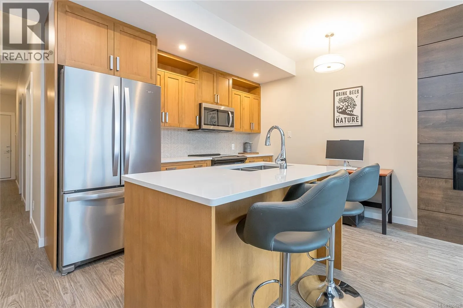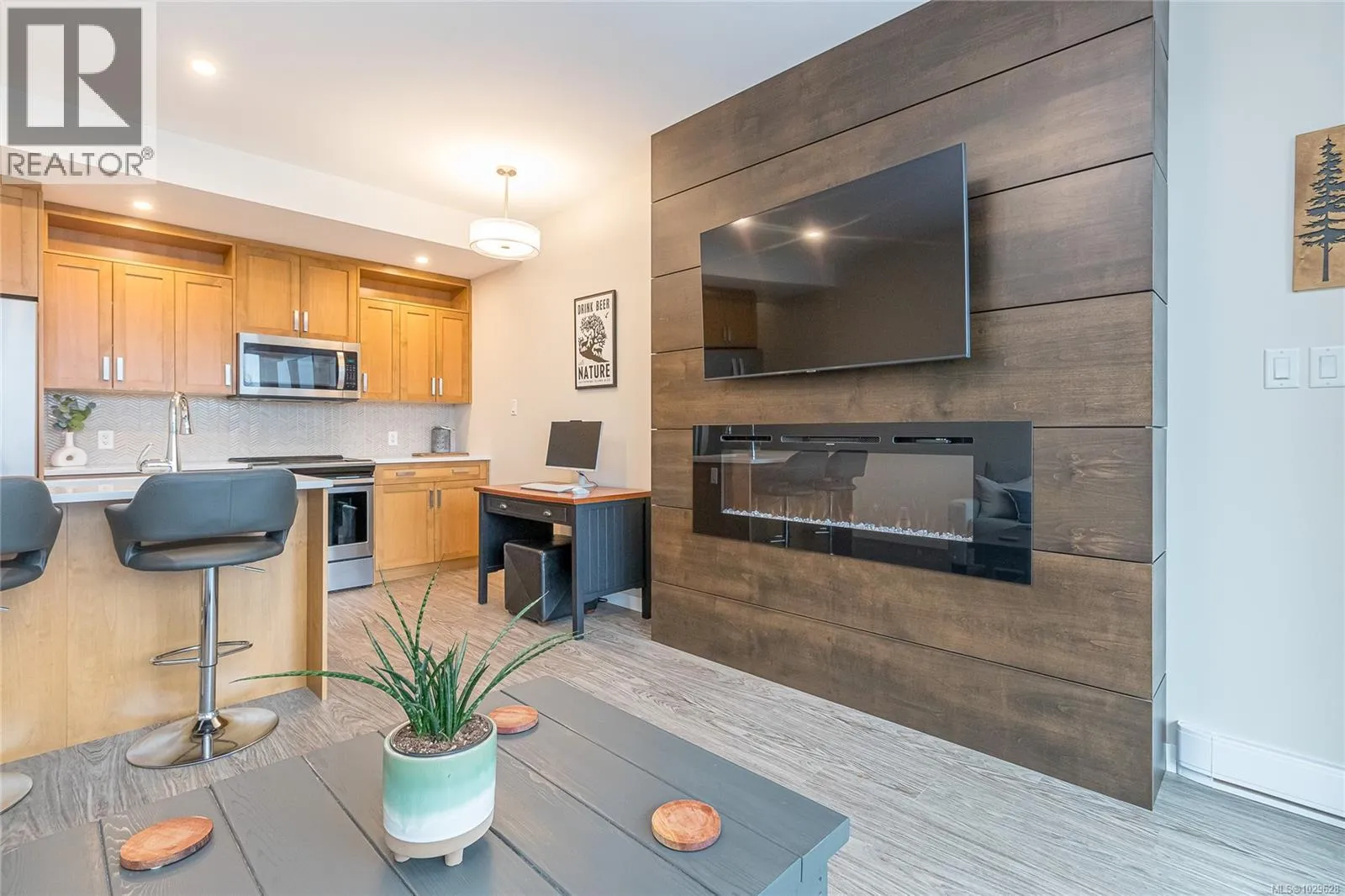 MODERN CONDO WITH WATER VIEWS! Welcome to this beautifully 1 bedroom, 1 bathroom condo offering floor to ceiling windows that showcase stunning water views and an abundant of natural light.The sleek, thoughtfully laid out kitchen features quartz countertops, stainless steel appliances, a spacious island, and plenty of cabinet space. The open concept livingroom includes an electric fireplace with multicolor flames and modern, wood accent wall feature. Step outside to the large covered patio, perfect for enjoying outdoor entertaining year-round. This pet-friendly building comes with no rental restrictions, making it ideal for both homeowners and investors. Additional amenities include a secure underground parking stall, a storage unit and a communal courtyard. Enjoy a prime location just minutes from Nanaimo Harbour walkway, poplular restaurants, shopping, seaplane terminal, parks, a church and Protection Island Ferry. Affordable luxury living at it's finest, come view today! (id:27476)