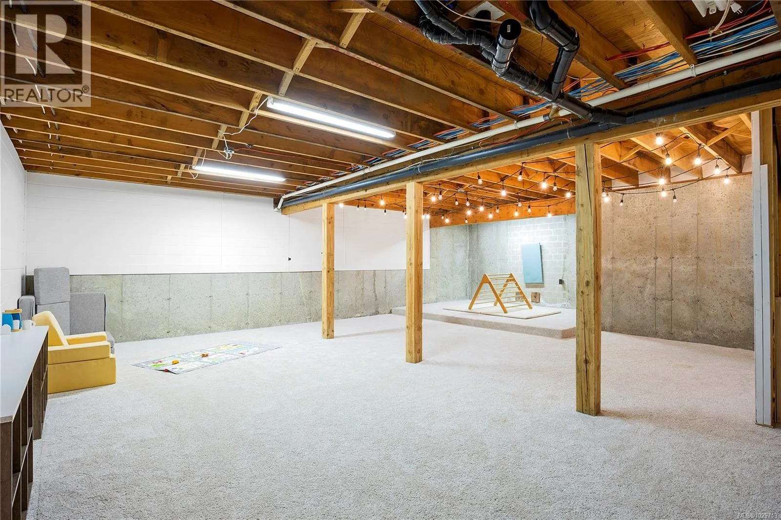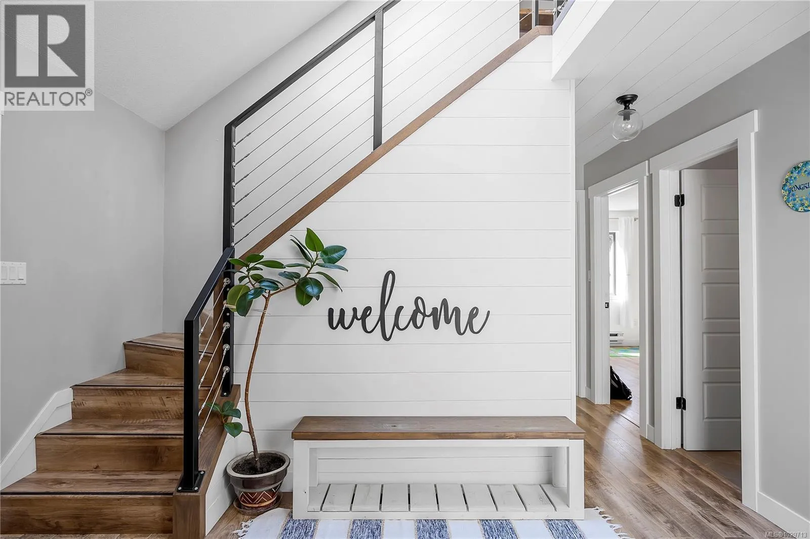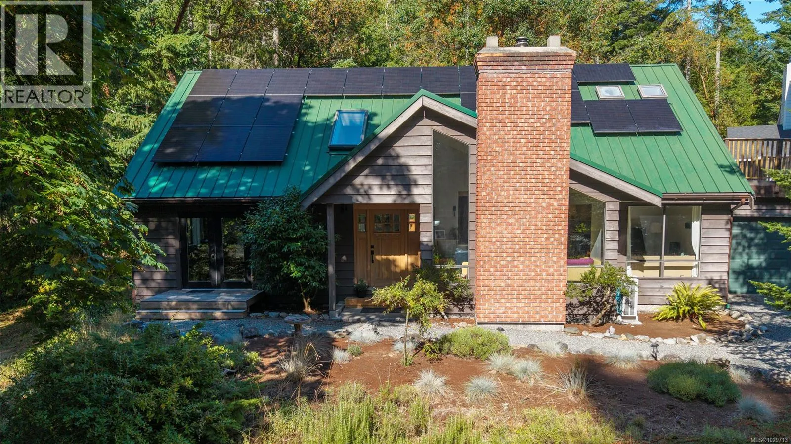 This beautiful 3 bed + office (or 4 bedroom), 3 bath family home situated on over an acre of land in Cedar by the Sea is as practical as it is comfortable. Inside, vaulted ceilings and large windows fill the main floor with natural light. The kitchen features quartz countertops and updated appliances, opening into a bright living space. A wood-burning fireplace anchors the living room, a cozy backup to the efficient heat pump. The main-floor office has French doors and its own little deck, ideal for working from home. Upstairs, the primary suite includes a walk-in closet, ensuite with freestanding soaker tub, and a large sun deck. The basement provides a play area for kids and generous storage. A grid-tied solar panel system with net metering generates credits on BC Hydro bills through the summer months. Combined with the heat pump and a new water heater, energy costs stay low for a home this size. A durable metal roof rounds out the package. Outside, mature trees dot the expansive fully fenced yard, and the deer-proof garden holds fruitful apple, pear, and cherry trees, berry bushes, and a greenhouse. Kids will love the play structure with swinging bridge, slide, and swings. This impressive property also features ample parking, municipal water, and a private and serene location with the Cable Bay Trail and beach, and the public boat launch within walking distance. The Duke Point ferry terminal is just minutes away for easy access to the mainland. (id:27476)