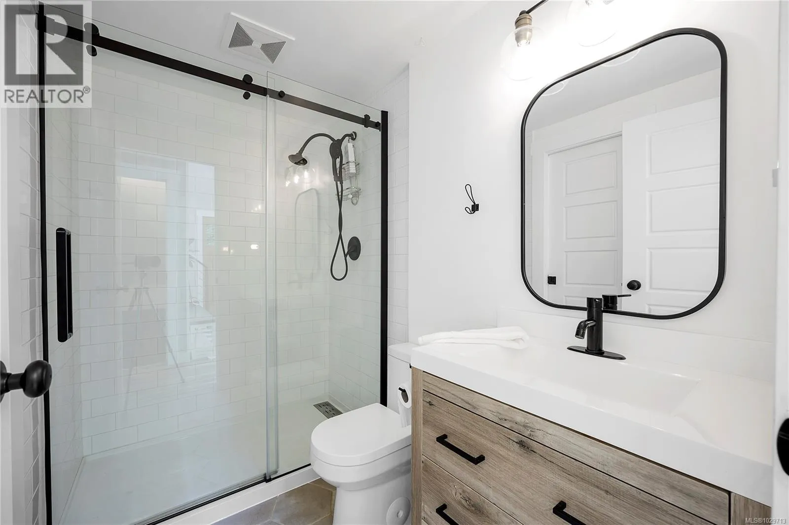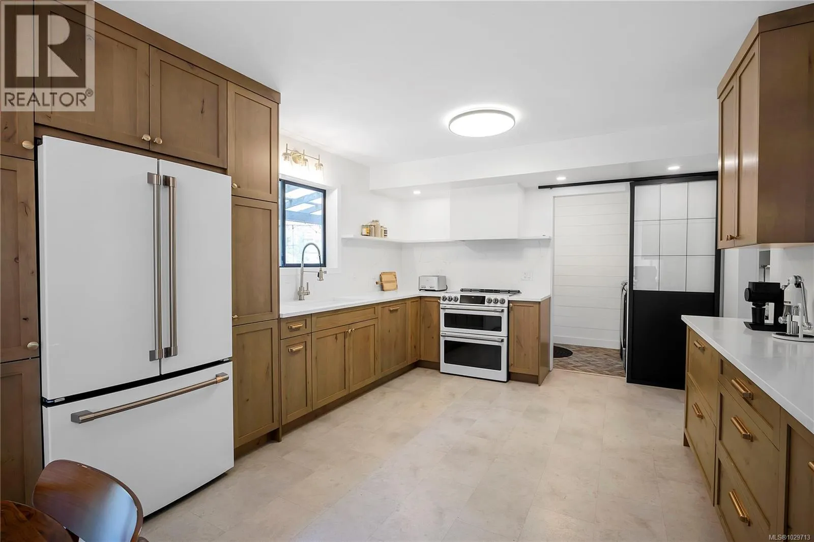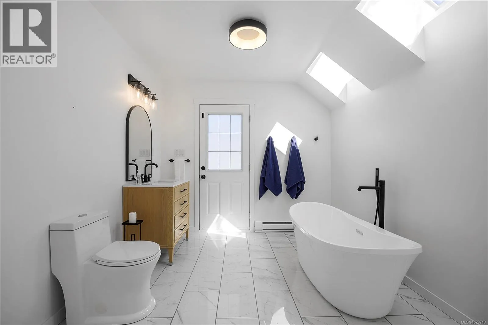 This beautiful 3 bed + office (or 4 bedroom), 3 bath family home situated on over an acre of land in Cedar by the Sea is as practical as it is comfortable. Inside, vaulted ceilings and large windows fill the main floor with natural light. The kitchen features quartz countertops and updated appliances, opening into a bright living space. A wood-burning fireplace anchors the living room, a cozy backup to the efficient heat pump. The main-floor office has French doors and its own little deck, ideal for working from home. Upstairs, the primary suite includes a walk-in closet, ensuite with freestanding soaker tub, and a large sun deck. The basement provides a play area for kids and generous storage. A grid-tied solar panel system with net metering generates credits on BC Hydro bills through the summer months. Combined with the heat pump and a new water heater, energy costs stay low for a home this size. A durable metal roof rounds out the package. Outside, mature trees dot the expansive fully fenced yard, and the deer-proof garden holds fruitful apple, pear, and cherry trees, berry bushes, and a greenhouse. Kids will love the play structure with swinging bridge, slide, and swings. This impressive property also features ample parking, municipal water, and a private and serene location with the Cable Bay Trail and beach, and the public boat launch within walking distance. The Duke Point ferry terminal is just minutes away for easy access to the mainland. (id:27476)