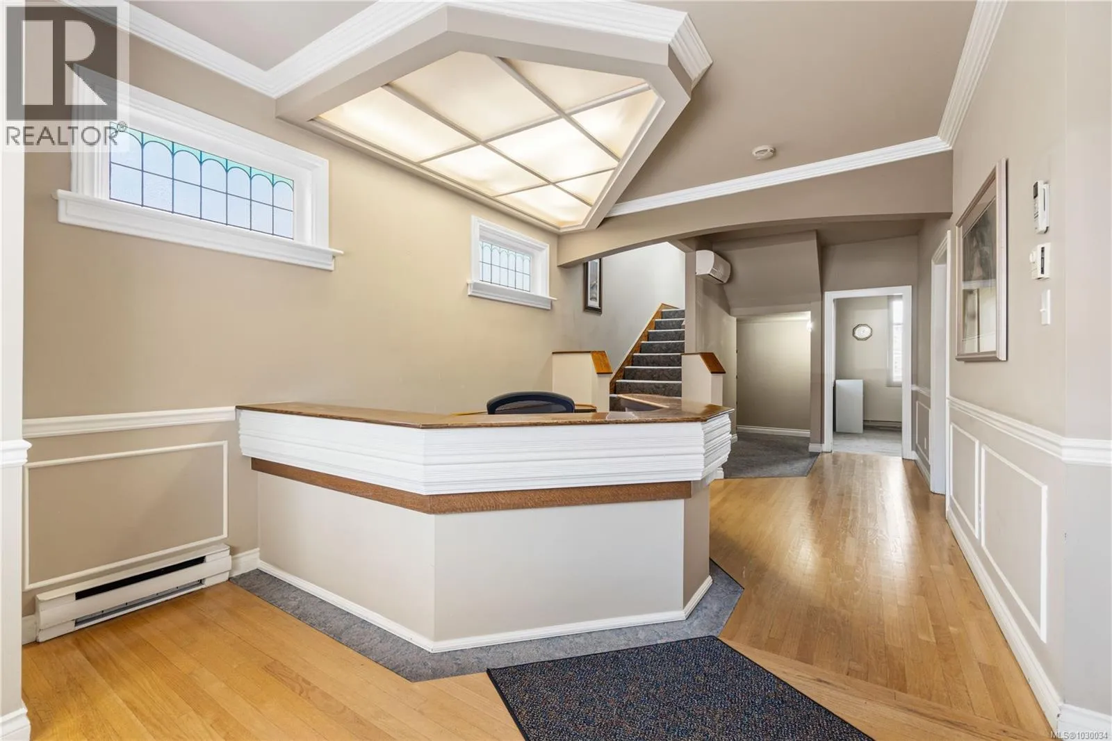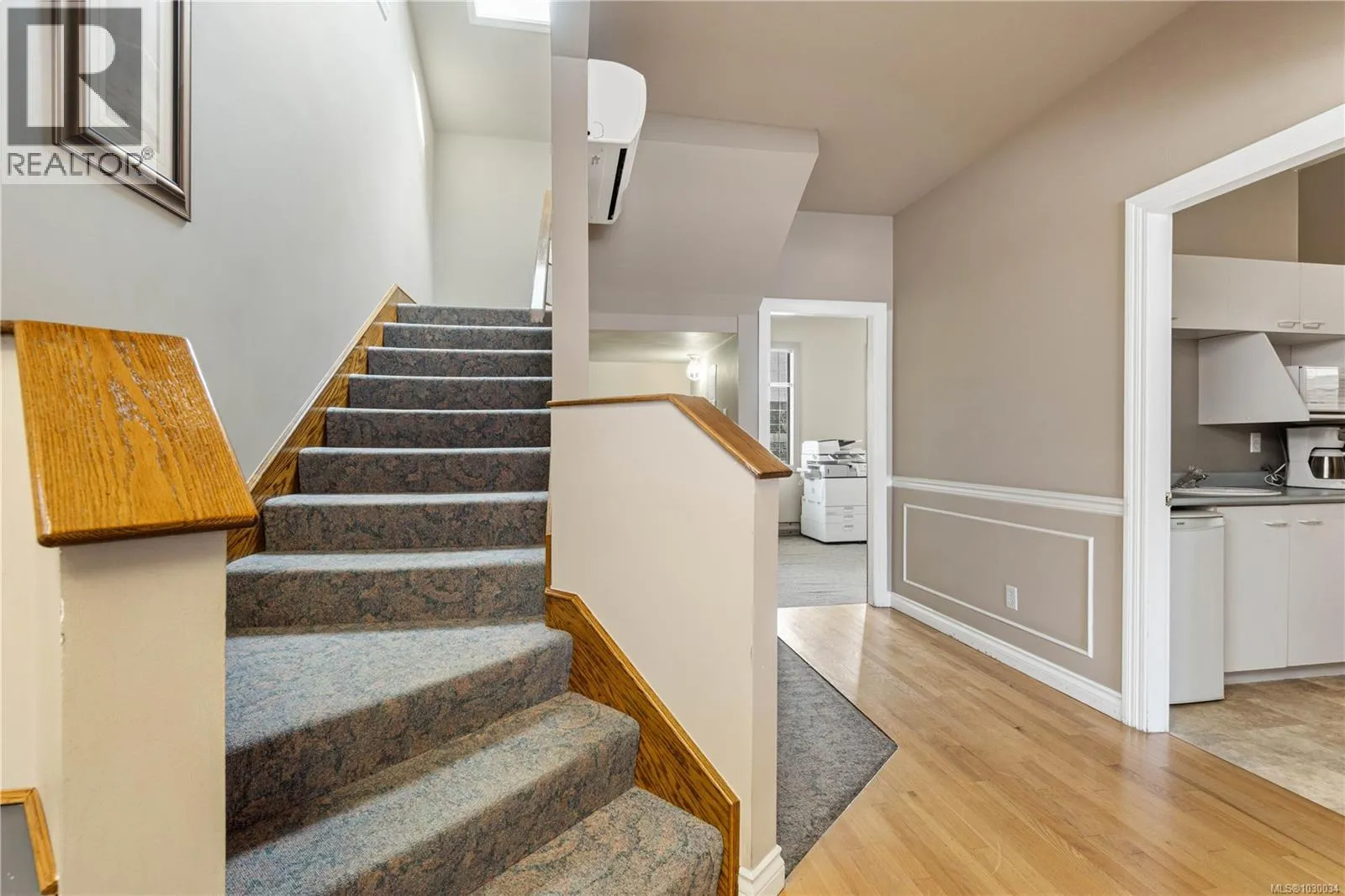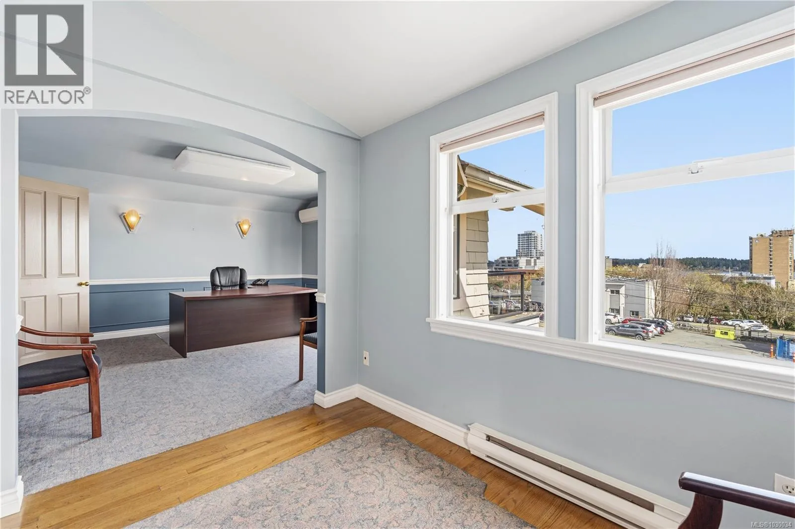 Impressive commercial office building with exceptional curb appeal in the heart of Old City, located on Wesley Streetâwidely regarded as Nanaimoâs hippest corridorâjust steps to restaurants, shops, City Hall and the waterfront. Ideal for accountants, lawyers, engineers and financial consultants, the well-designed main level offers reception, client seating, 6 private offices (total both floors) and lunch area, plus a fully self-contained 2-bedroom caretaker suite below. Excellent street exposure highlights the character, complemented by a covered front deck with wheelchair access. On-site parking for 4 vehicles plus ample street parking. Surrounded by additional parking lots that may offer future assembly potential, enhancing long-term value. Zoned DT2 for a wide range of commercial and residential redevelopment options. Rare live/work opportunity suited to professionals, including those commuting to/from Vancouver. Measurements approx; verify if important. (id:27476)