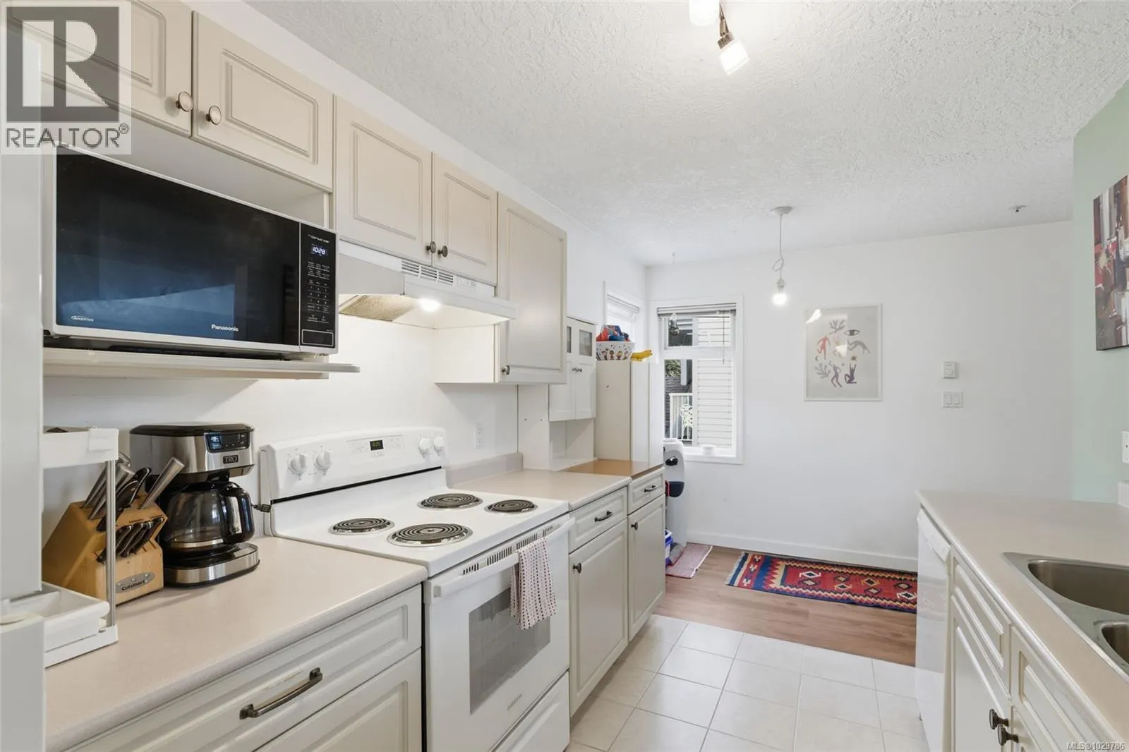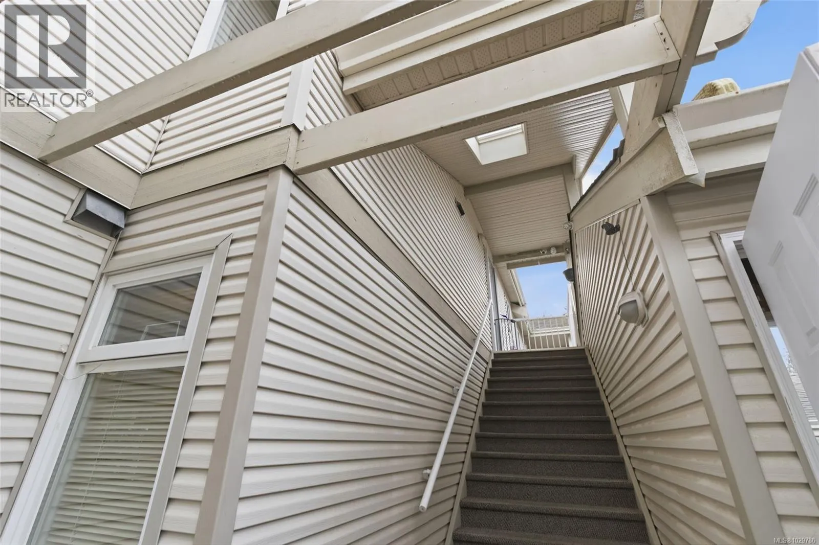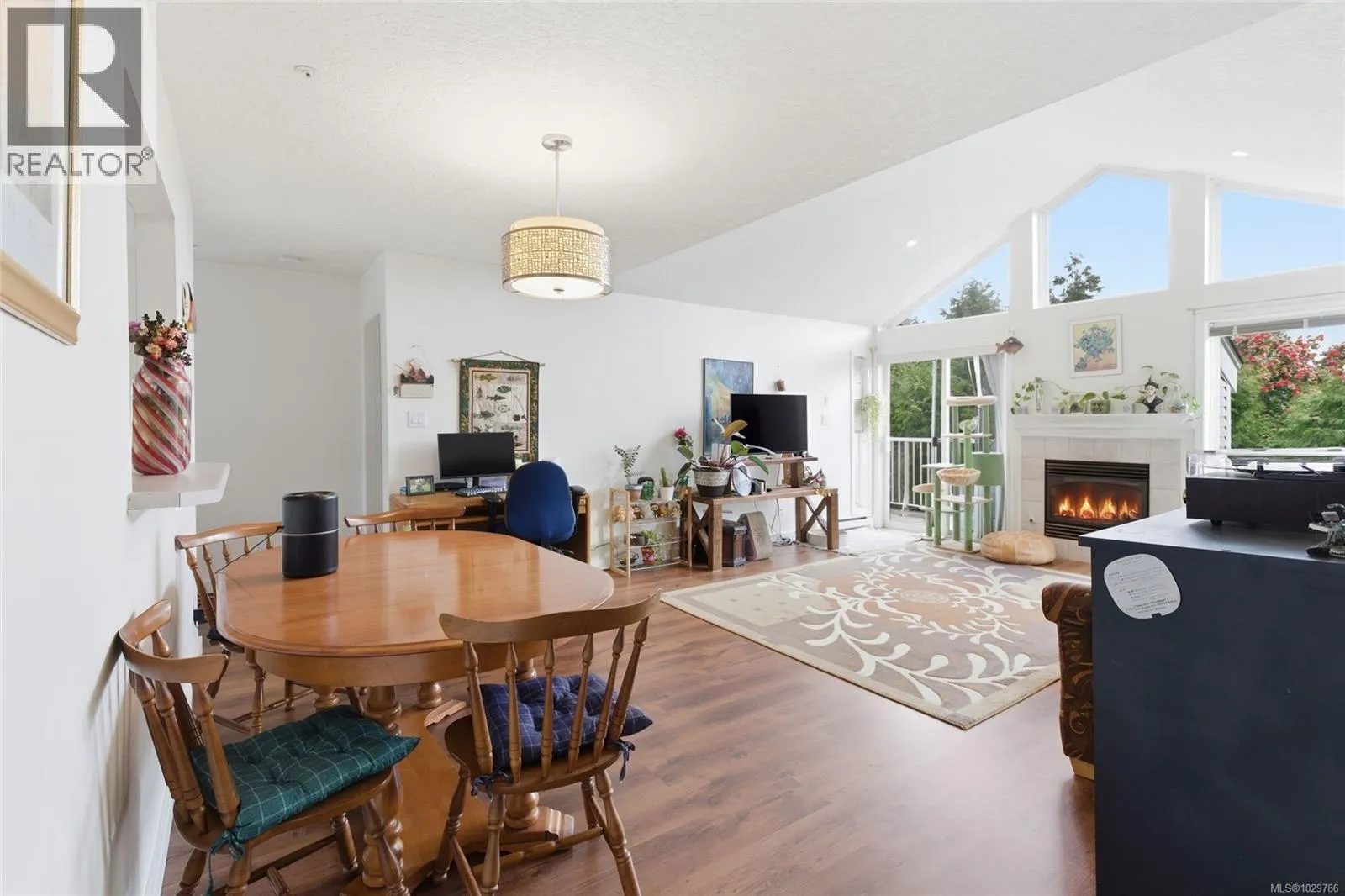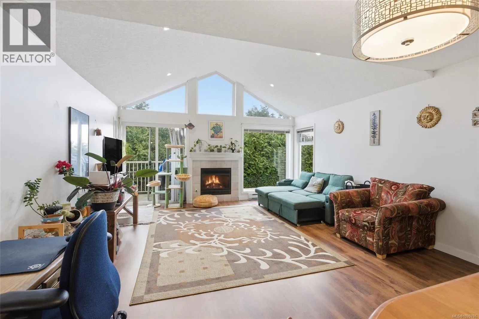 Welcome to Park Ridge Place! This bright upper-level 2-bedroom, 2-bathroom townhome offers a spacious, open-concept design in a central Nanaimo location. Vaulted ceilings in the living room enhance the sense of space, while the cozy gas fireplace creates a warm focal point. The home features newer appliances throughout for added comfort and peace of mind. The kitchen flows seamlessly into the dining and living areasâideal for everyday living and entertaining. Step out onto the deck from both the living room and primary bedroom, perfect for relaxing outdoors. Enjoy the convenience of a single-car garage with mezzanine storage plus an additional parking stall right beside the garage. Located within walking distance to Bowen Parkâs trails and amenities, the Nanaimo Seawall, transit, and shopping, this home supports an active, connected lifestyle. A fantastic opportunity for low-maintenance living in a desirable community. (id:27476)