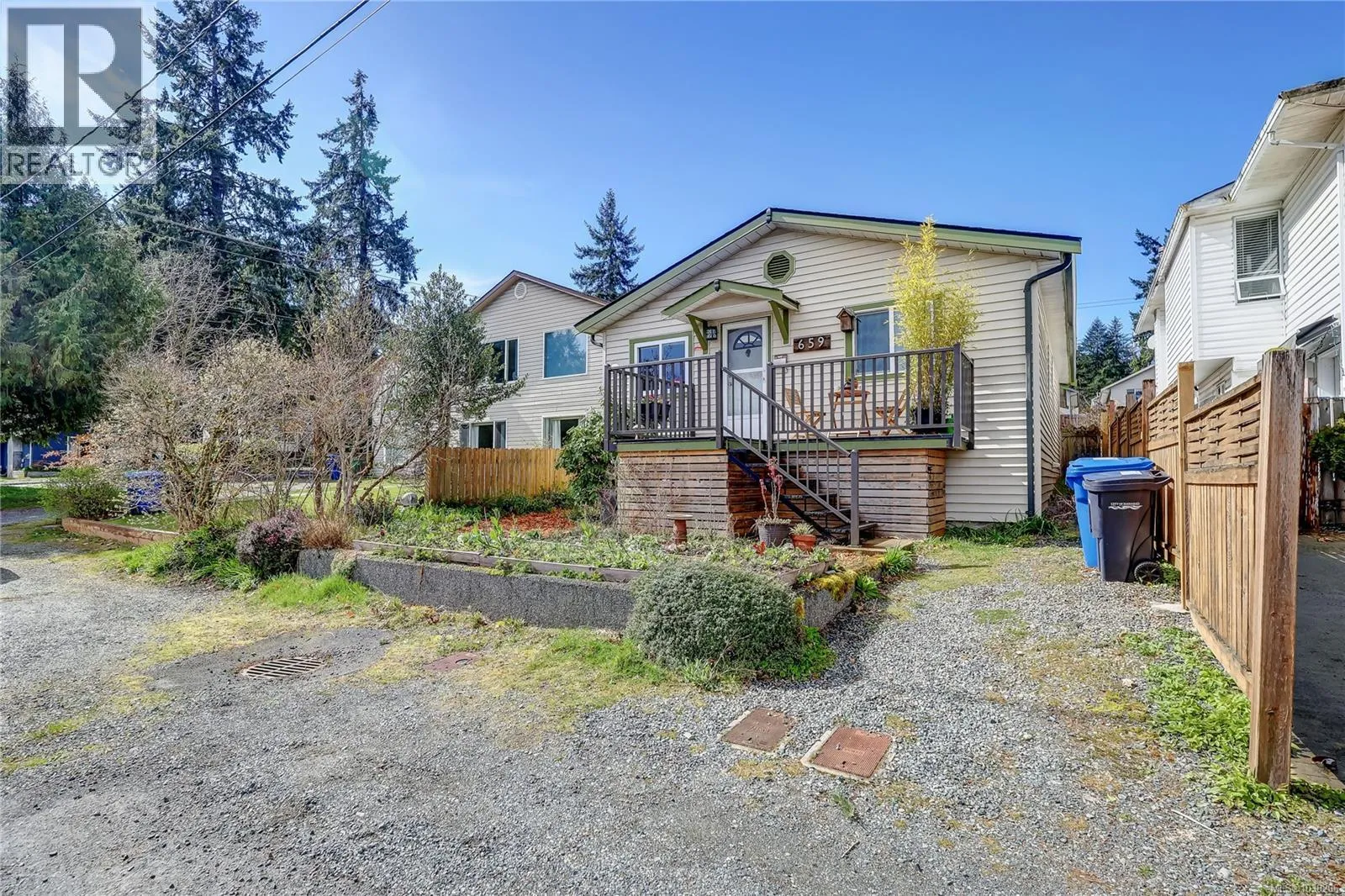 Step inside this fab mid century home to find beautiful original hardwood flooring bringing timeless warmth to the space along with thoughtful modern updates. With 2 cozy bedrooms & a functional layout arranged for optimal use of the space, itâs the ideal size for a couple, small family, or a student looking to live near campus. Well-maintained move in ready w established gardens front & back for the green thumb. Between the garden-party-ready yard & sundeck & the detached garage currently a creative studio, you will have plenty of room to grow your hobbies. Detached double garage w overhead skylights built w permit 2009 is conveniently accessed via the lanewayâperfect for an artistâs sanctuary, home office, and/or a workshop. Walking distance to all levels of schooling, including VIU. Steps to explore the lush scenic trails & favourite local swimming spots with or without Fido at Colliery Dam Park. Minutes to variety of shopping at University Village Mall & the newer Quality Foods. (id:27476)