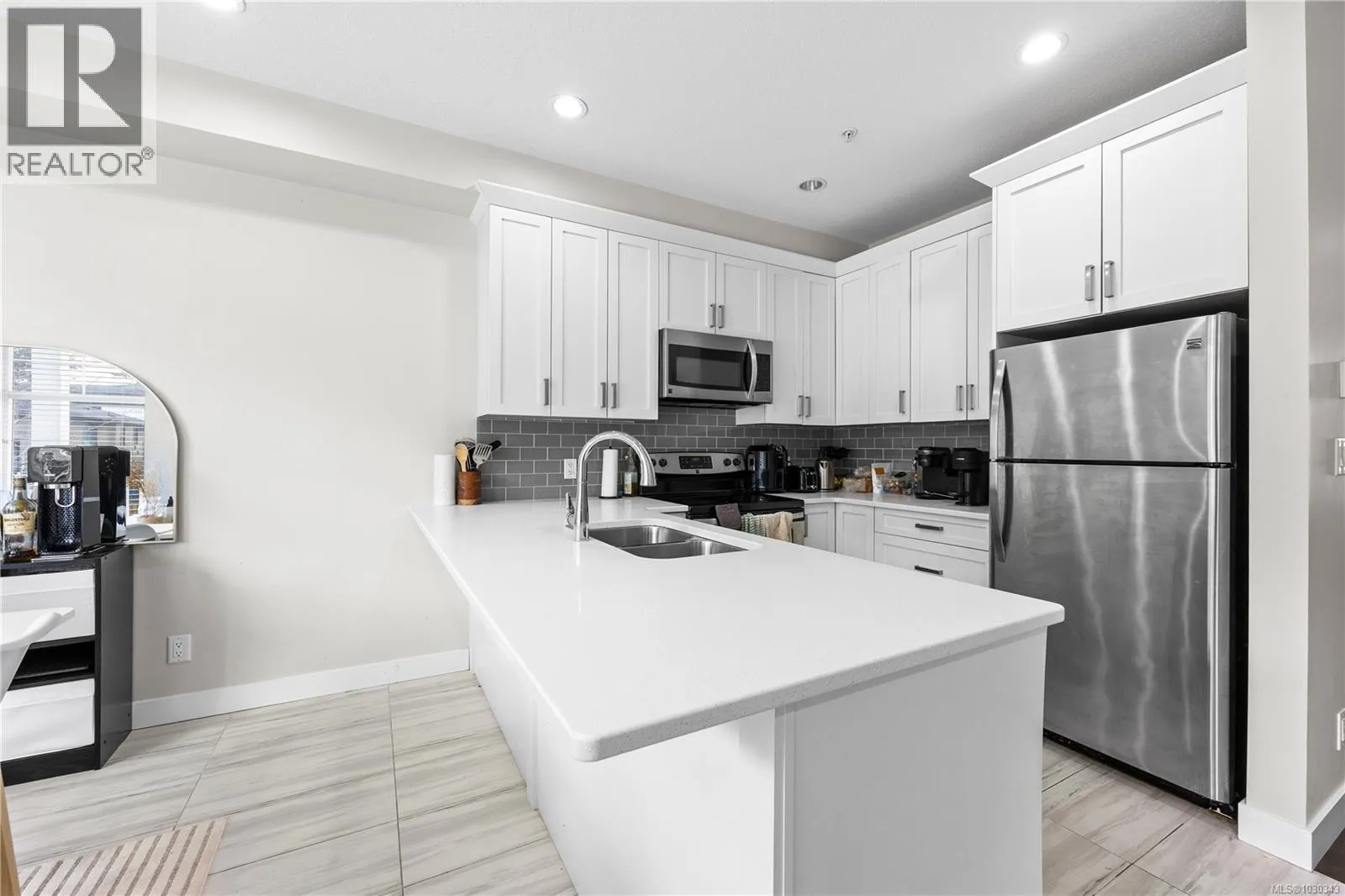 The Best Position in Painted Village! This stylish corner-unit townhome is tucked away in the very last building at the back of the complex, offering unparalleled privacy, no through traffic, and serene views of the adjacent green space. The bright interior shines with 9â ceilings and rich hardwood flooring. The gourmet kitchen is a chef's delight, featuring sleek quartz countertops, white cabinetry, stainless steel appliances, and ceramic tile floors. A spacious dining area opens to a sun-soaked balcony, perfect for BBQs. The inviting living room boasts an electric fireplace and cozy window bench seating. Upstairs, discover two primary suites, each featuring its own private ensuite and large closetsâideal for maximum comfort. Located in a prime North Nanaimo neighborhood near Pleasant Valley School and shopping, this property is a worry-free investment with an excellent tenant already in place. Measurements are approximate, pls verify if important.restrictions and a pet-friendly policy, this stylish home is perfectly situated near Pleasant Valley School and North End shopping. A rare find that combines the best positioning in the complex with a solid, worry-free investment! Measurements are approximate, pls verify if important. (id:27476)