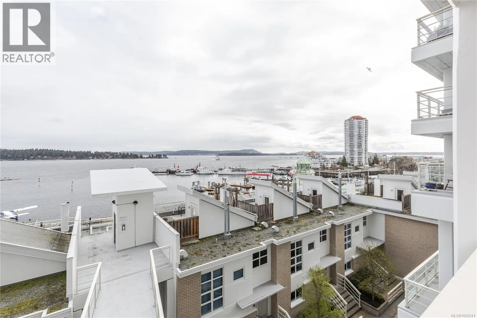 Experience Panoramic Ocean Views in this 1151 sq ft, 2 bed, 2 bath waterfront home at Pacifica. Breathe in fresh sea air & sweeping vistas of the Inner Harbour, Gulf Islands & Coastal Mtns. Elegant hardwood and plush carpets flow throughout. This bright, open design features a main living space w/ gas fireplace & stone surround. Glass doors lead to a deck to enjoy the marine activity & views. The kitchen boasts granite counters & eating bar, quality cabinetry, stainless appliances & gas range. Dining area is open to the lounge. The lrg master offers ocean views, W/I closet, 4 pc ensuite w/ shower & dual vanities. The 2nd bedroom has ocean views & W/I closet. There is a main 4 pc bathroom. Steps to the Nanaimo waterfront, shops, cafes, year-round park events & float planes. Includes underground parking & courtyard. Strata covers hot water, caretaker, mgmt, maintenance, water, sewer & garbage. 1 dog or 2 cats allowed, rentals ok. Measurements approx; to be verified by buyer if important. (id:27476)