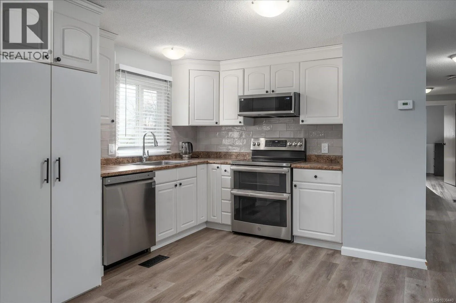 Welcome to Park Lane Mobile Home Park, one of Nanaimoâs most family- and pet-friendly communities. This well-kept home offers exceptional value with a long list of upgrades, making it an ideal option for first-time buyers, downsizers, or anyone seeking an affordable, move-in-ready property. Since 2021 the home has seen extensive improvements including new vinyl siding, all new flooring and fresh paint throughout, a fully updated bathroom, new PEX plumbing, upgraded lighting, and stainless steel appliances. Additional features include thermal windows (2007) and a newer roof, providing peace of mind for years to come. Inside, youâll find a bright, cheerful kitchen with abundant cabinetry and a modern tile backsplash, opening into a spacious living room with plenty of natural light. Bedrooms are well sized, and the refreshed bathroom with adjacent laundry area adds convenience and function. Outside, the fully fenced, sunny yard is perfect for kids, pets, gardening, or simply enjoying the outdoors. A thriving cedar hedge creates privacy and a natural green backdrop, while the grassy lawn provides welcoming space to relax and play. Located on a quiet no-through road, this home is steps from Park Avenue Elementary and close to Vancouver Island University, making it an excellent choice for families or students. Douglas & Eighth Park, Chase River Creek, shopping, public transit, restaurants, and daily amenities are all nearby. With its long list of upgrades, friendly community setting, and convenient location, this home offers outstanding affordability and lifestyle value in one of Nanaimoâs most desirable mobile home parks. All measurements are approximate; buyer to verify if important. (id:27476)