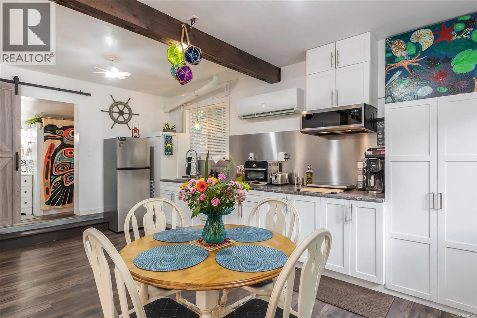 Tucked away on a private 1.7-acre sanctuary minutes from town, this exceptional property offers rare flexibility w/3 residences & 2 fully serviced RV hookupsâideal for multi-generational living, extended family, or high rental income. Surrounded by mature trees & beautifully maintained grounds, the setting is peaceful & inviting from the moment you arrive. Meandering trails wind through the property, leading past a striking natural rock feature w/fossils & a charming pond that creates a serene, park-like backdrop. This is a property designed to be lived in & enjoyed, where children can explore, guests can unwind, & every season brings its own beauty. The main residence offers +2.100 sq. ft. w/ 4 Bed and 2 Bath perfectly suited for comfortable family living. A bright open-concept kitchen & living area is filled with natural light & flows seamlessly onto a spacious deck overlooking the surrounding greenery. Ideal for morning coffee, outdoor dining, or evening gatherings immersed in nature. The thoughtful layout provides both connection & privacy, with generous bedrooms and flexible space for a home office or hobbies. Beyond the main home, two well-maintained secondary residences create exceptional versatility & income potential. The newly finished two-level detached guest house features 1.5 Bath in-suite laundry & its own private setting, making it ideal for extended family, long-term tenants, or short-term rental opportunities (buyer to verify). Both secondary units are being sold furnished, offering a turnkey mortgage helper option from day one. Adding even more value are 2 fully serviced RV hookupsâperfect for visitors, recreational vehicles, or additional revenue streams. Serviced by city water & a septic system, this property blends rural tranquillity with the convenience & reliability of municipal services.A rare opportunity to secure privacy, flexibility, & long-term income potentialâthis is acreage living without compromise. (id:27476)