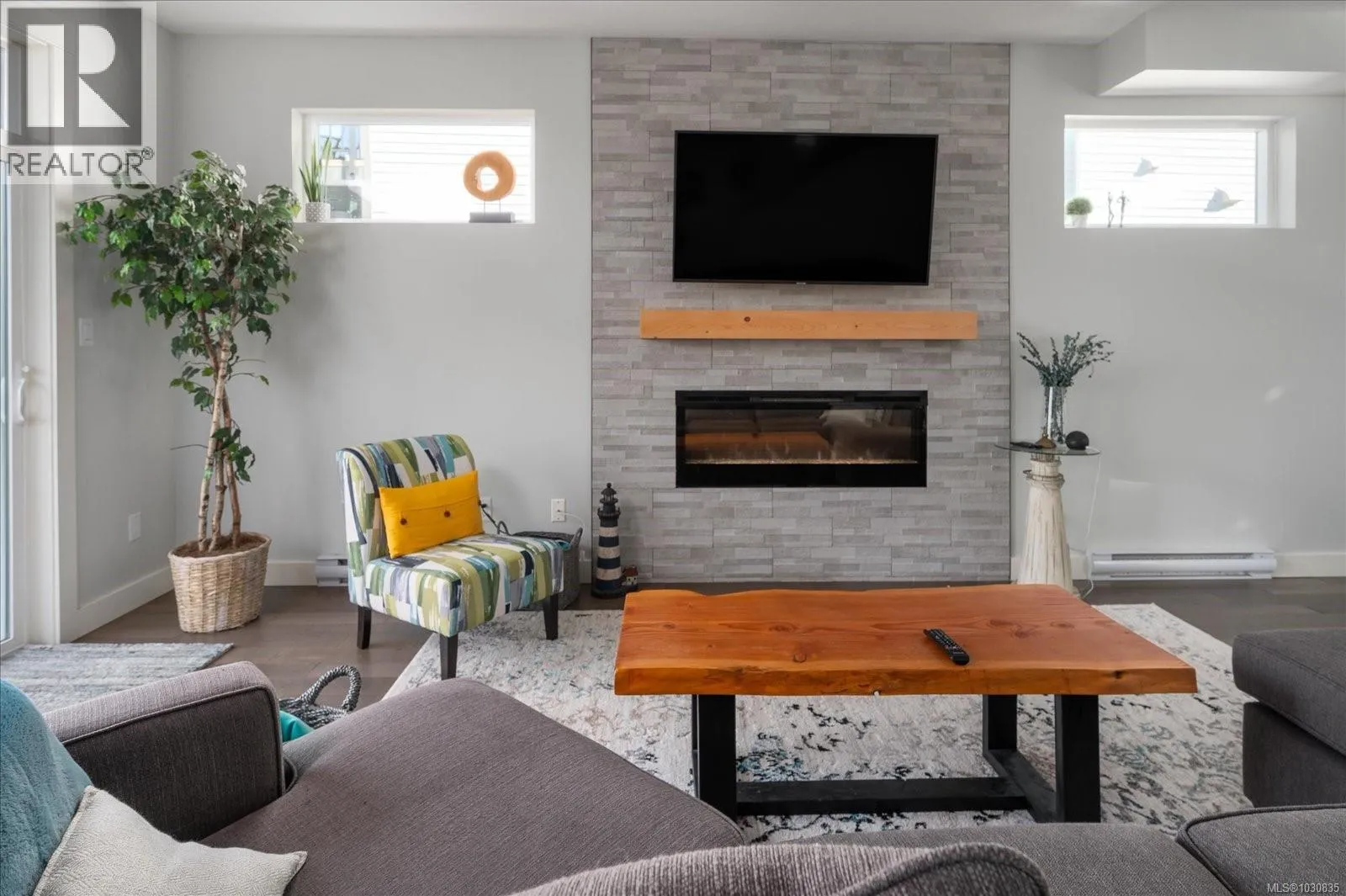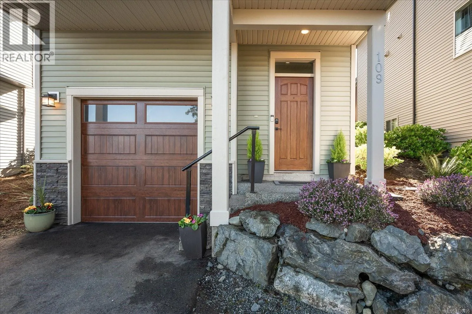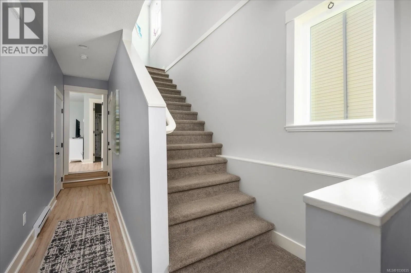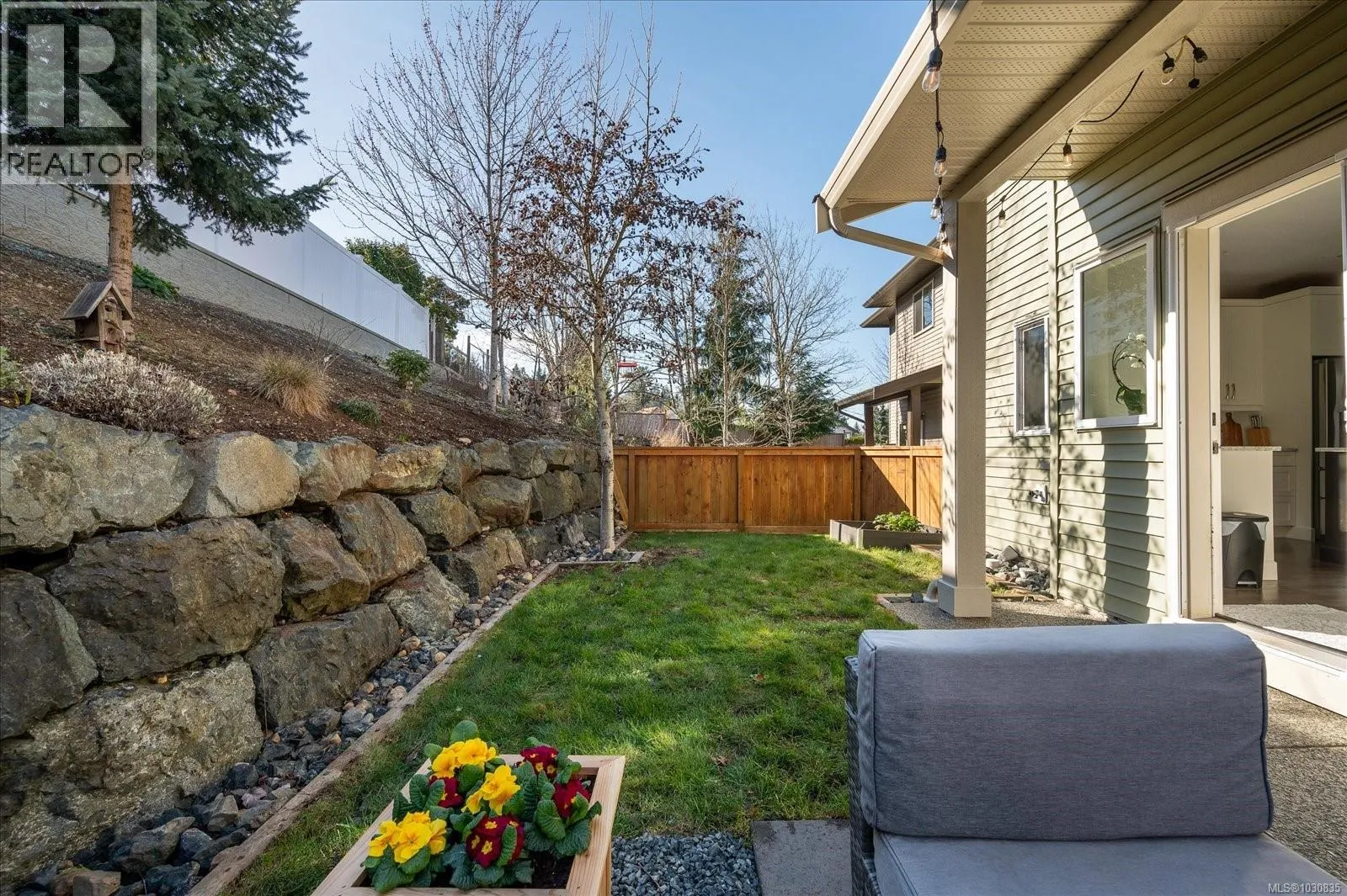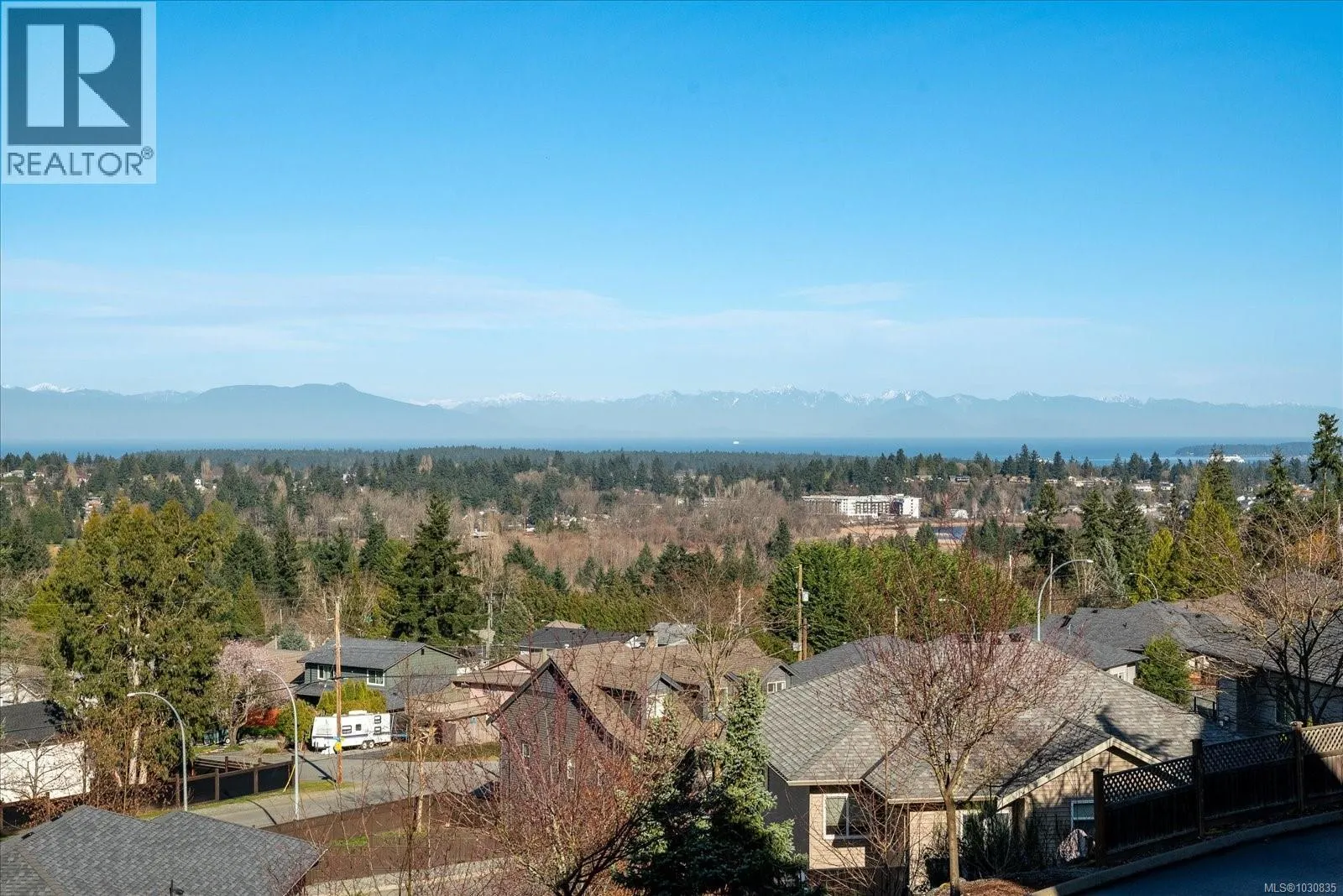 Fabulous detached and updated 3 level newer townhome! Like living in a single family home without any of the home owner hassles. The strata takes care of all exterior maintenance except your yard. Offering almost 2300 Sq.Ft. of living on 3 levels with no shared walls. The main floor offers a bright and airy great room with a large kitchen with quartz counters and a generous pantry. There is also a lovely living/dining room with beautiful fireplace and ocean views. From this level you can also enjoy a deck and fully fenced yard area with patio. Perfect for pets. The lower level features a large bedroom and full bath while the top floor has 3 more bedrooms including a stunning primary and 2 more bathrooms. The floor plan is ideal for a young family or students attending VIU. This small quiet strata community is perfectly situated for convenience to amenities and is a easy walk to Westwood Lake and restaurants. There is also an oversized single garage and lots of parking. Well managed and pets are welcome too! (id:27476)