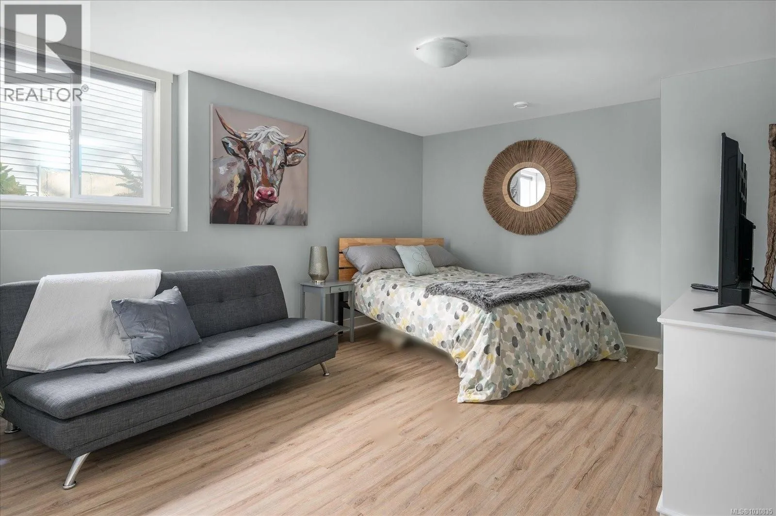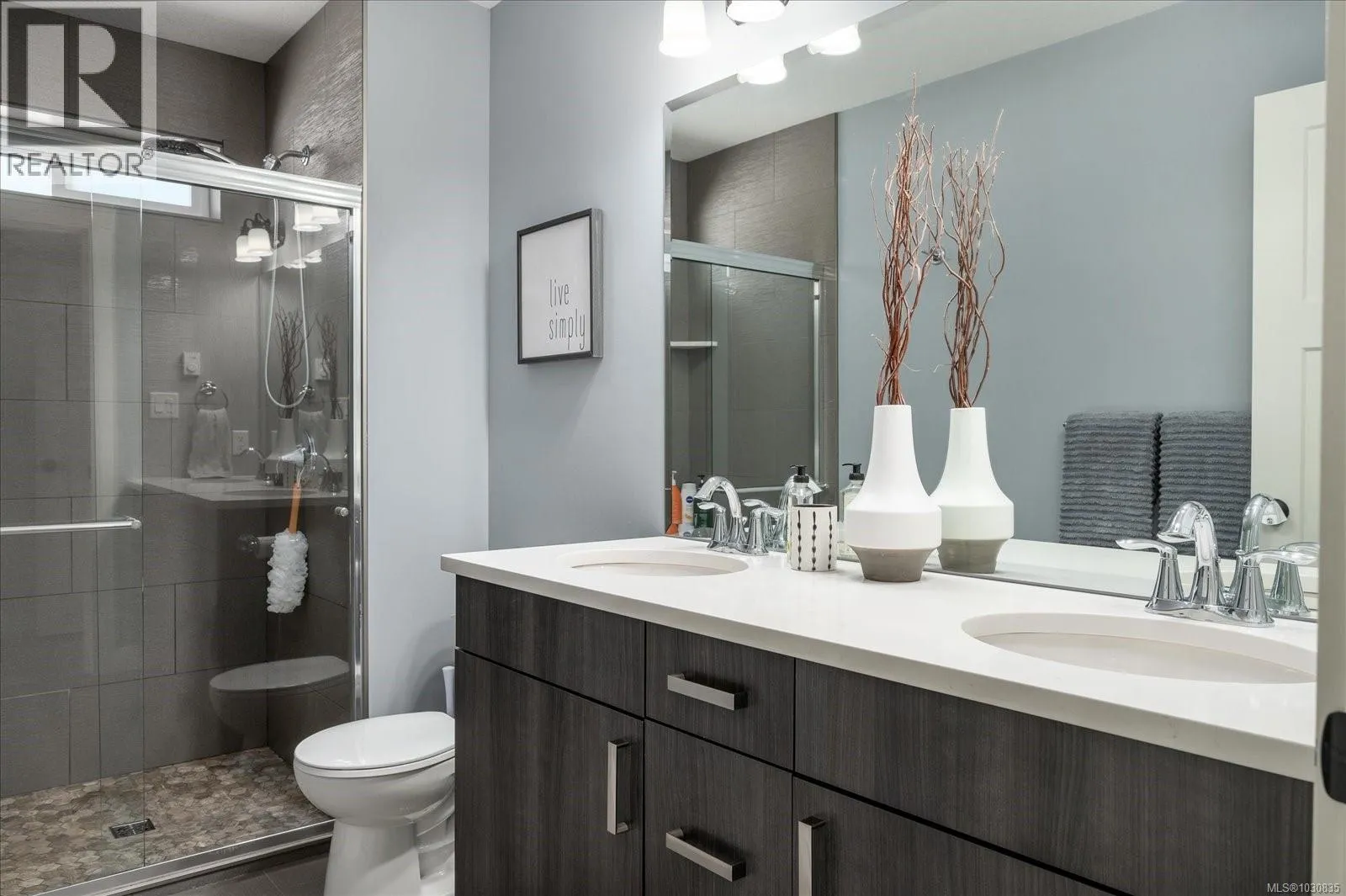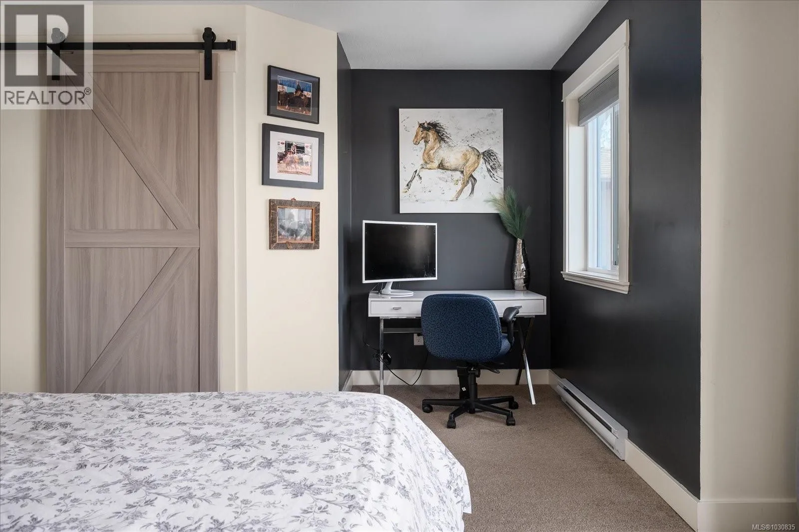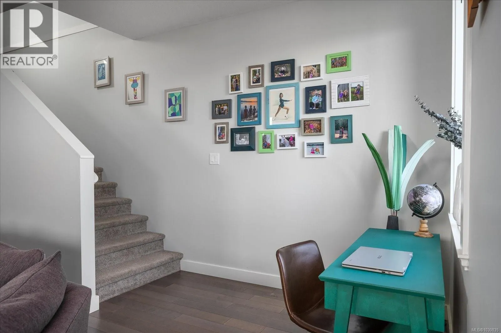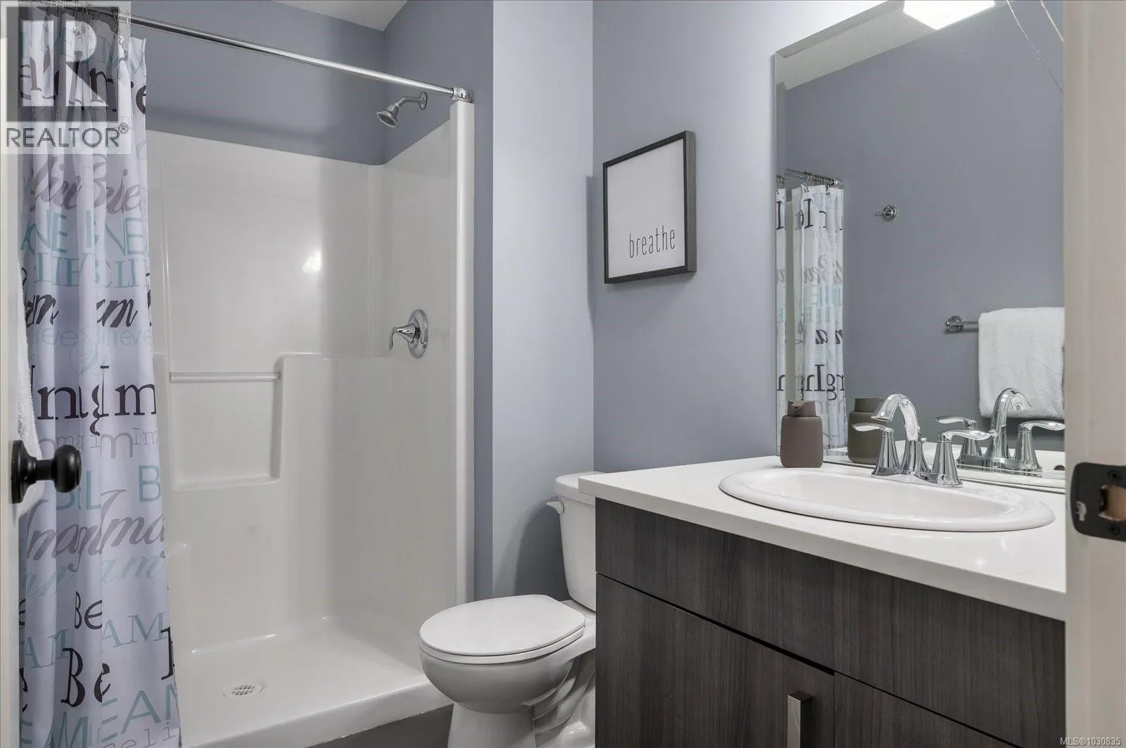 Fabulous detached and updated 3 level newer townhome! Like living in a single family home without any of the home owner hassles. The strata takes care of all exterior maintenance except your yard. Offering almost 2300 Sq.Ft. of living on 3 levels with no shared walls. The main floor offers a bright and airy great room with a large kitchen with quartz counters and a generous pantry. There is also a lovely living/dining room with beautiful fireplace and ocean views. From this level you can also enjoy a deck and fully fenced yard area with patio. Perfect for pets. The lower level features a large bedroom and full bath while the top floor has 3 more bedrooms including a stunning primary and 2 more bathrooms. The floor plan is ideal for a young family or students attending VIU. This small quiet strata community is perfectly situated for convenience to amenities and is a easy walk to Westwood Lake and restaurants. There is also an oversized single garage and lots of parking. Well managed and pets are welcome too! (id:27476)