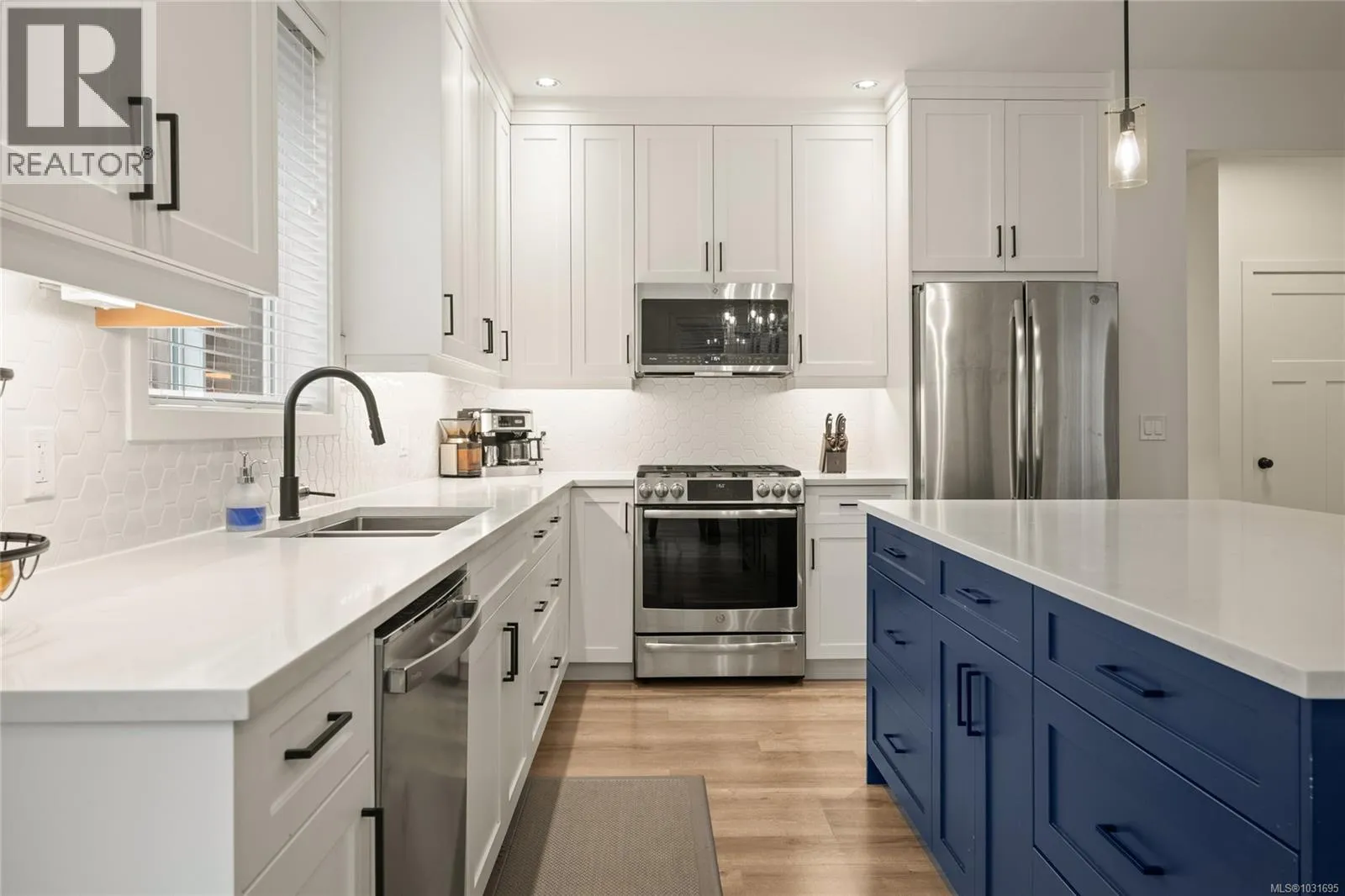 Elegance and craftsmanship define this beautifully finished two-storey home in one of Nanaimoâs most desirable neighbourhoods. Thoughtfully designed for both effortless living and entertaining, the layout offers two generous living spaces ideal for growing families or visiting guests. The main floor is anchored by a stunning kitchen featuring over-height cabinetry, an expansive quartz island, and seamless flow into a bright, airy great room with soaring ceilings, custom built-ins, and a striking fireplace. Itâs a space that feels as good as it looks. Upstairs, youâll find spacious bedrooms, a versatile family room, and a refined primary suite complete with a spa-inspired ensuite; double sinks set in stone counters and a walk-in shower with rainfall head create a true retreat. Built to a noticeably higher standard than many newer homes in this price range, every detail speaks to quality and long-term value. Outside, the low-maintenance yard is perfectly suited for those who prefer weekends spent enjoying life rather than yard workâideal for downsizers, busy professionals, or families on the go. A single garage and remaining home warranty add further peace of mind. A rare opportunity to own a high-quality, move-in ready home without compromise. Detailed information package available. Measurements approximate; verify if important. (id:27476)
