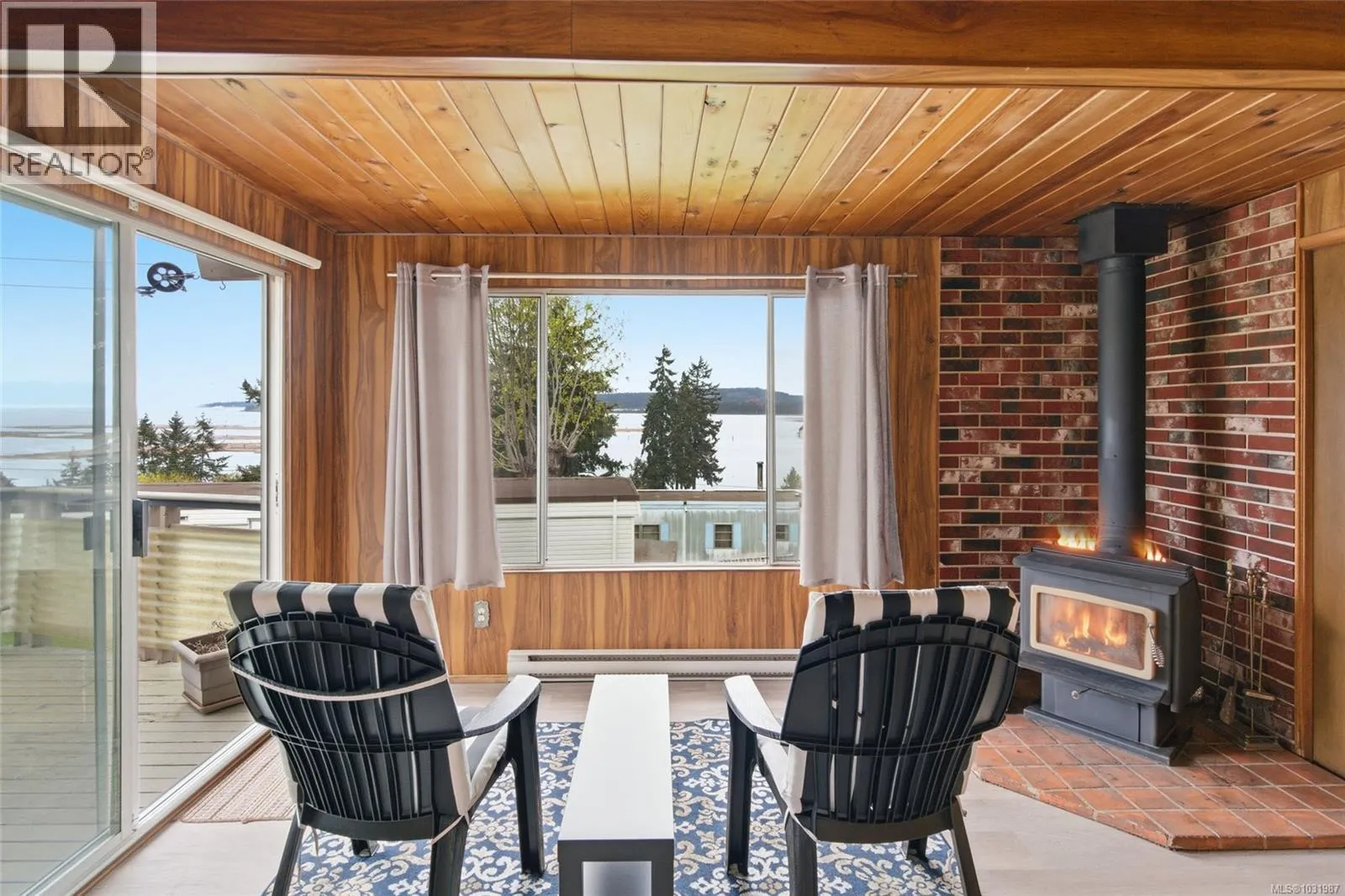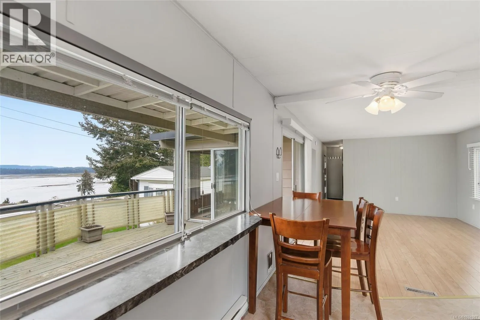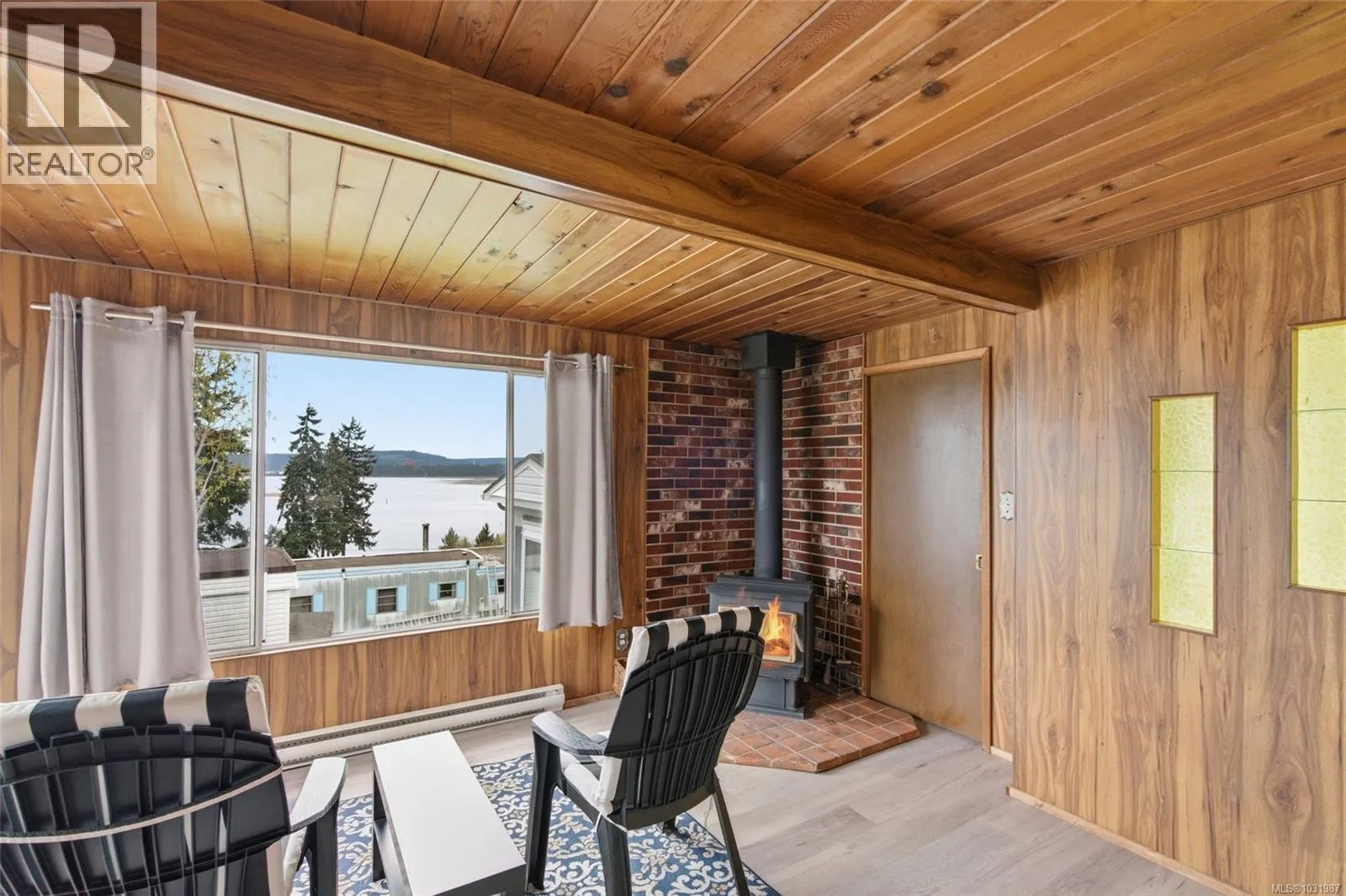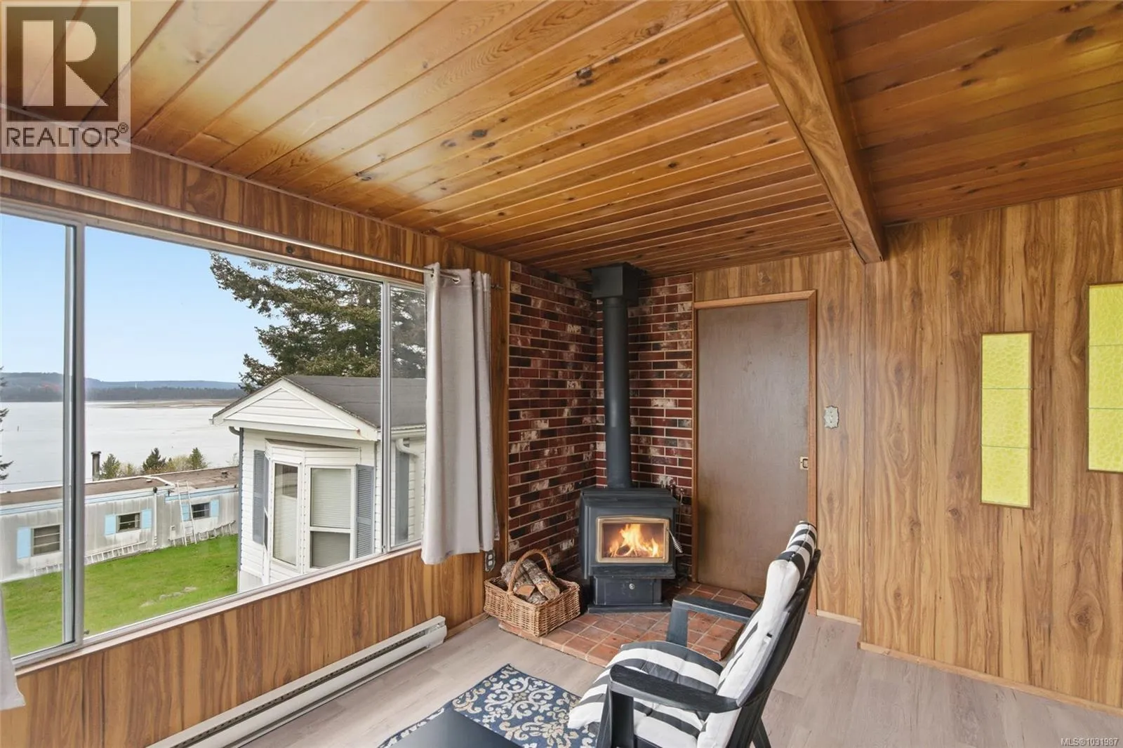 Big ocean views from one of the best locations in Petroglyph Mobile Home Park! This well-kept 2 bedroom, 1 bath home offers a bright open layout plus a spacious family room off the living area, complete with a cozy wood-burning fireplace and large windows for plenty of natural light. Step out to the expansive rear deck and take in the stunning views of Nanaimo Harbour and Gabriola Island. Numerous updates include a heat pump with air conditioning, laminate flooring, fresh paint, resurfaced kitchen cabinets, newer countertops, tiled shower surround, and a newer roof. A fantastic opportunity to enjoy comfortable, affordable living with an incredible view. Located close to Southgate Shopping Centre, this home offers proximity to shopping, restaurants, parks, & is close to all the amenities of downtown Nanaimo, making it an excellent choice for convenient living. Measurements are approximate; verify if important. (id:27476)