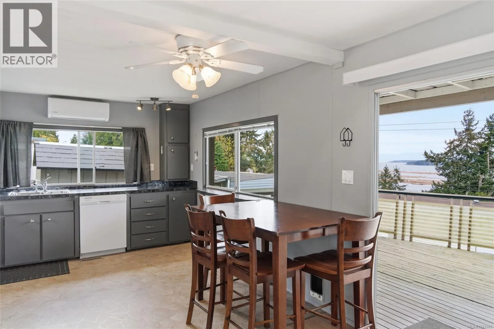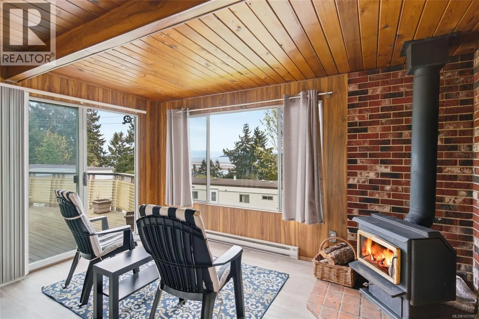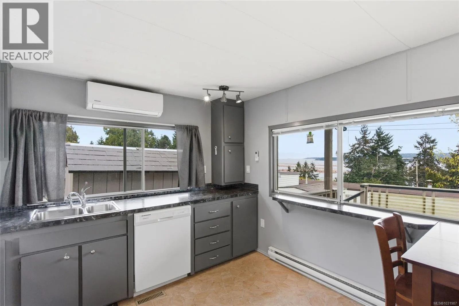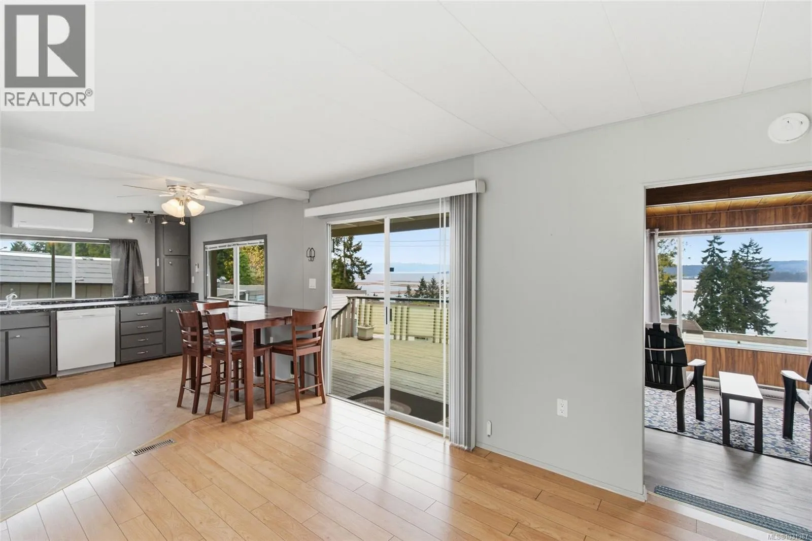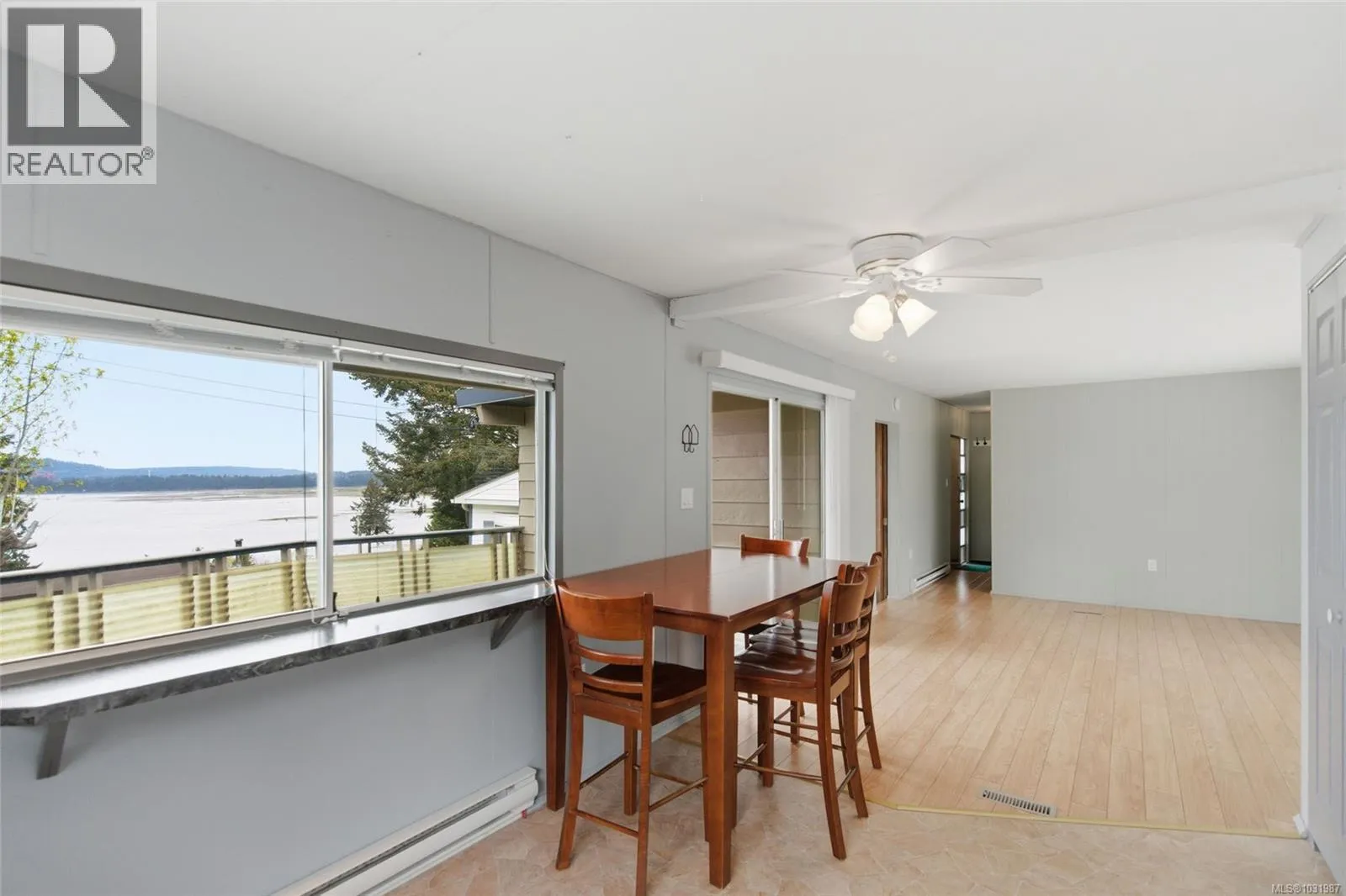 Big ocean views from one of the best locations in Petroglyph Mobile Home Park! This well-kept 2 bedroom, 1 bath home offers a bright open layout plus a spacious family room off the living area, complete with a cozy wood-burning fireplace and large windows for plenty of natural light. Step out to the expansive rear deck and take in the stunning views of Nanaimo Harbour and Gabriola Island. Numerous updates include a heat pump with air conditioning, laminate flooring, fresh paint, resurfaced kitchen cabinets, newer countertops, tiled shower surround, and a newer roof. A fantastic opportunity to enjoy comfortable, affordable living with an incredible view. Located close to Southgate Shopping Centre, this home offers proximity to shopping, restaurants, parks, & is close to all the amenities of downtown Nanaimo, making it an excellent choice for convenient living. Measurements are approximate; verify if important. (id:27476)