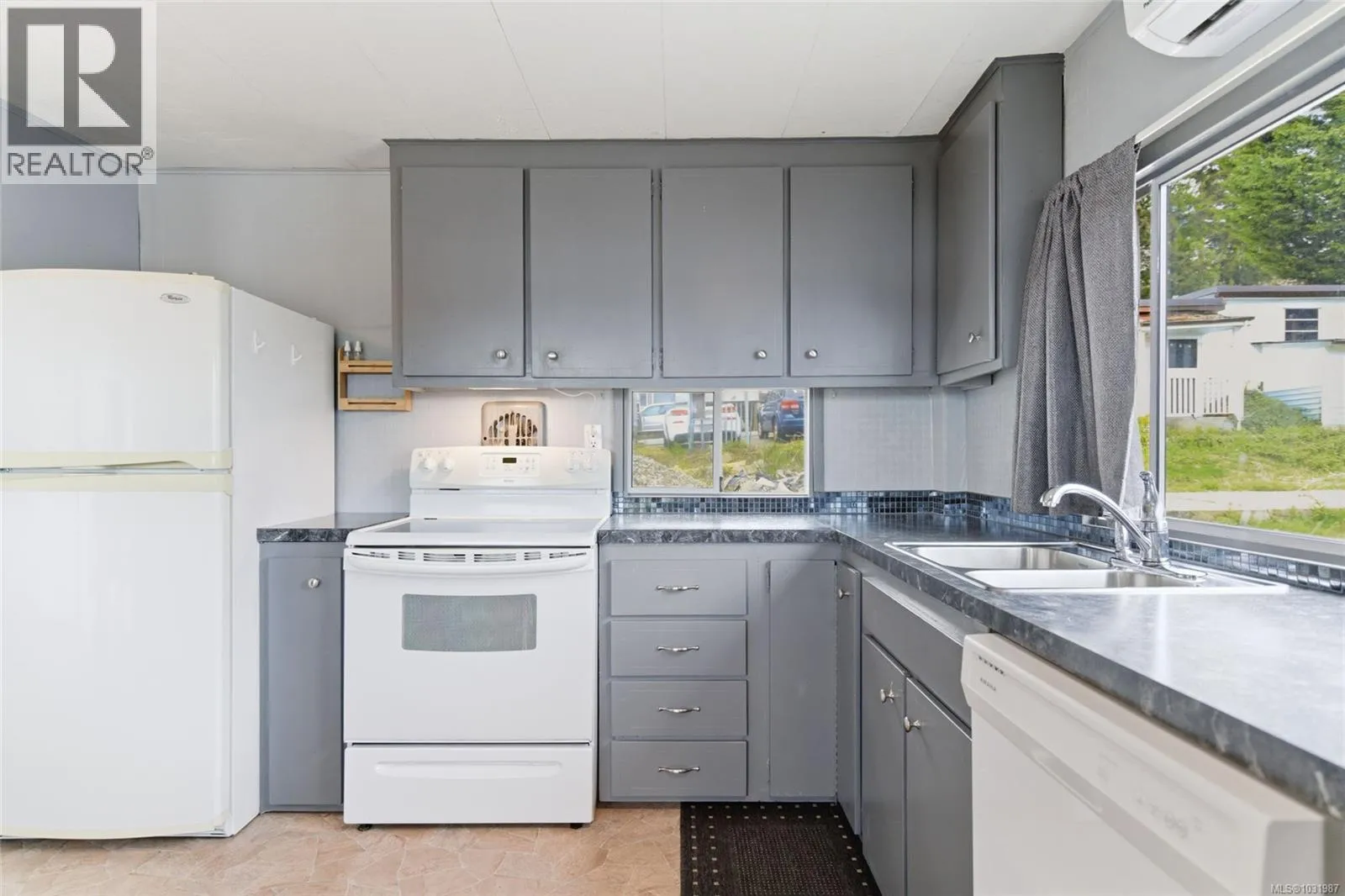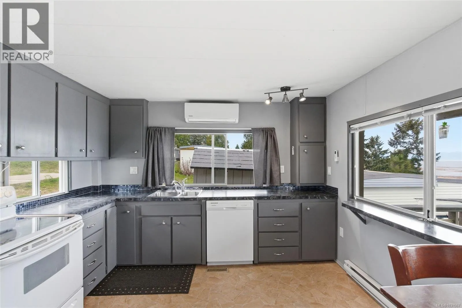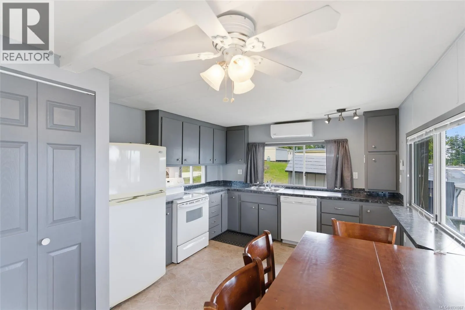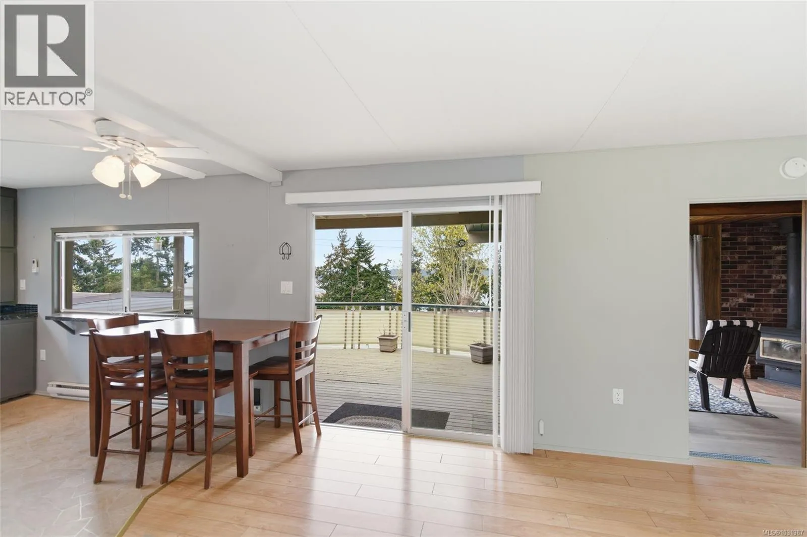 Big ocean views from one of the best locations in Petroglyph Mobile Home Park! This well-kept 2 bedroom, 1 bath home offers a bright open layout plus a spacious family room off the living area, complete with a cozy wood-burning fireplace and large windows for plenty of natural light. Step out to the expansive rear deck and take in the stunning views of Nanaimo Harbour and Gabriola Island. Numerous updates include a heat pump with air conditioning, laminate flooring, fresh paint, resurfaced kitchen cabinets, newer countertops, tiled shower surround, and a newer roof. A fantastic opportunity to enjoy comfortable, affordable living with an incredible view. Located close to Southgate Shopping Centre, this home offers proximity to shopping, restaurants, parks, & is close to all the amenities of downtown Nanaimo, making it an excellent choice for convenient living. Measurements are approximate; verify if important. (id:27476)