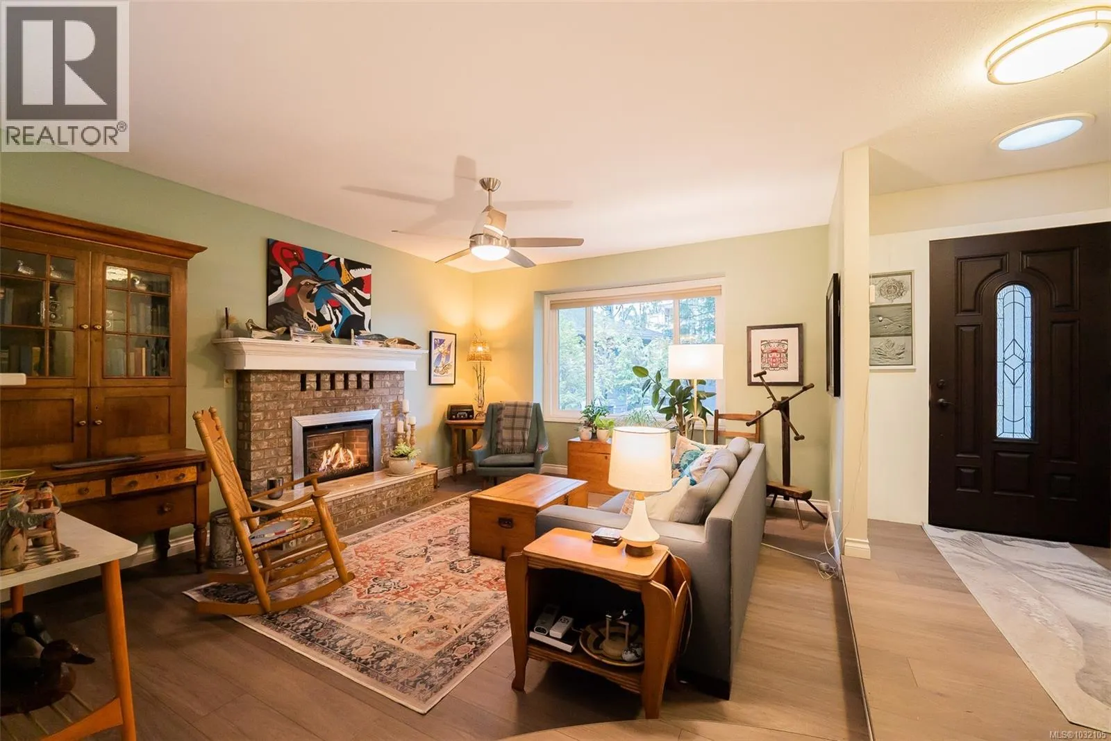 Surrounded by peaceful, natural beauty, this home is just steps from Long Lake and nearby walking trails. Situated on a generous 0.2-acre lot, this updated 3-bedroom, 2-bath rancher features ample storage, a fully fenced yard with lush gardens, and a large patio designed for entertaining. A heated double garage with 12-foot ceilings offers the perfect space for hobbies, projects, or additional storage. From summer barbecues to relaxing evenings immersed in nature, the outdoor space offers something for everyone. Inside, the home showcases a custom kitchen with quartz countertops, refreshed bathrooms, new windows, and durable HardiPlank siding. A natural gas fireplace provides cozy warmthâone of the few properties in the neighbourhood with a gas connection. Ideally located just minutes from Nanaimo North Town Centre, Woodgrove, Country Club, Oliver Woods, and Nanaimo Golf Club, this property combines a tranquil setting with convenient access to shopping, dining, and recreation. (id:27476)
