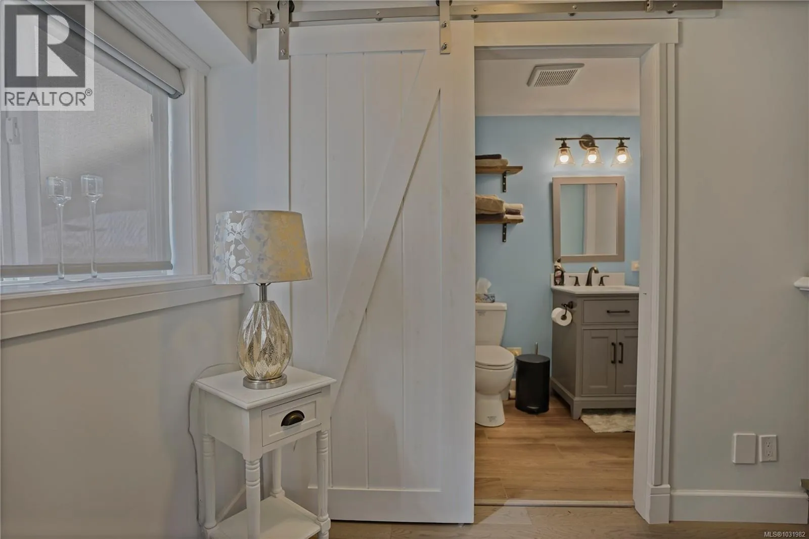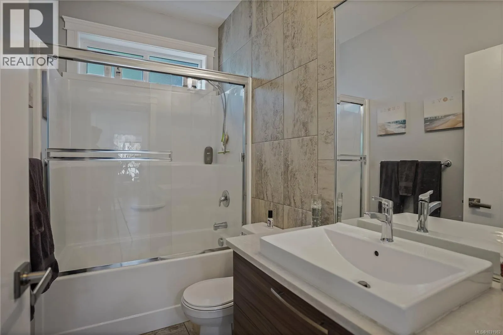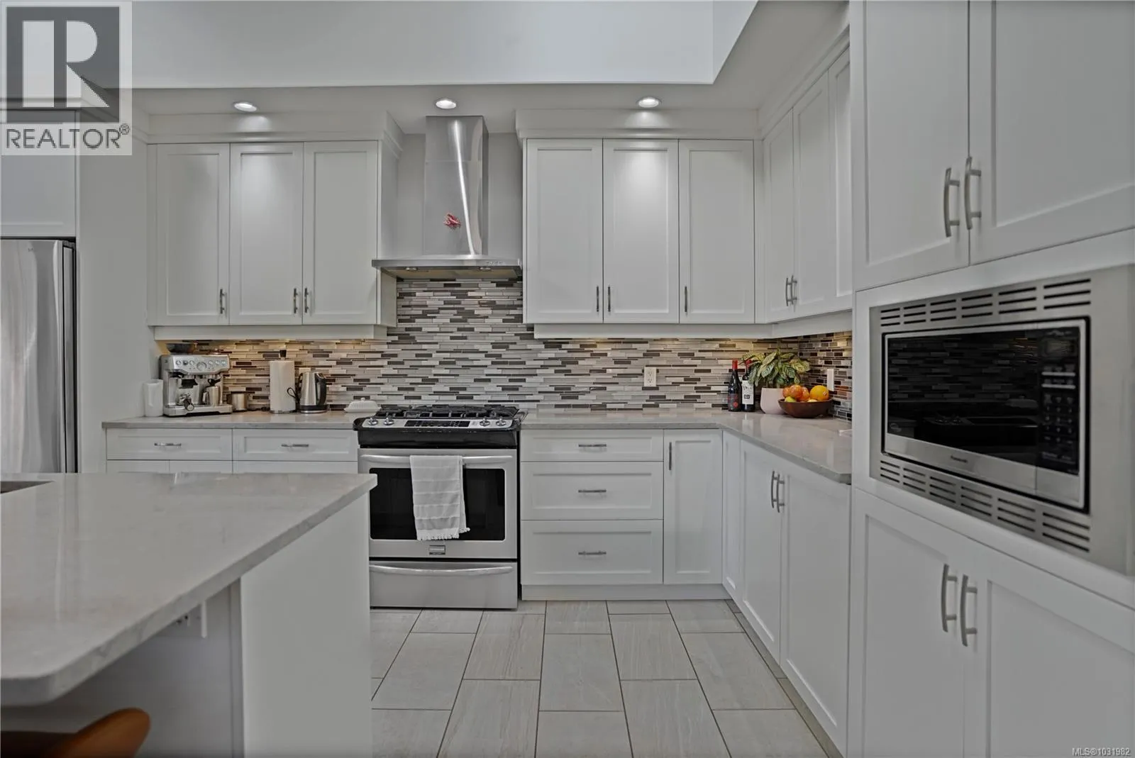 This stunning home is perfectly placed near the end of a quiet no-thru road in the sought-after Rockwood Heights of Departure Bay. Surrounded by mature cedar and arbutus trees, this private, sun-filled property blends natural beauty with contemporary West Coast style in a central, convenient location. This thoughtfully crafted 3 bed/3 bath home features an 1800 sqft main level of open-concept, single level living and is complemented by a versatile lower-level flex space, ideal for a media room or gym. Vaulted ceilings with skylights and expansive windows create a bright, airy interior. The modern kitchen includes a large island and sleek cabinetry, perfect for entertaining. Quality finishes include engineered hardwood, heated tile floors, natural gas fireplace and an efficient heat pump for year round comfort. Exterior highlights include Hardie Plank siding, cedar and stone accents, membrane roof, and hidden gutters, plus ample storage and crawl space. Showings by appointment only. (id:27476)