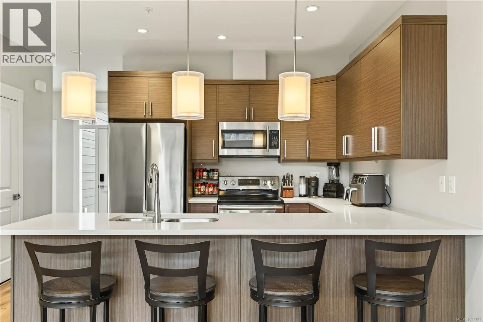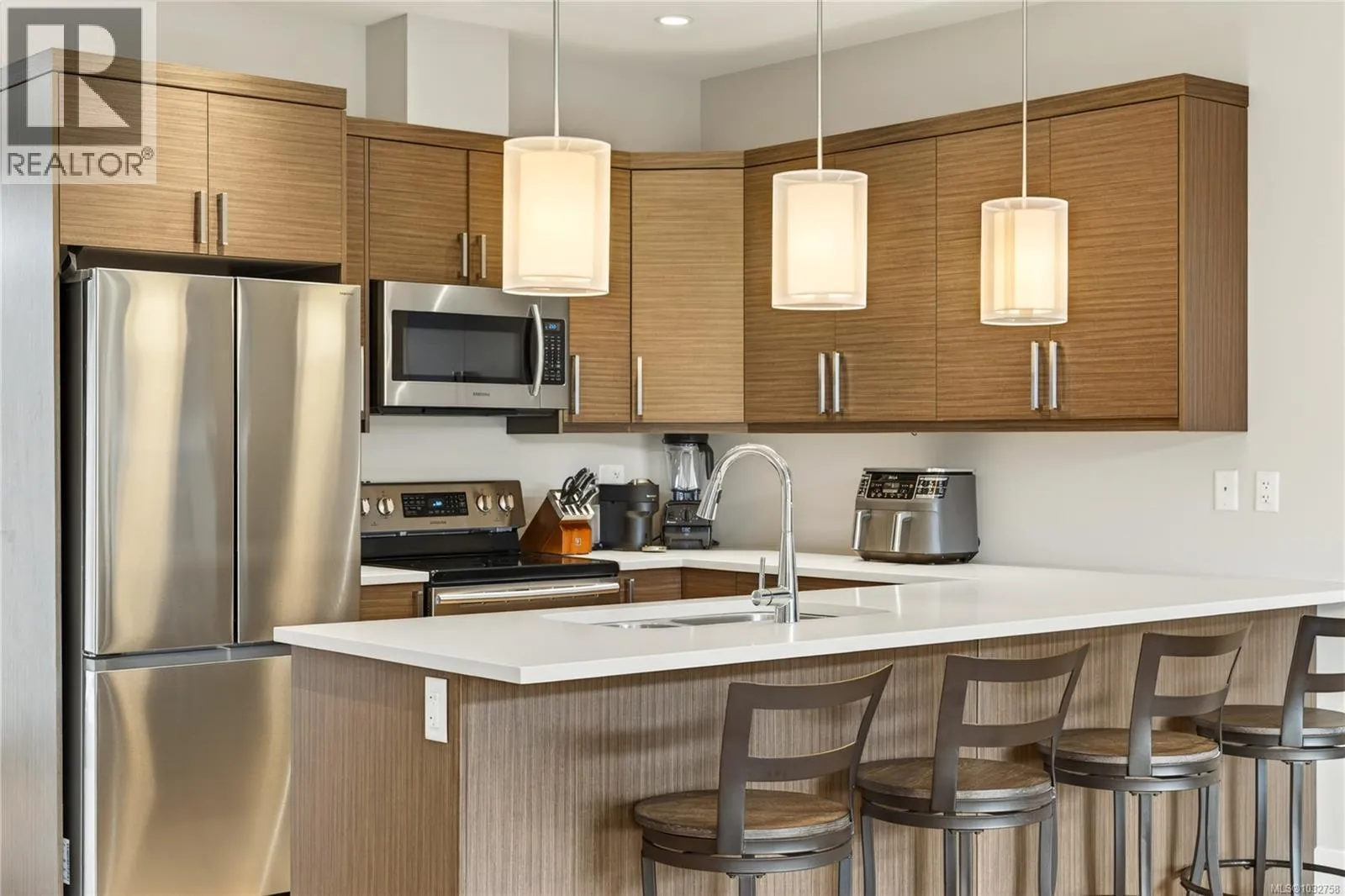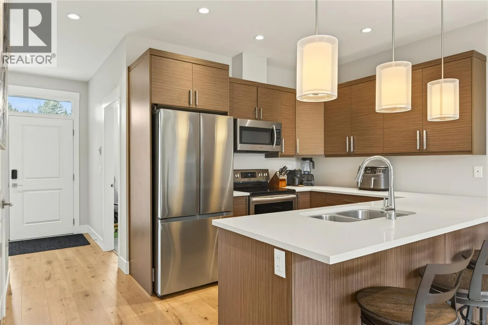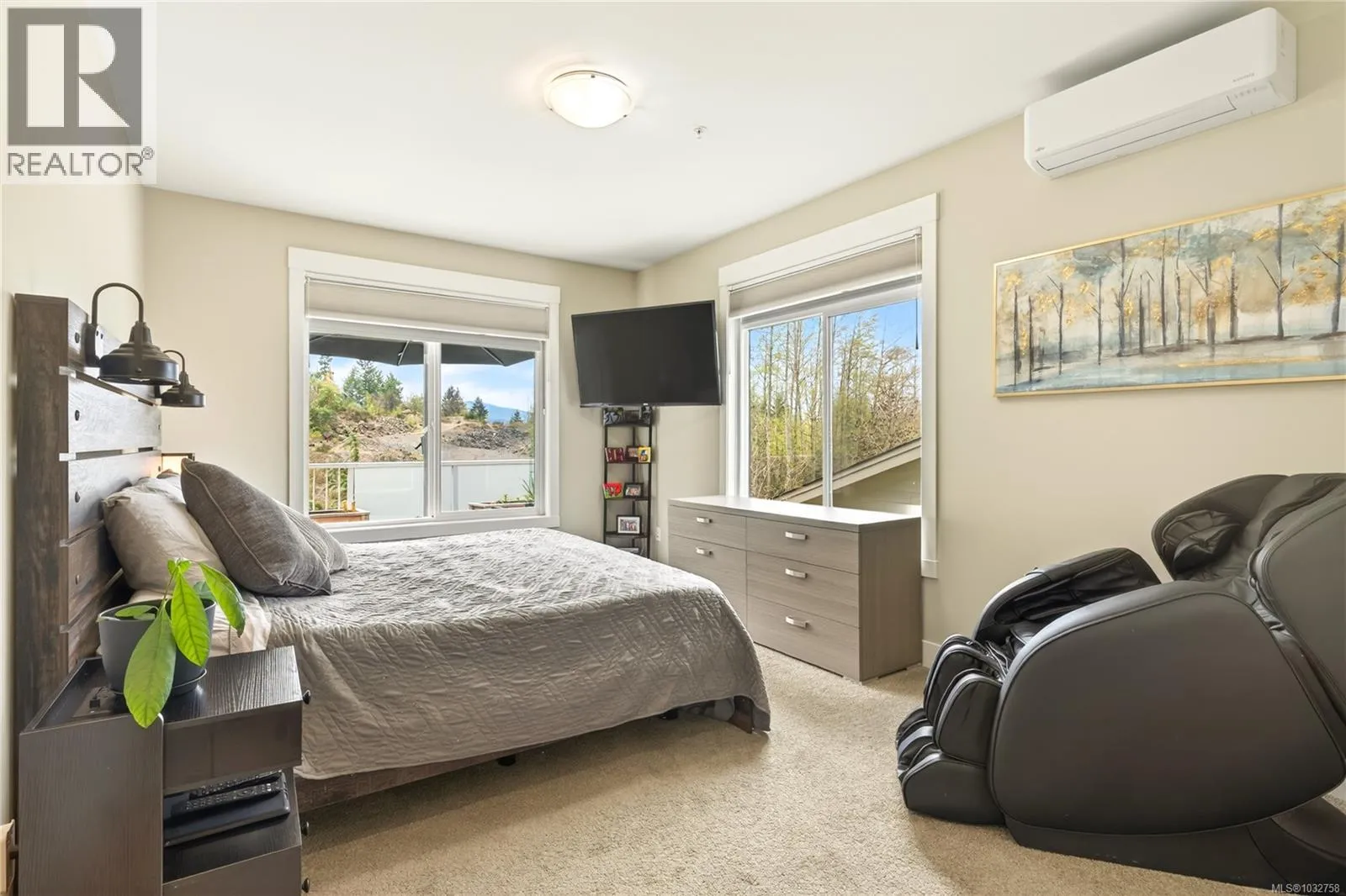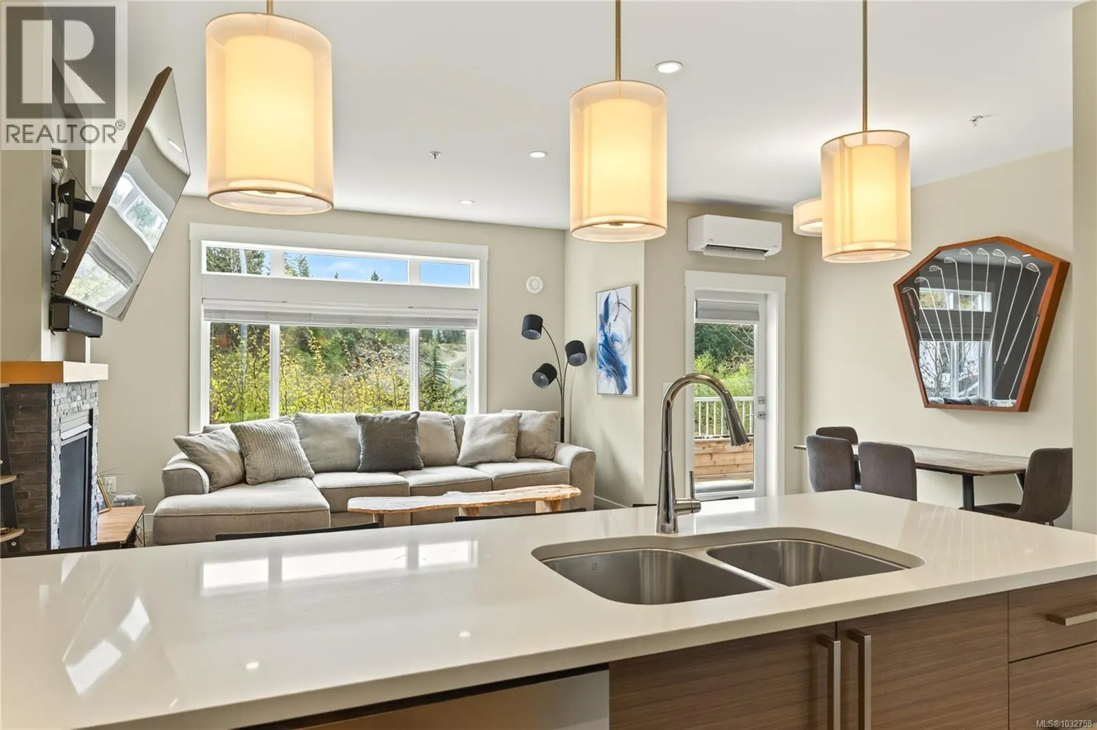 Modern comfort meets West Coast lifestyle in this stylish 2 bed + den, 2 bath upper townhouse in desirable Linley Valley. Built in 2019, this home offers 9â ceilings and a bright, open-concept layout that captures beautiful mountain views and a peaceful natural setting. The contemporary kitchen features quartz countertops, stainless steel appliances, and clean finishes, flowing seamlessly into the living and dining areas. Comfort is covered year round with a brand new multi-zone heat pump providing efficient heating and air conditioning, along with the convenience of an on-demand hot water system. Step outside to enjoy two private decks, perfect for morning coffee or relaxing after a day on the nearby trails. Located on a quiet no-through road, this home offers a true Pacific Northwest feel with access to some of the areaâs best hiking and biking right at your doorstep. Pet friendly with dogs and cats welcome, and complete with two parking stalls and a storage locker. Just minutes to Rutherford Mall, coffee shops, and everyday amenities, this is a rare opportunity to own in one of Nanaimoâs most sought after neighbourhoods. (id:27476)