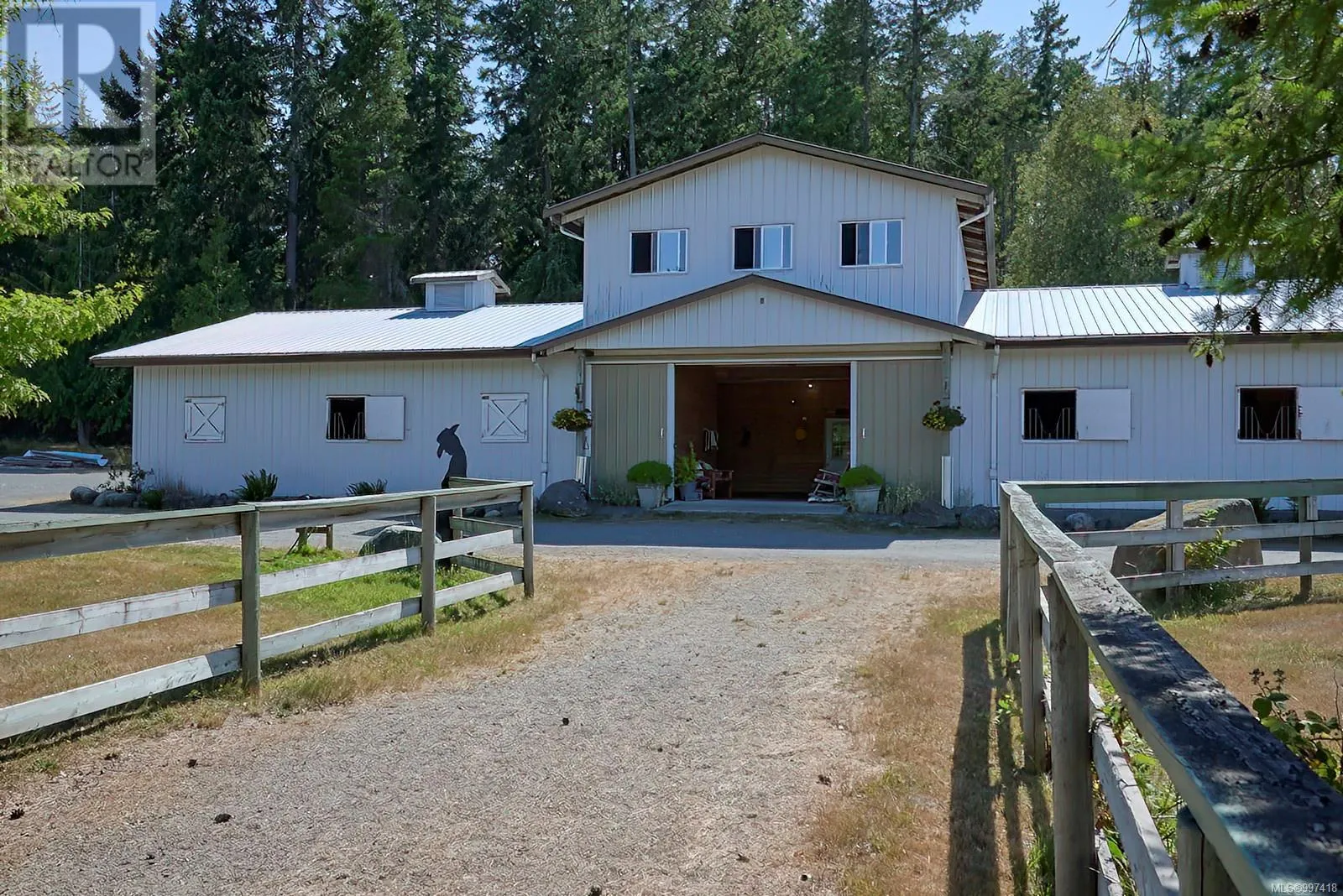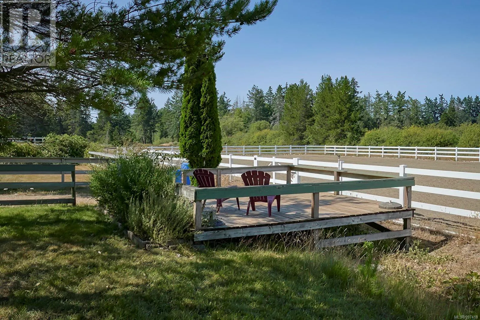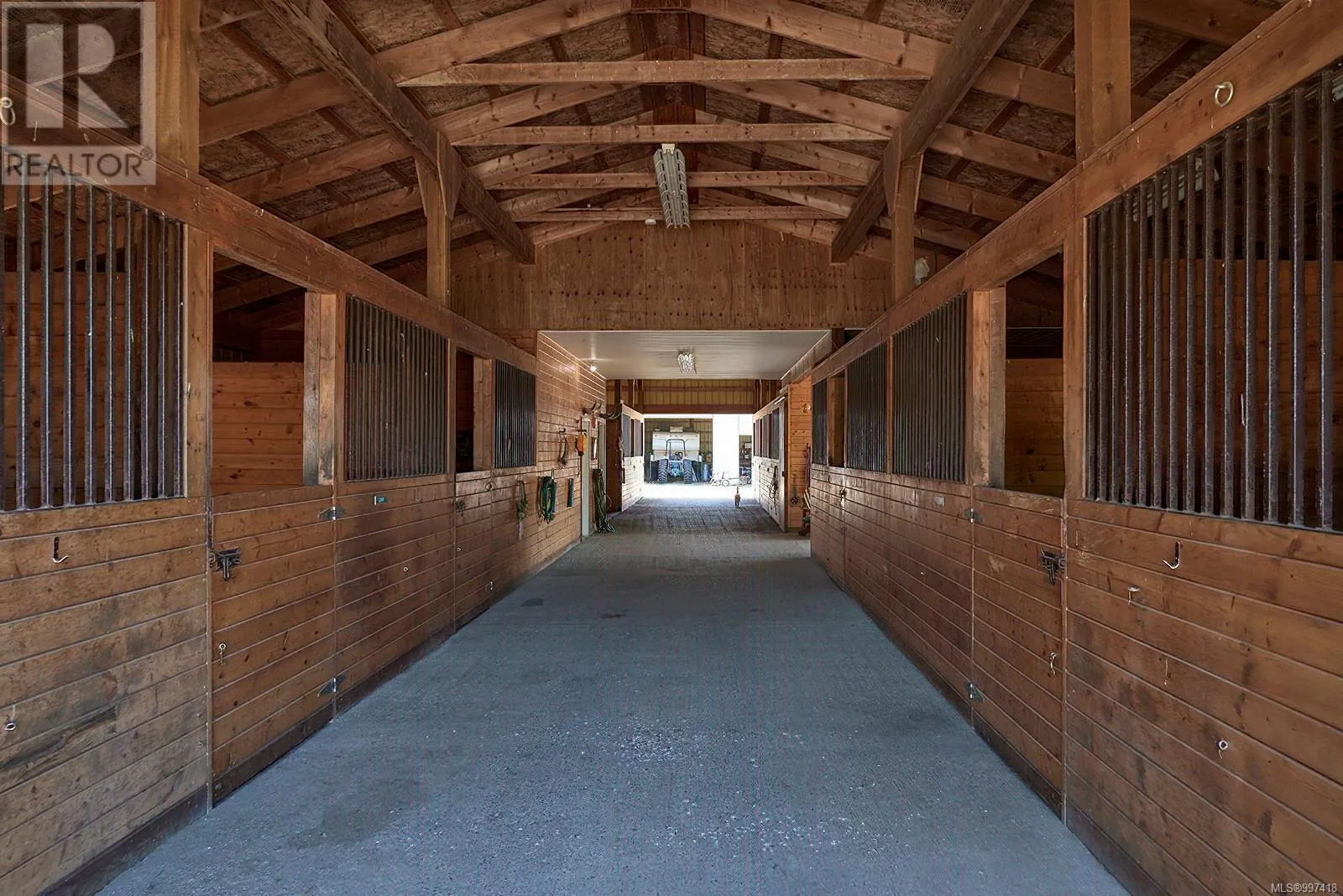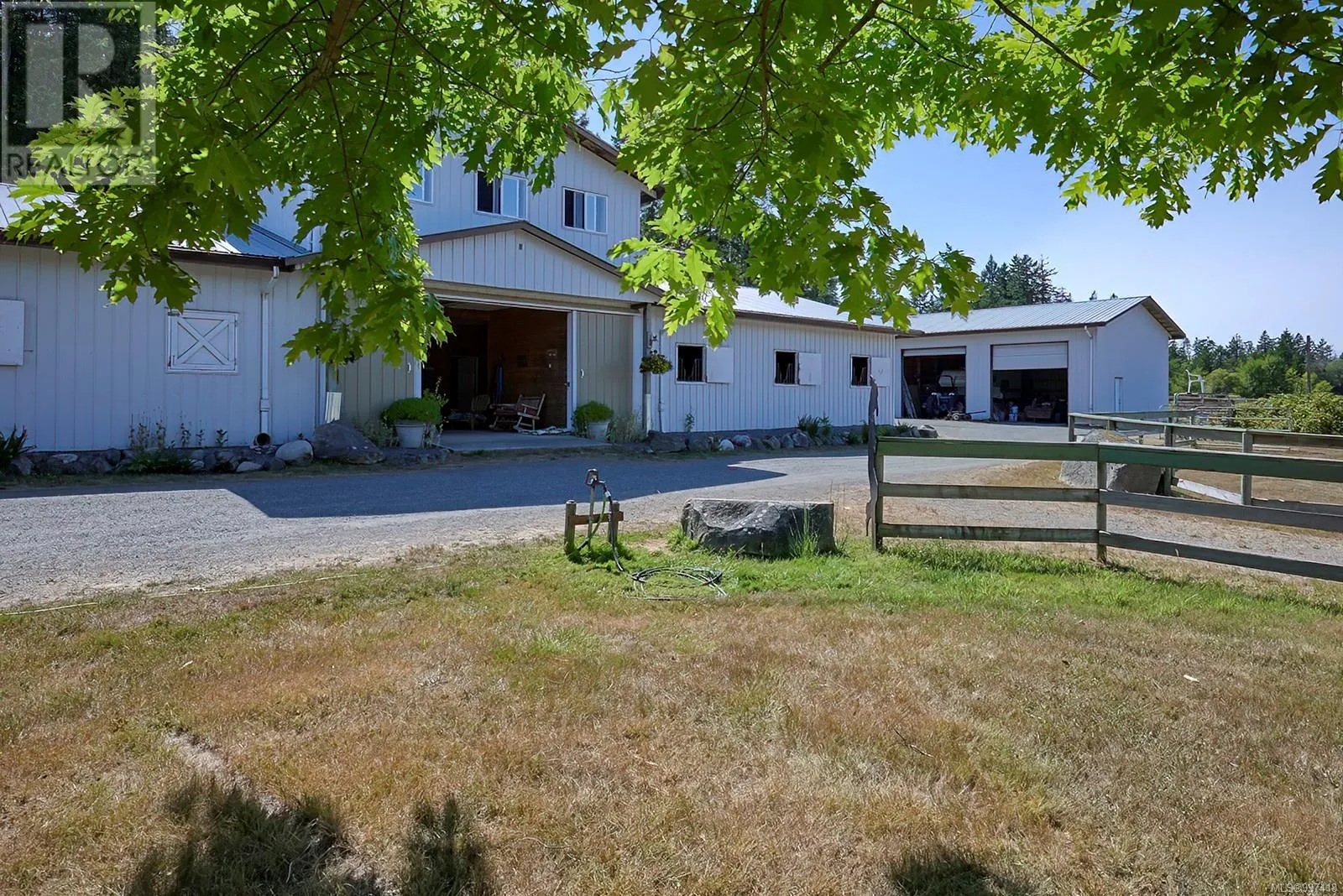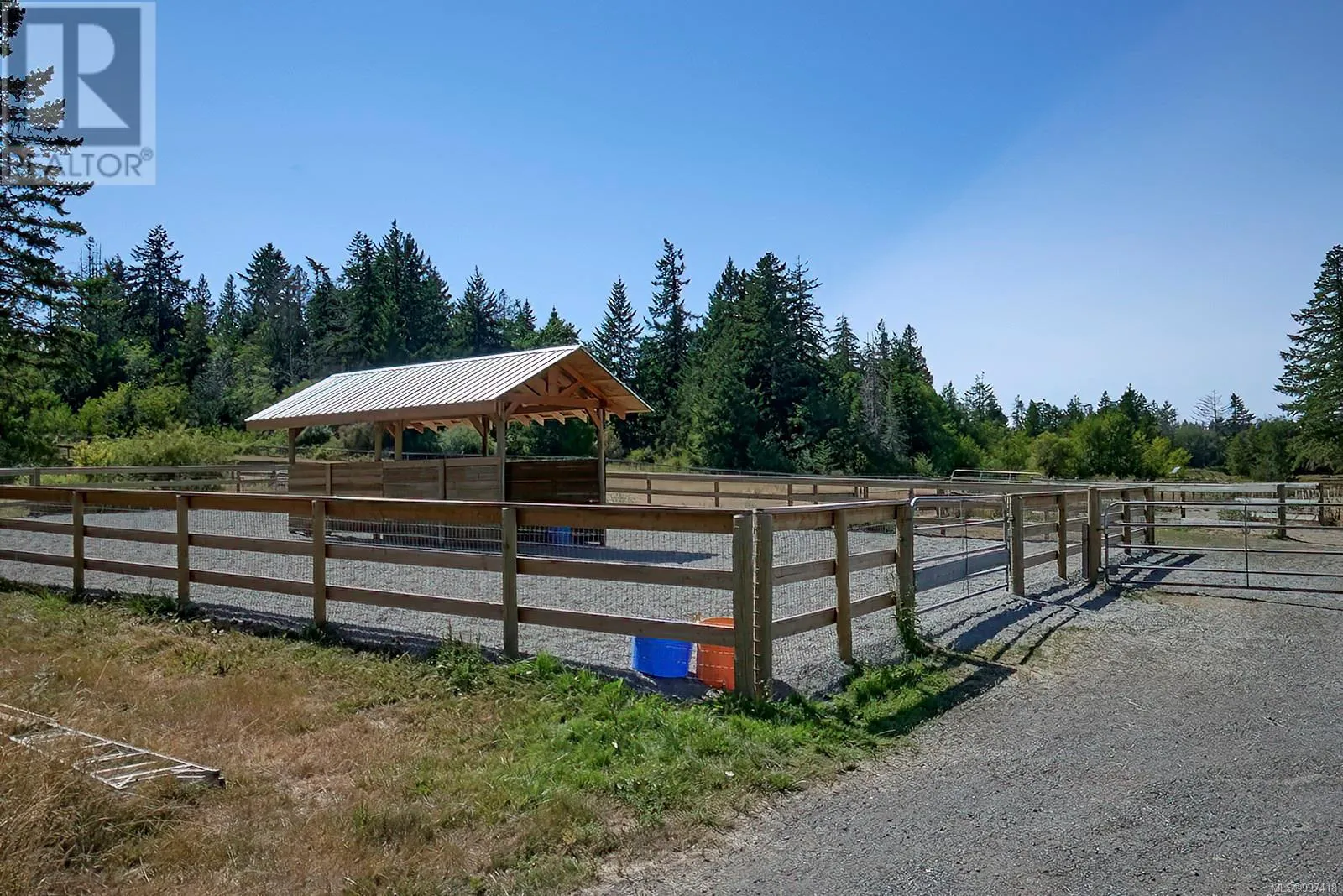Wonderful 21+ acre, perfectly appointed Equestrian Estate/farm in the heart of highly desirable Nanoose Bay-central Vancouver Island location. The beautifully updated/renovated 3 bed, 3 bath home + office includes the 3rd bedroom/in-law suite downstairs, a heat pump with a forced air furnace + woodstove +automatic generator. The private landscaped yard has numerous trees, some of which are fruit trees, flowers+ water feature. The well built 11 stall barn includes: a foaling stall, heated tack room, laundry room, feed room + wash stall + caretaker suite above. The barn has a metal roof and siding for longevity. Outbuildings include: an oversized double garage, log workshop, 1 bedroom (bunkie) guest cabin, large metal equipment building with separate hay & sawdust storage + Quonset hut + a fully serviced RV site, 100x200 sand riding ring w/ sprinklers, track system, pea gravel paddocks with timber framed shelters + several pasture areas. Outstanding location near: marina, championship golf course, school, shopping, library, extensive riding/walking trails & more + easy highway access. This truly is a gem. All measurements are approximate and should be verified if deemed important. Excluded from the Foreign buyer's ban. (id:27476)