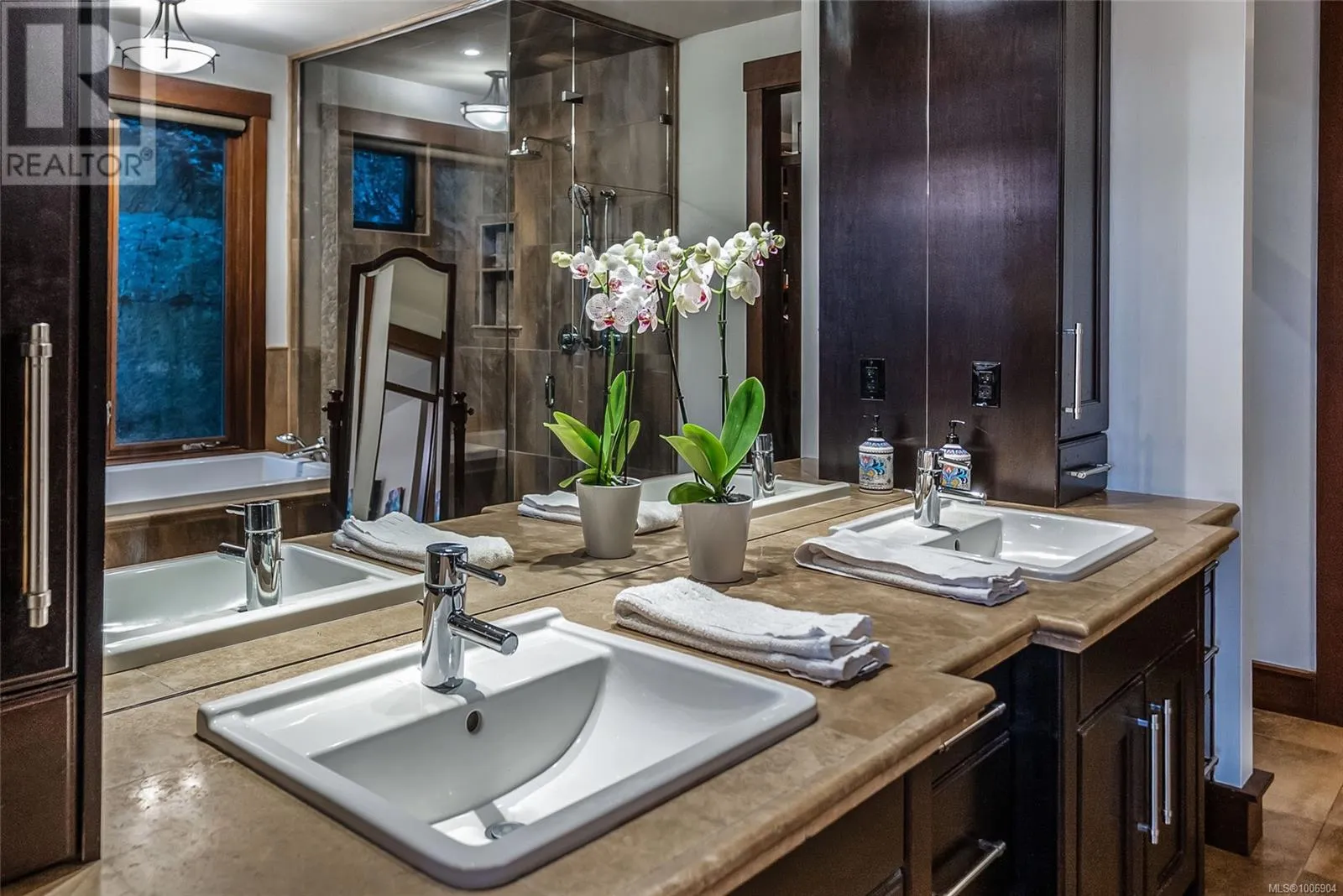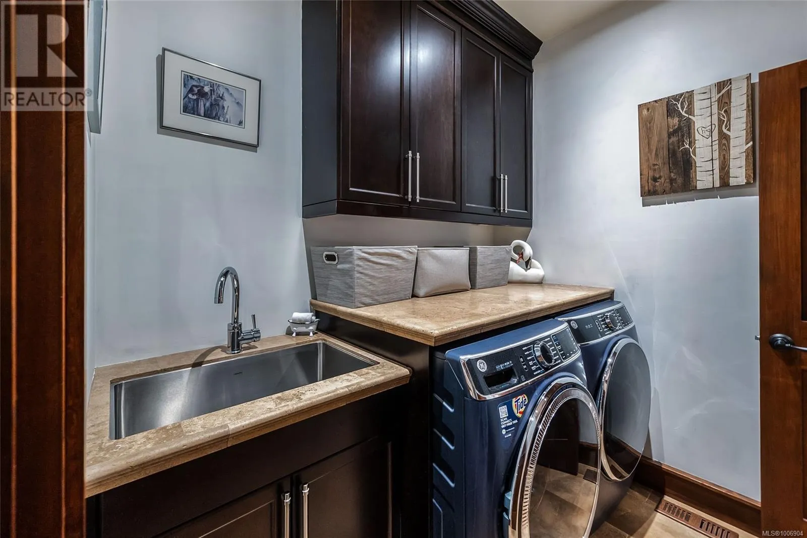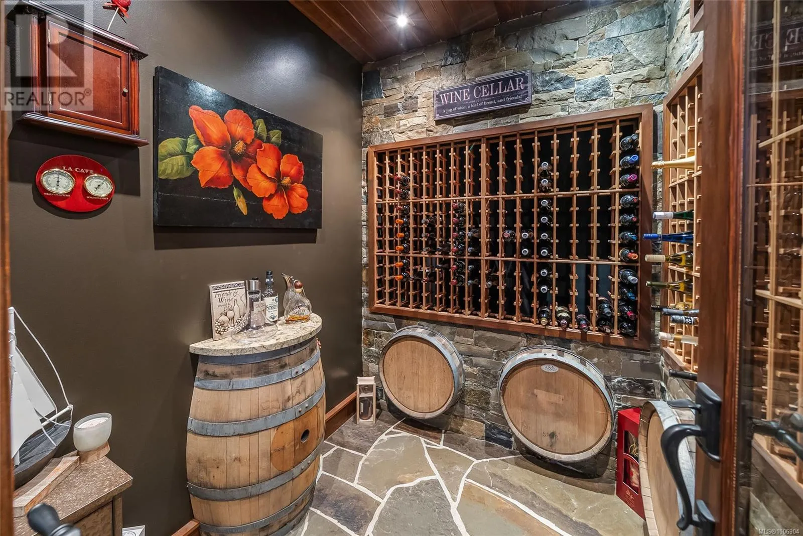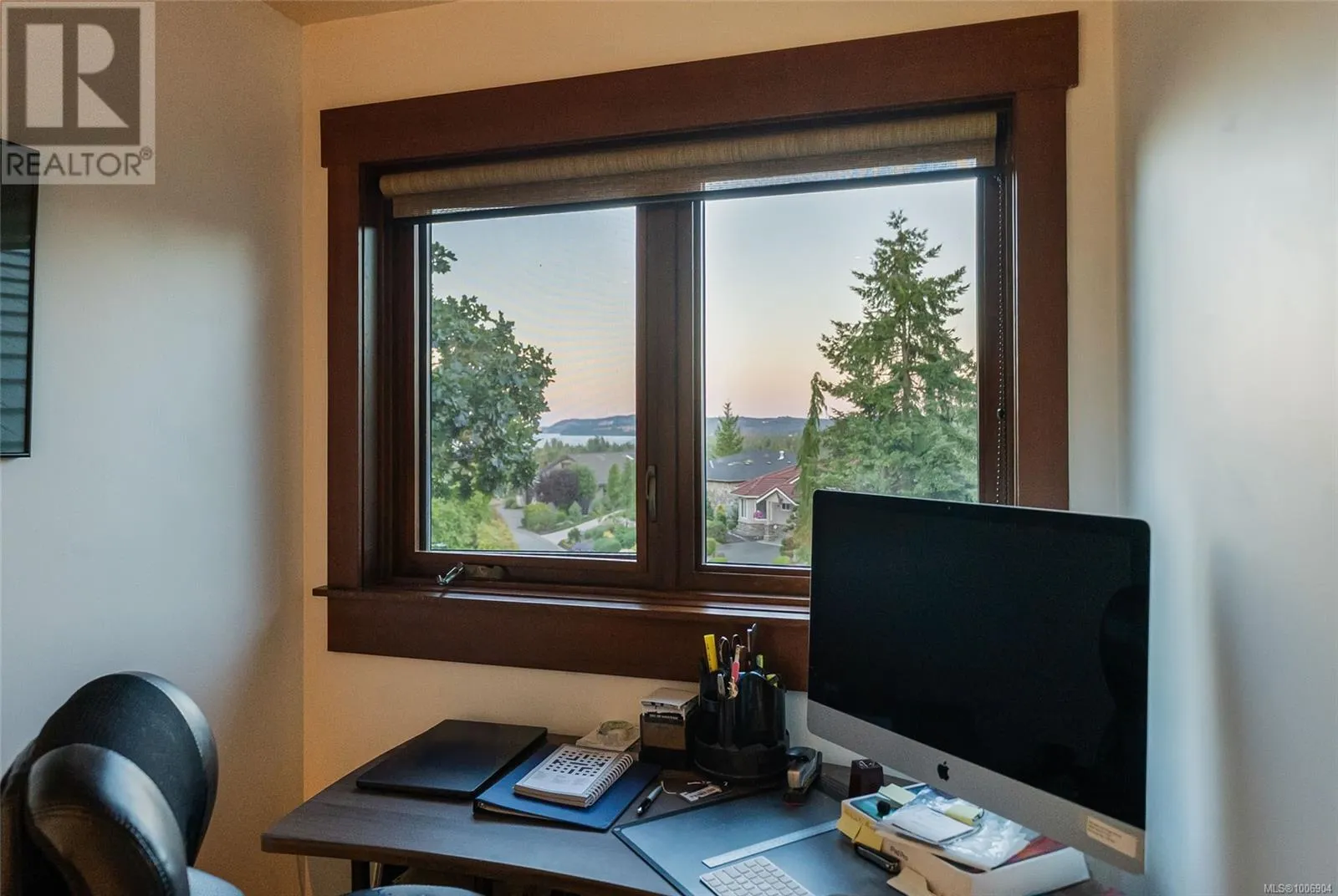 Incomparable Fairwinds Executive Home. This is luxury West Coast living at its finest! Don't miss this stunning 3 Bed/4 Bath Executive Home on a sun-soaked and private .32-acre lot with a touch of Zen in the presentation. This finely crafted residence boasts timeless West Coast architecture, a larger-than-life floor plan across 3 levels, numerous upgrades, green energy efficiency, an ensuited Guest Bedroom, sunny outdoor living space, and an abundance of extra features such as soaring ceilings, 3 dishwashers, and 4 fireplaces. Oversized windows and skylights bathe the interior in natural light while framing views stretching over Fairwinds to the distant Strait of Georgia. This captivating home enjoys a prime location in prestigious 'Schooner Ridge', directly beside a stretch of untouched forestland around Dolphin Lake. Easy access to a host of outdoor activities, and a short drive to Fairwinds renowned golf course, a waterfront village with a restaurant, a Rec Center, shopping and amenities. Tucked at the end of a no-thru road, this elegant home features a gated entry and a dramatic drive-under design beneath a cantilevered Kitchen. A covered porch welcomes you into a grand tiled Foyer with a two-storey ceiling and skylights. The Formal Living Room boasts wood floors, a cathedral ceiling, ocean glimpses, a wood fireplace, and doors to a Wine Room. The Chefâs Kitchen has granite counters, top-tier appliances, and a Butlerâs Pantry, while the Dining Room shares a 2-sided gas fireplace with a private deck with forest & ocean views. The main level hosts a luxurious Primary Suite, Powder Room, Laundry Room, and Double Garage with EV charger. Upstairs is a Games/Media Room with a full media system and wet bar, a Guest Suite, 4-pc Bath, and Infrared Sauna. The lower level offers an Office/Bedroom/Den with a fireplace, Bath and storage. Luxurious extra features and a prime location just 20-mins to Parksville & North Nanaimo shopping & amenities. Visit our website for more. (id:27476)