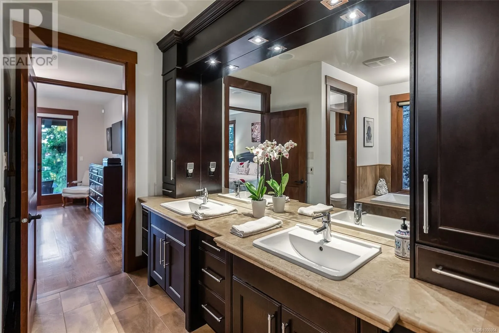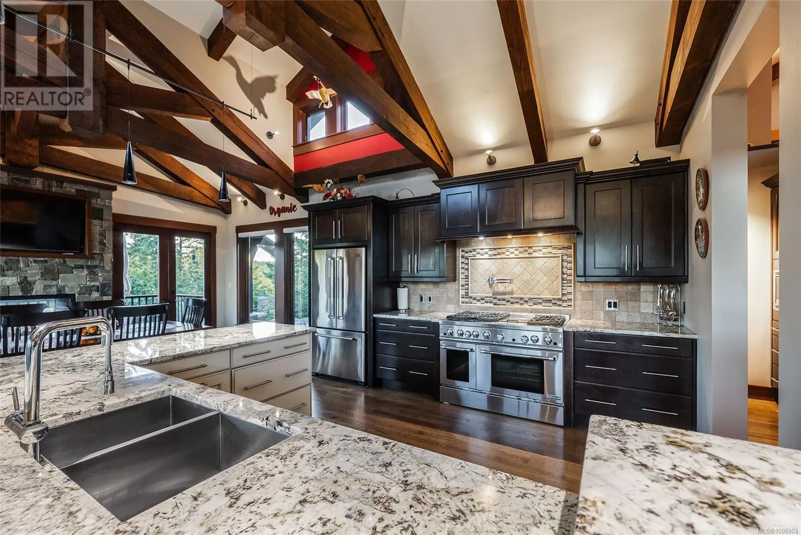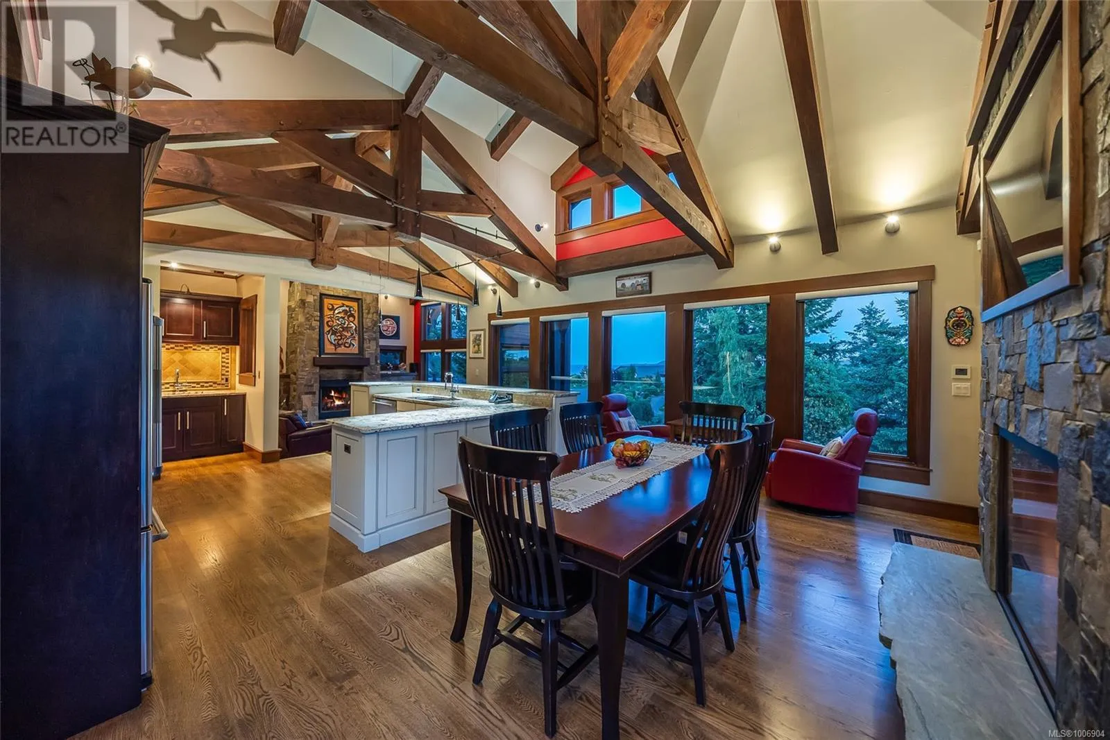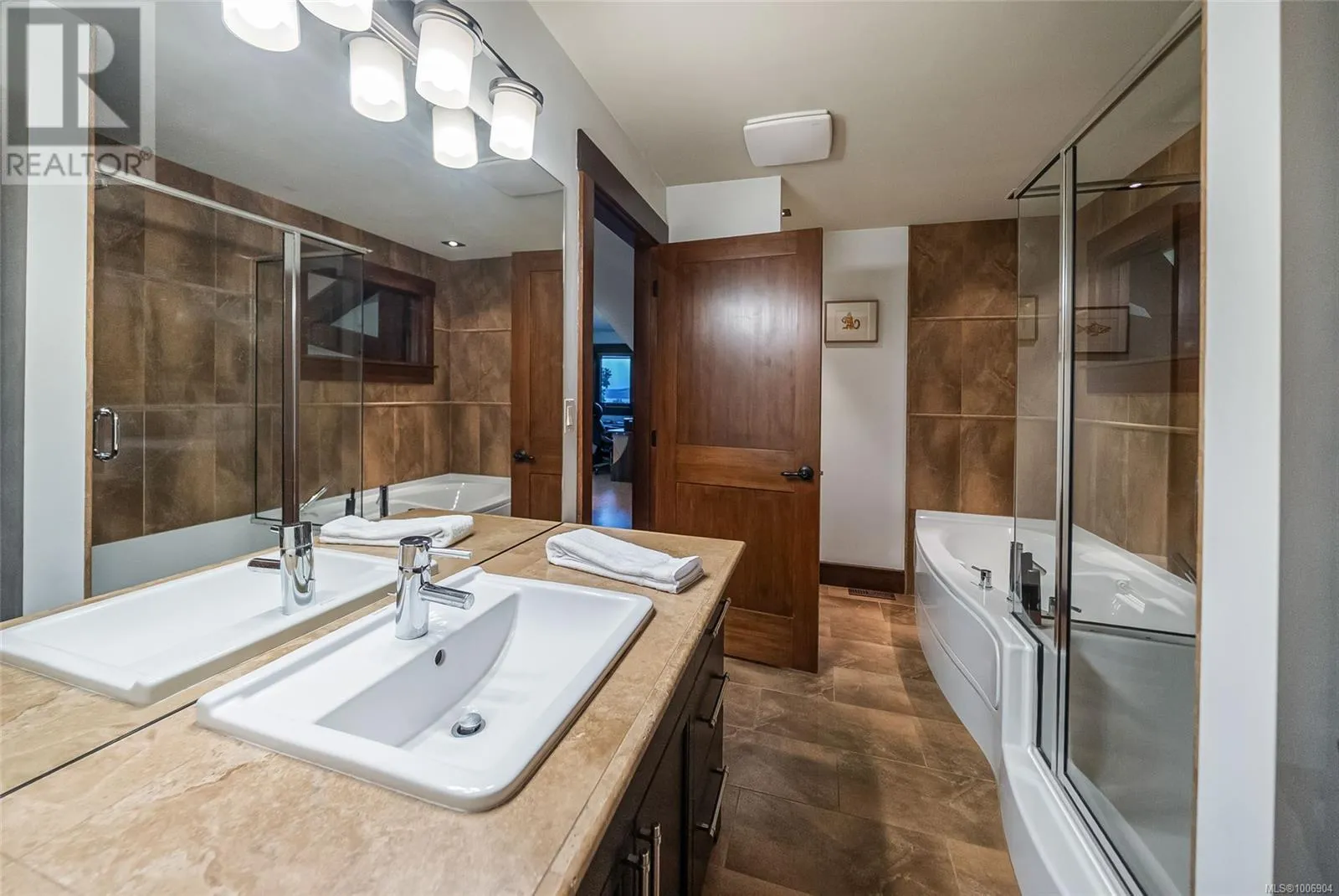 Incomparable Fairwinds Executive Home. This is luxury West Coast living at its finest! Don't miss this stunning 3 Bed/4 Bath Executive Home on a sun-soaked and private .32-acre lot with a touch of Zen in the presentation. This finely crafted residence boasts timeless West Coast architecture, a larger-than-life floor plan across 3 levels, numerous upgrades, green energy efficiency, an ensuited Guest Bedroom, sunny outdoor living space, and an abundance of extra features such as soaring ceilings, 3 dishwashers, and 4 fireplaces. Oversized windows and skylights bathe the interior in natural light while framing views stretching over Fairwinds to the distant Strait of Georgia. This captivating home enjoys a prime location in prestigious 'Schooner Ridge', directly beside a stretch of untouched forestland around Dolphin Lake. Easy access to a host of outdoor activities, and a short drive to Fairwinds renowned golf course, a waterfront village with a restaurant, a Rec Center, shopping and amenities. Tucked at the end of a no-thru road, this elegant home features a gated entry and a dramatic drive-under design beneath a cantilevered Kitchen. A covered porch welcomes you into a grand tiled Foyer with a two-storey ceiling and skylights. The Formal Living Room boasts wood floors, a cathedral ceiling, ocean glimpses, a wood fireplace, and doors to a Wine Room. The Chefâs Kitchen has granite counters, top-tier appliances, and a Butlerâs Pantry, while the Dining Room shares a 2-sided gas fireplace with a private deck with forest & ocean views. The main level hosts a luxurious Primary Suite, Powder Room, Laundry Room, and Double Garage with EV charger. Upstairs is a Games/Media Room with a full media system and wet bar, a Guest Suite, 4-pc Bath, and Infrared Sauna. The lower level offers an Office/Bedroom/Den with a fireplace, Bath and storage. Luxurious extra features and a prime location just 20-mins to Parksville & North Nanaimo shopping & amenities. Visit our website for more. (id:27476)