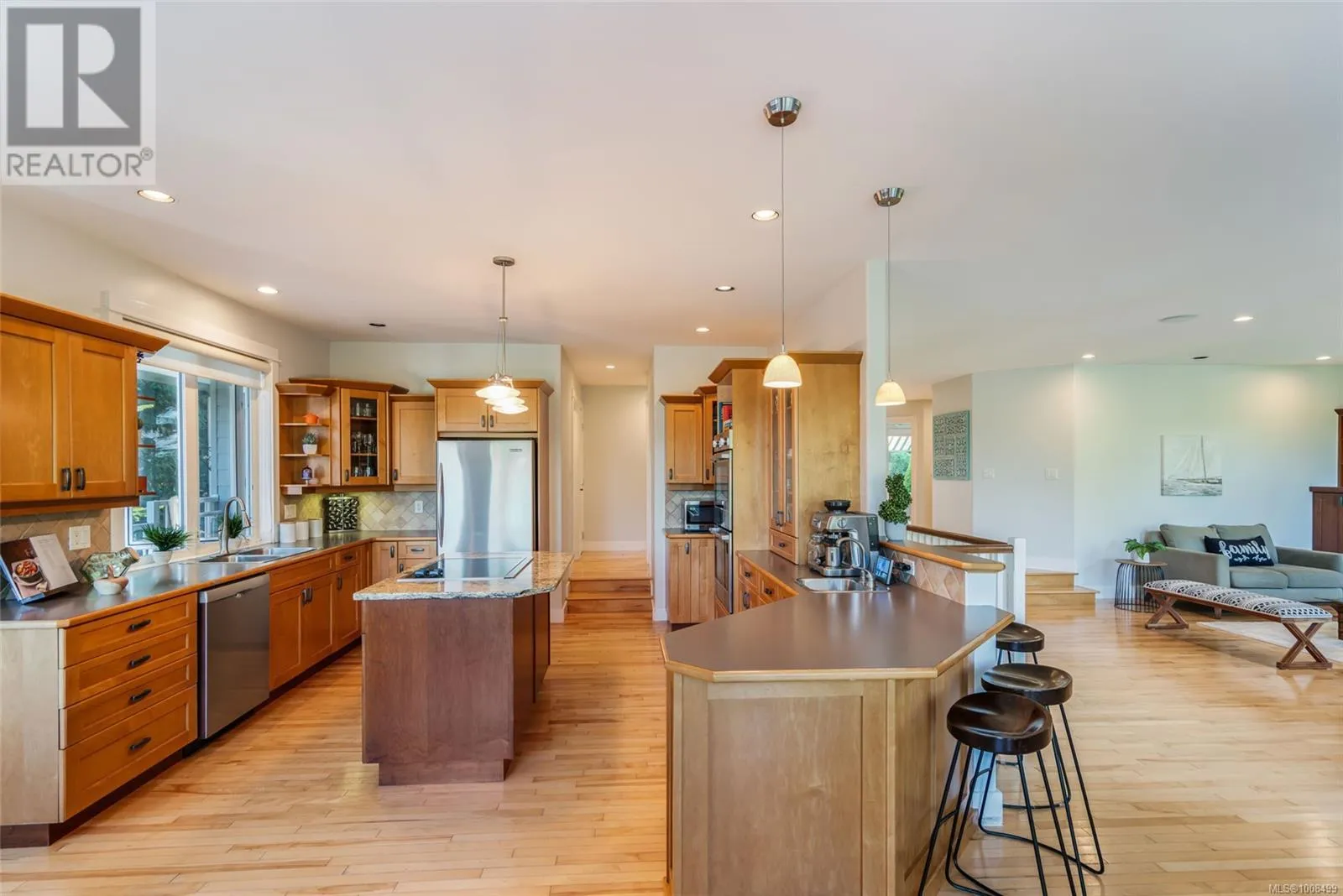 Discover the privacy & flexibility this immaculate custom-built rancher w/walk-out lower level offers, perfectly perched to capture distant views across the Fairwinds Golf Course. Situated on a professionally landscaped .45-acre lot, this elegant home offers a spacious, open plan designed for comfort & style. Enjoy hardwood floors, a gourmet kitchen w/double ovens, s/s appliances and walk-in pantry. Floor-to-ceiling windows w/ Hunter Douglas blinds frame the stunning vistas, while a wraparound deck invites outdoor relaxation. The main level features a serene primary suite w/ a private balcony, spa-inspired bath, walk-in closet, home office (or 2nd bedroom), laundry, & formal living/dining rooms w/thoughtful built-ins. The walk out level offers a full unauthorized suite w/3 bedrooms, 2 baths, kitchen, laundry, & living spaceâideal for guests, in-laws, or rental income. Double garage, mudroom, workshop, & 971 sq ft of storage complete this exceptional home. Hiking trails nearby. (id:27476)