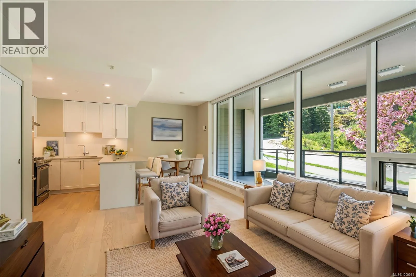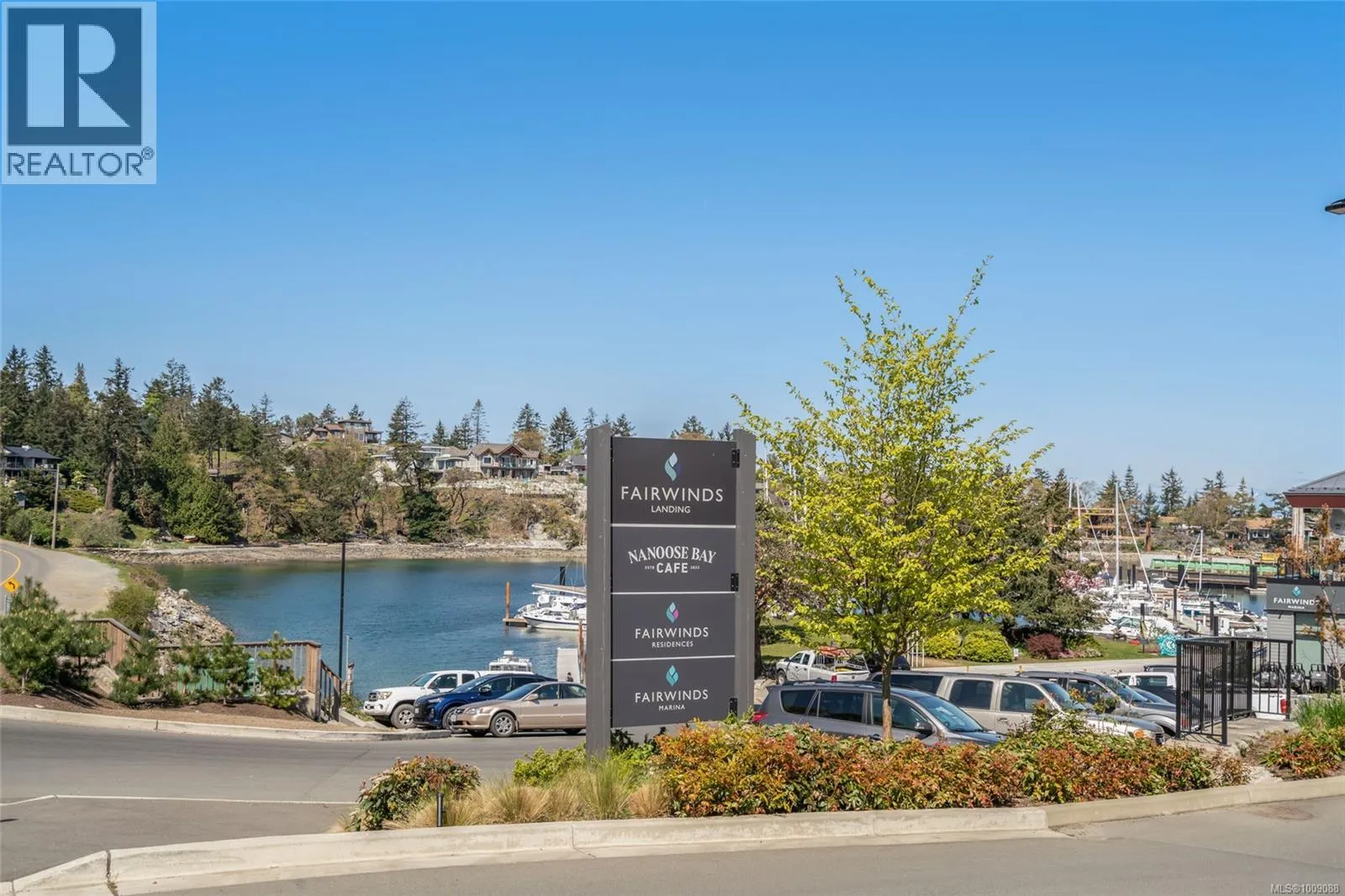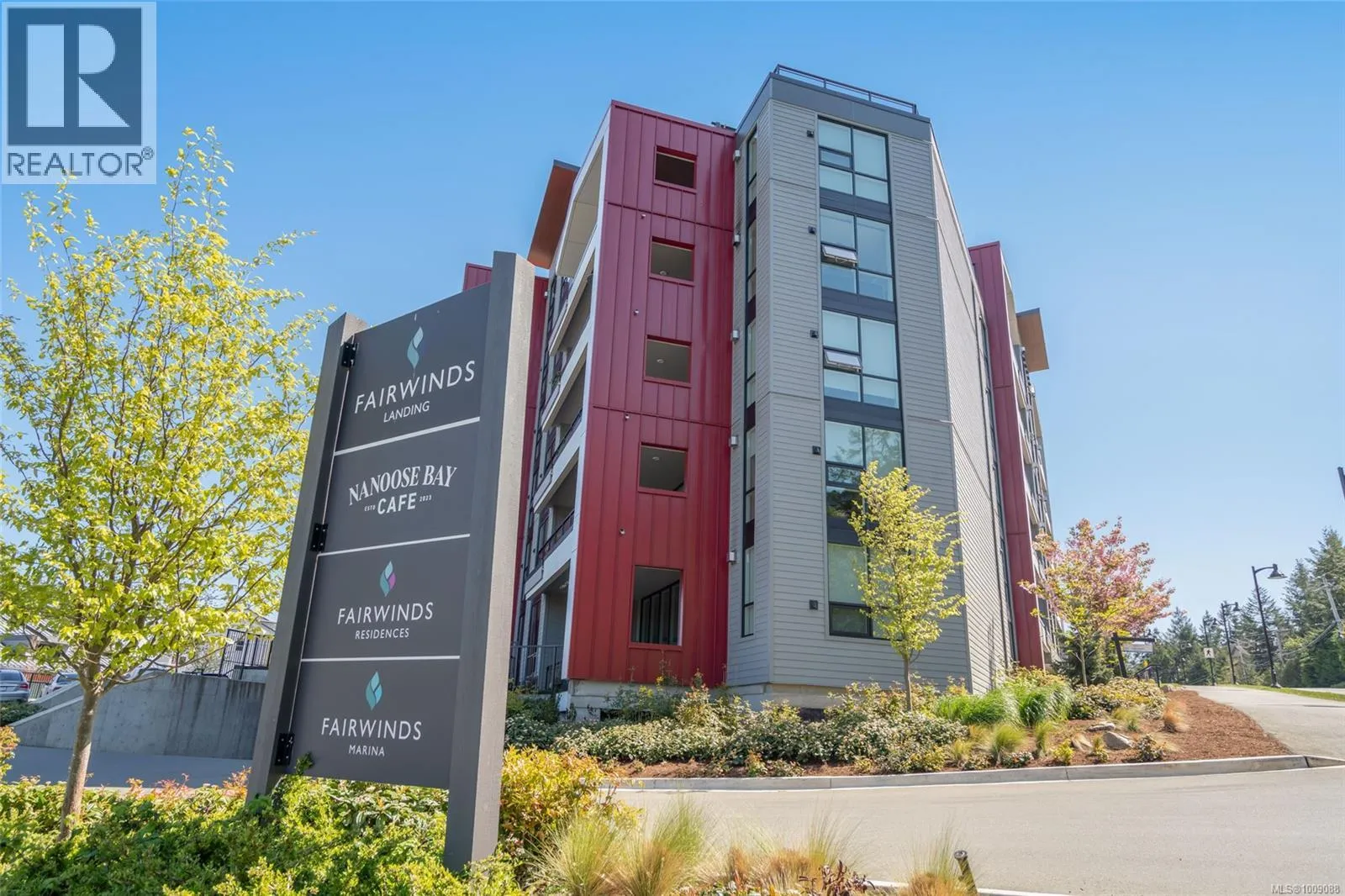 Fabulous Executive Condo in The Westerly at Fairwinds Landing! Imagine living in an upscale golf neighborhood bordered by the sun-soaked shores of mid-eastern Vancouver Island! Walk a few steps to the waterfront and launch your kayak from the marina, enjoy a challenging afternoon round at the neighboring golf course before walking to the nearby restaurant for some West Coast cuisine, or stroll to the shoreline and watch boats coming- and-going against a backdrop of world-class views of the Georgia Strait and distant mainland mountains. How lucky you are to live in this sun-soaked paradise! Be sure to view this like new 797 sqft 1 Bed + Den/1 Bath Executive Condo, offering a bright and spacious open-concept layout, high-end finishes, upgraded appliances, an oversized southwest-facing balcony, and a prime location in the only condominium tower within the prestigious 'Fairwinds Golf and Resort Community'. You are just steps away from Fairwinds Landing with a restaurant, coffee shop, and marina. You are also minutes from the Fairwinds Golf Course, beautiful parks with walking trails, a Rec Center with a pool and tennis courts, and a short drive to Parksville and North Nanaimo for shopping and amenities. The heart of this charming home is the open-concept Kitchen/Living/Dining Room with varied ceiling heights, engineered wood flooring, and a full wall of southwest-facing windows for abundant natural light. The cozy Living Room has a gas fireplace and access to a covered deck for year-round enjoyment. The Deluxe Kitchen offers quartz counters, shaker cabinetry, a breakfast bar, subway tile backsplash, and upgraded stainless appliances, including a 'Bosch' fridge and KitchenAid gas stove. The Primary Suite boasts a walk-in closet and a 4-pc ensuite. There's also a Den, a Laundry Closet, a storage locker, and underground parking. 'The Westerly' is pet-friendly and features secure entry, an Amenity Room, and lovely walking paths. Visit our website for more info. (id:27476)