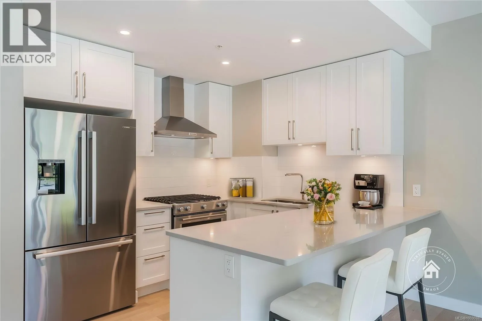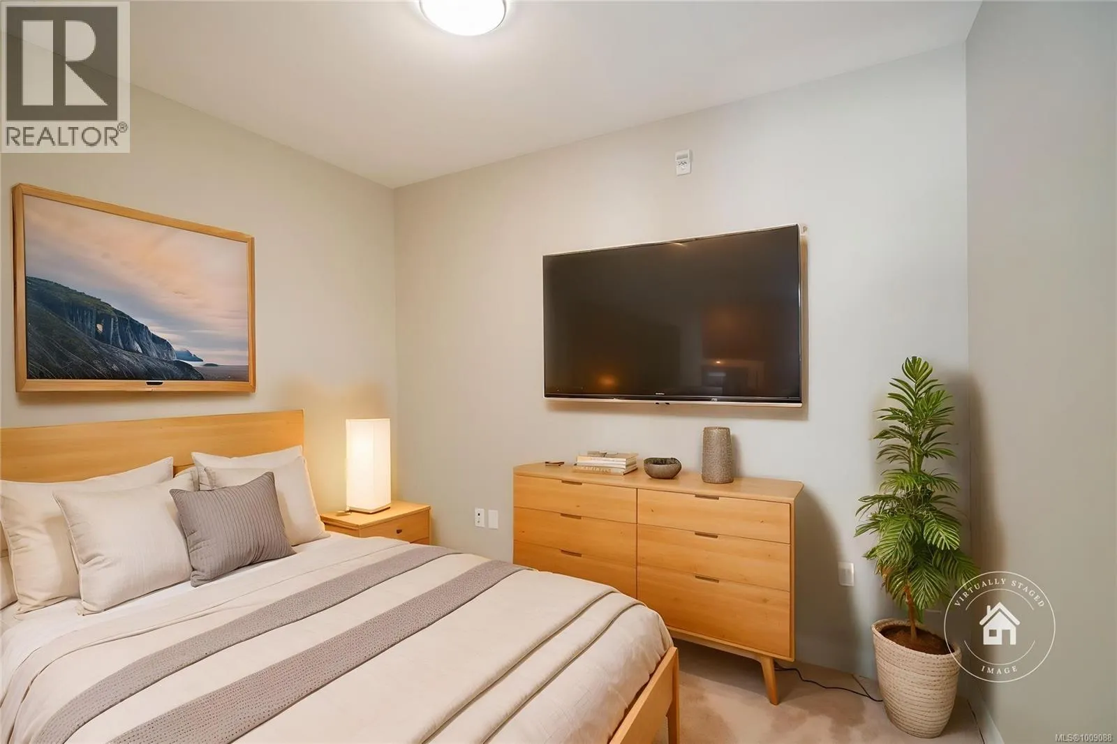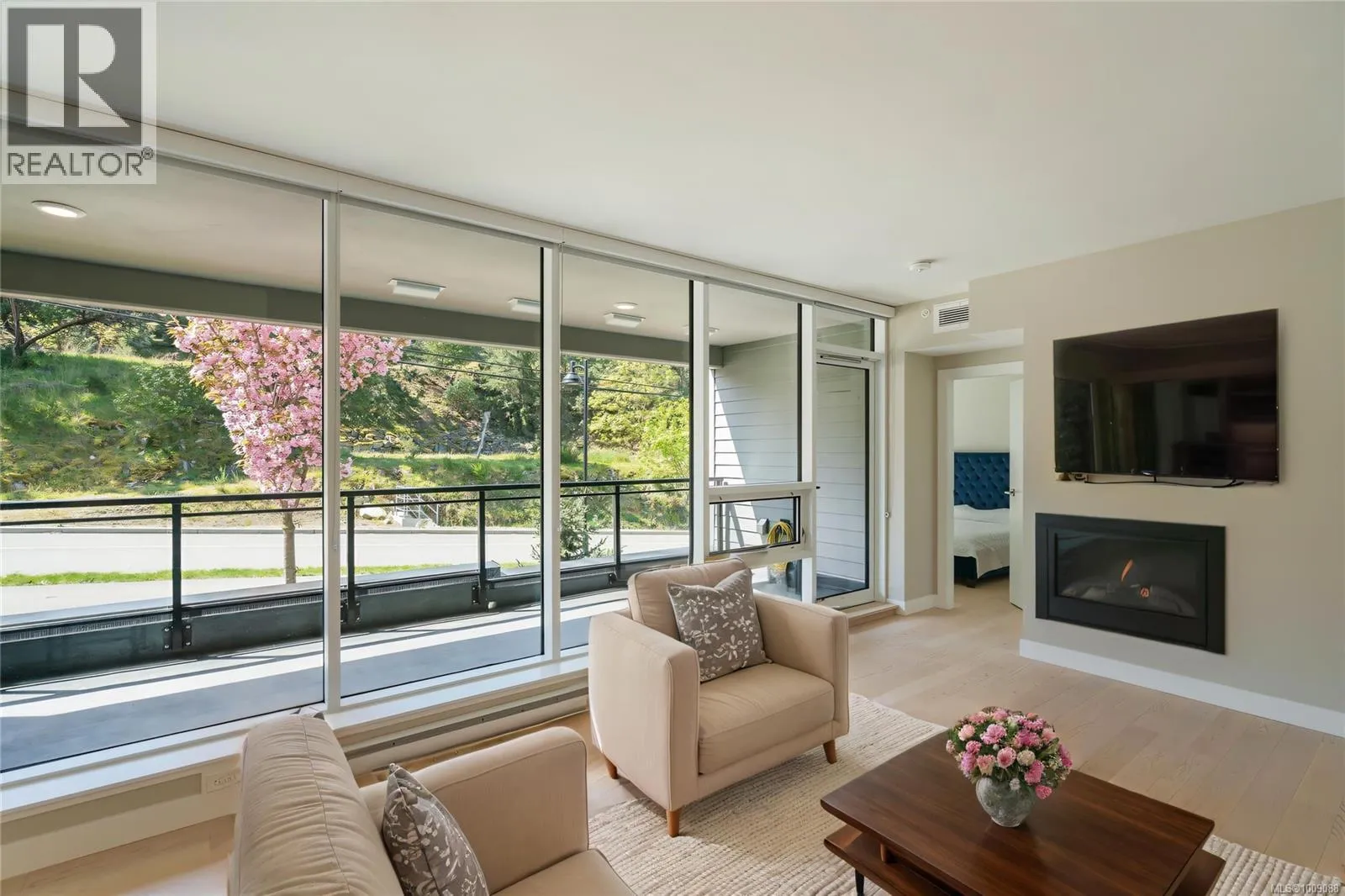 Fabulous Executive Condo in The Westerly at Fairwinds Landing! Imagine living in an upscale golf neighborhood bordered by the sun-soaked shores of mid-eastern Vancouver Island! Walk a few steps to the waterfront and launch your kayak from the marina, enjoy a challenging afternoon round at the neighboring golf course before walking to the nearby restaurant for some West Coast cuisine, or stroll to the shoreline and watch boats coming- and-going against a backdrop of world-class views of the Georgia Strait and distant mainland mountains. How lucky you are to live in this sun-soaked paradise! Be sure to view this like new 797 sqft 1 Bed + Den/1 Bath Executive Condo, offering a bright and spacious open-concept layout, high-end finishes, upgraded appliances, an oversized southwest-facing balcony, and a prime location in the only condominium tower within the prestigious 'Fairwinds Golf and Resort Community'. You are just steps away from Fairwinds Landing with a restaurant, coffee shop, and marina. You are also minutes from the Fairwinds Golf Course, beautiful parks with walking trails, a Rec Center with a pool and tennis courts, and a short drive to Parksville and North Nanaimo for shopping and amenities. The heart of this charming home is the open-concept Kitchen/Living/Dining Room with varied ceiling heights, engineered wood flooring, and a full wall of southwest-facing windows for abundant natural light. The cozy Living Room has a gas fireplace and access to a covered deck for year-round enjoyment. The Deluxe Kitchen offers quartz counters, shaker cabinetry, a breakfast bar, subway tile backsplash, and upgraded stainless appliances, including a 'Bosch' fridge and KitchenAid gas stove. The Primary Suite boasts a walk-in closet and a 4-pc ensuite. There's also a Den, a Laundry Closet, a storage locker, and underground parking. 'The Westerly' is pet-friendly and features secure entry, an Amenity Room, and lovely walking paths. Visit our website for more info. (id:27476)