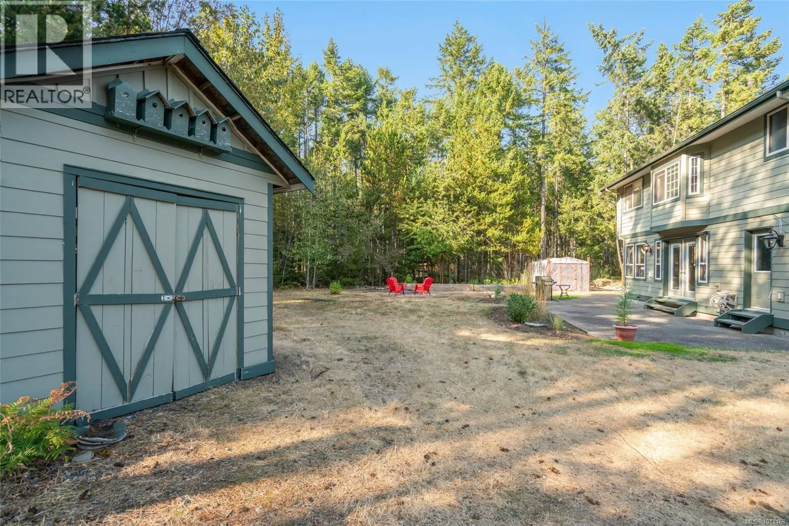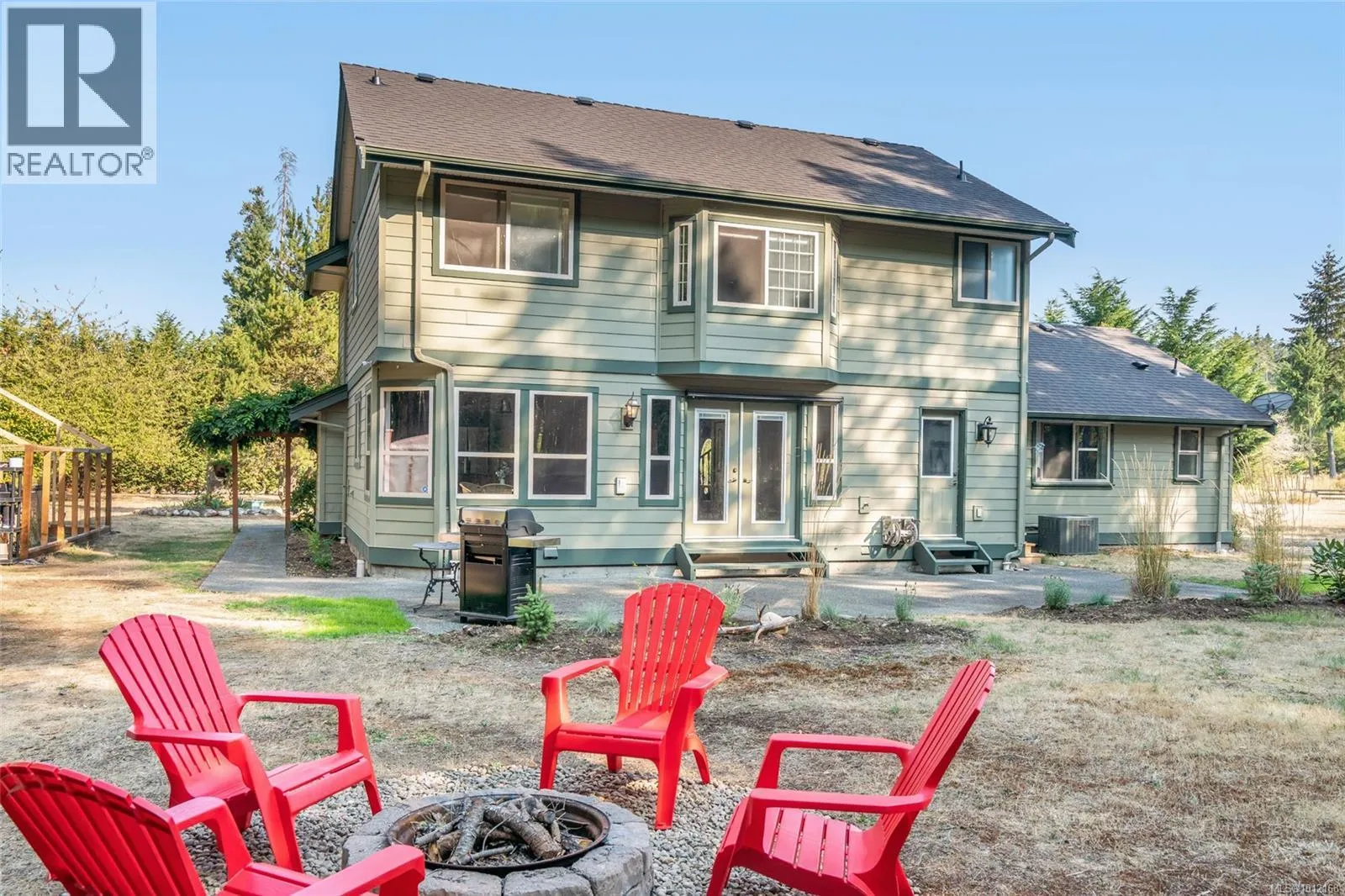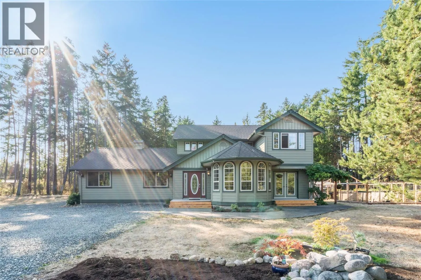 Impressive Rivers Edge Country Acreage! Fabulously located on mid-eastern Vancouver Island along the Englishman River lies the prestigious community of âRivers Edge,â a peaceful subdivision of upscale acreages. Here youâll find this Custom 2630 sqft 3 Bed/4 Bath Family Home with a separate Guest Suite, perfectly set on a sprawling 2.60-acre parcel. This stylish abode boasts contemporary fixtures and finishing, abundant windows framing acreage views, great guest accommodations, superb outdoor living space, ample parking including an RV spot with sani dump, a Greenhouse and garden area, and an unbeatable location just minutes from Parksvilleâs shopping and amenities. An extended drive winds through grassy fields past a charming pond to the parking area of this captivating home set amid towering trees and open skies. An east-facing semi-circle front patio is perfect for morning coffee or shaded relaxation. Inside, the tiled foyer with stone feature wall leads to the formal Living Room with oak floors, an elec fireplace, and arched windows framing serene views. The open Kitchen/Dining Room is bright and stylish, with wainscoting, abundant windows, and a 4-piece Contemporary Kitchen featuring porcelain tile flooring, wood cabinetry, stainless appliances, pantry, and bay-windowed breakfast nook. Dining Room with hutch alcove and door to massive 475 sqft patio, ideal for entertaining. The west-facing backyard offers privacy, grass, and a fire pit. Main-level amenities include a Laundry Room with walk-through closets, a Powder Room, and an Office/Den. Upstairs, the Primary Suite has oak floors, cathedral ceiling, bay window, makeup vanity with beverage fridge, custom walk-in closet, and a 5-piece spa ensuite. Two additional Bedrooms share a 4-piece Bath. A main-level Guest Suite with living area and 4-piece Bath offers flexible use. The property also features a sun-soaked garden with greenhouse, raised beds, and a shed. Visit our website for more info. (id:27476)