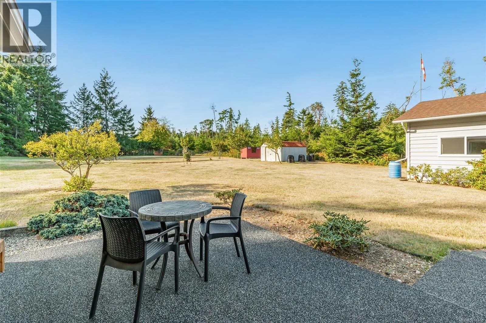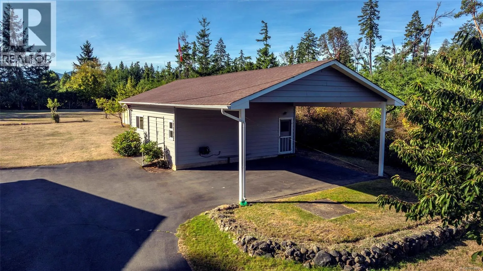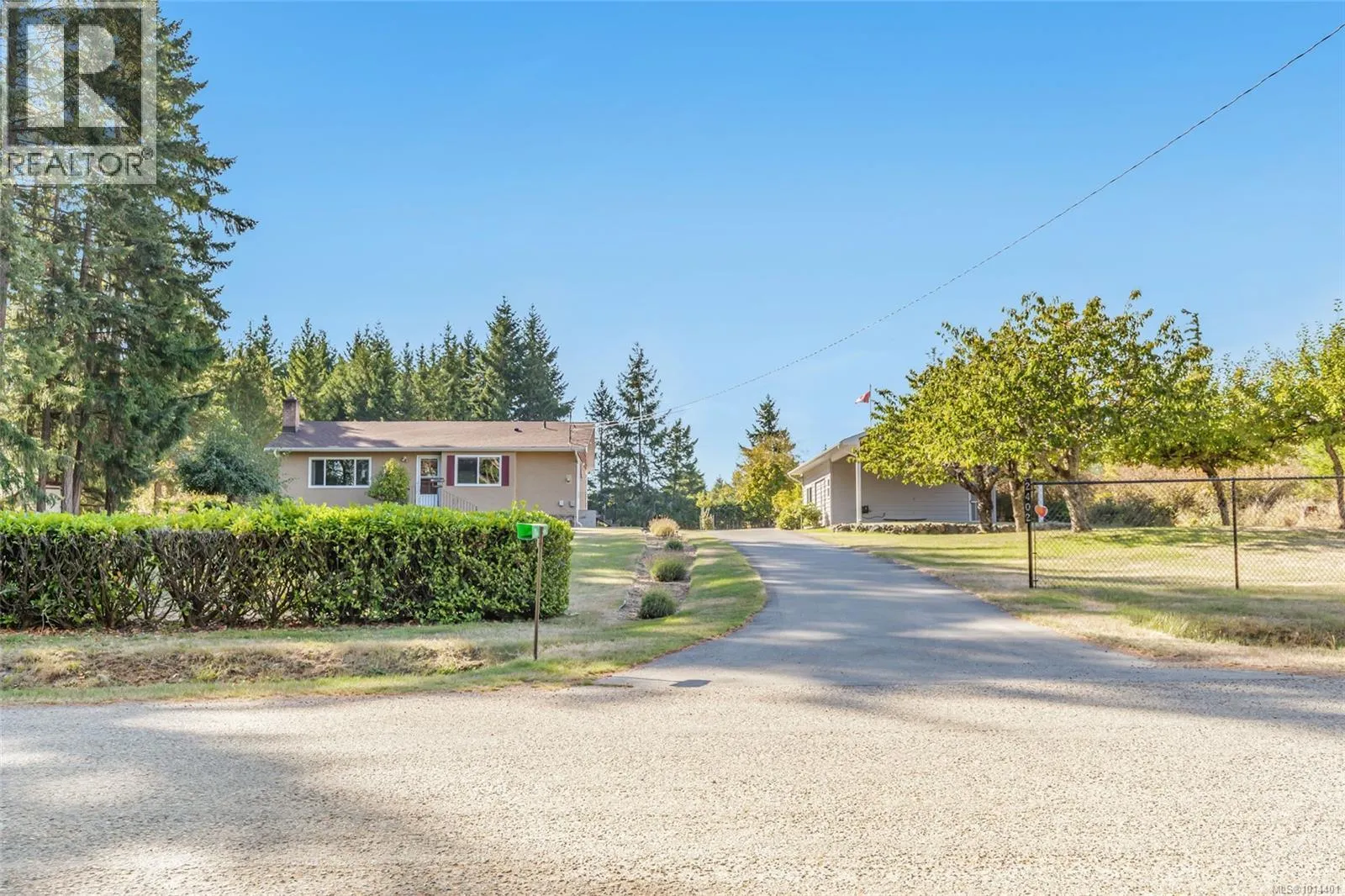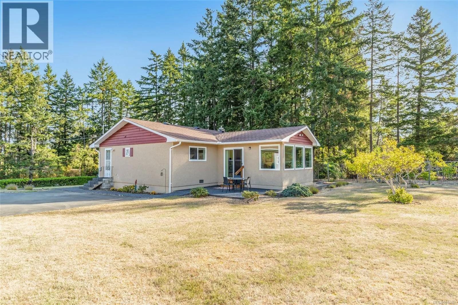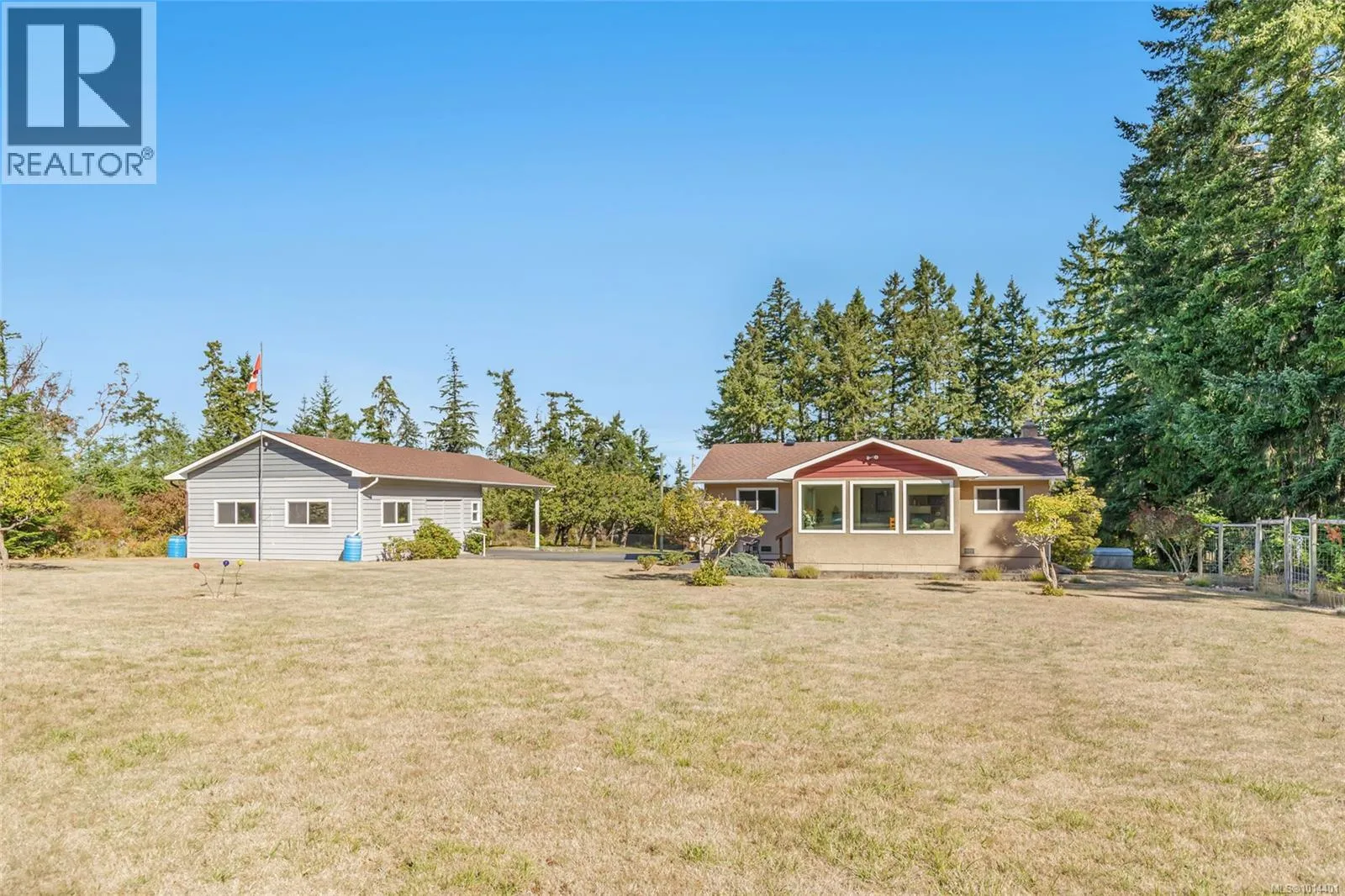 Inspiring Nanoose Bay Acreage! Nestled in a peaceful rural setting in beautiful Nanoose Bay, just 15 minutes from Parksville and North Nanaimo, you will find this sun-soaked 1.19- acre parcel of land hosting a charming 1358?sqft 3?Bed/1?Bath Rancher plus a detached 1?Bed Guest Suite/Workshop. The home boasts an easy-care one-level layout, thoughtful updates including a recently replaced roof, and a south-facing patio with a huge yard framed by tall trees. The acreage features a fenced garden area with fruit trees, ample parking, and flexible zoning. You will also enjoy quick access to shopping, amenities, pristine walking trails, beautiful beaches, and golfing. From a quiet no-through road, an entry drive leads to a generous parking area and this charming Rancher. The spacious Living Room has a large window and a red brick hearth with a propane fireplace for instant ambiance and warmth. To the right is a cozy eat-in Kitchen with wood cabinetry, a stove, fridge, and room for a breakfast table. Adjacent is the Laundry/Mud Room with shelving, dual closets, and an exterior door. A hallway leads to two sunny Bedrooms, a 4-piece Bath, and a Third Bedroom (currently a Dining Room) with access to a bright Family Room where five picture windows showcase the acreage and an electric fireplace adds ambiance. A door opens to a south-facing patio with western exposure, the perfect spot to soak up sunshine, host barbecues, enjoy sunset dinners, or simply relax and embrace the beauty of rural living. The patio looks onto a vast yard framed by towering trees. Steps away, a detached 1 Bed/1 Bath Guest Suite/Workshop features a Kitchen area, Bedroom, Bath, and a Workshop with cabinetry and shelving. The fenced garden area has a variety of fruit trees, incl apple, cherry, plum, pear, figs and grapes. RS-1 residential zoning allows a Home-Based Business, Secondary Suite, or additional accessory buildings. Picture-perfect and packed with potential! Visit our website for more info. (id:27476)