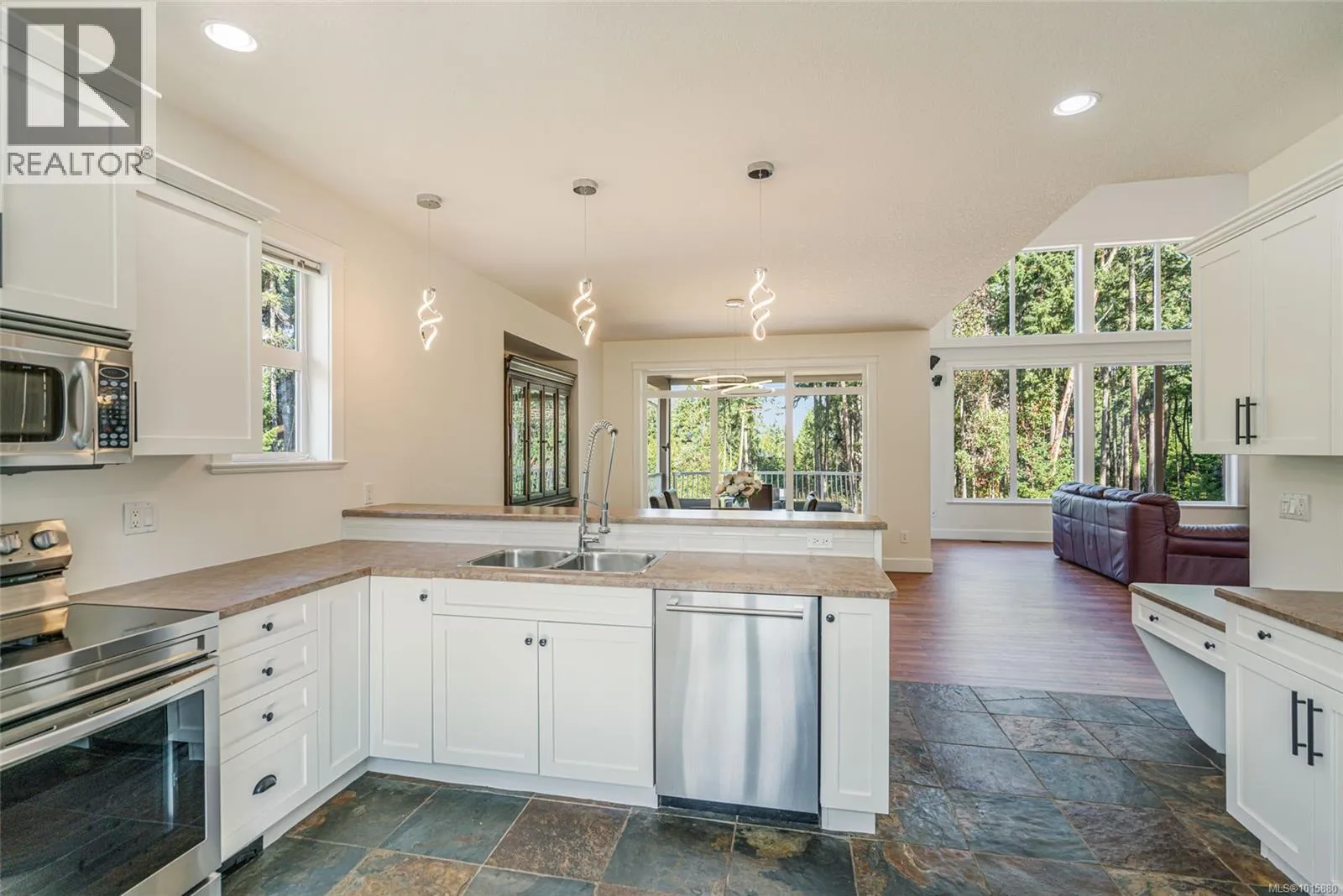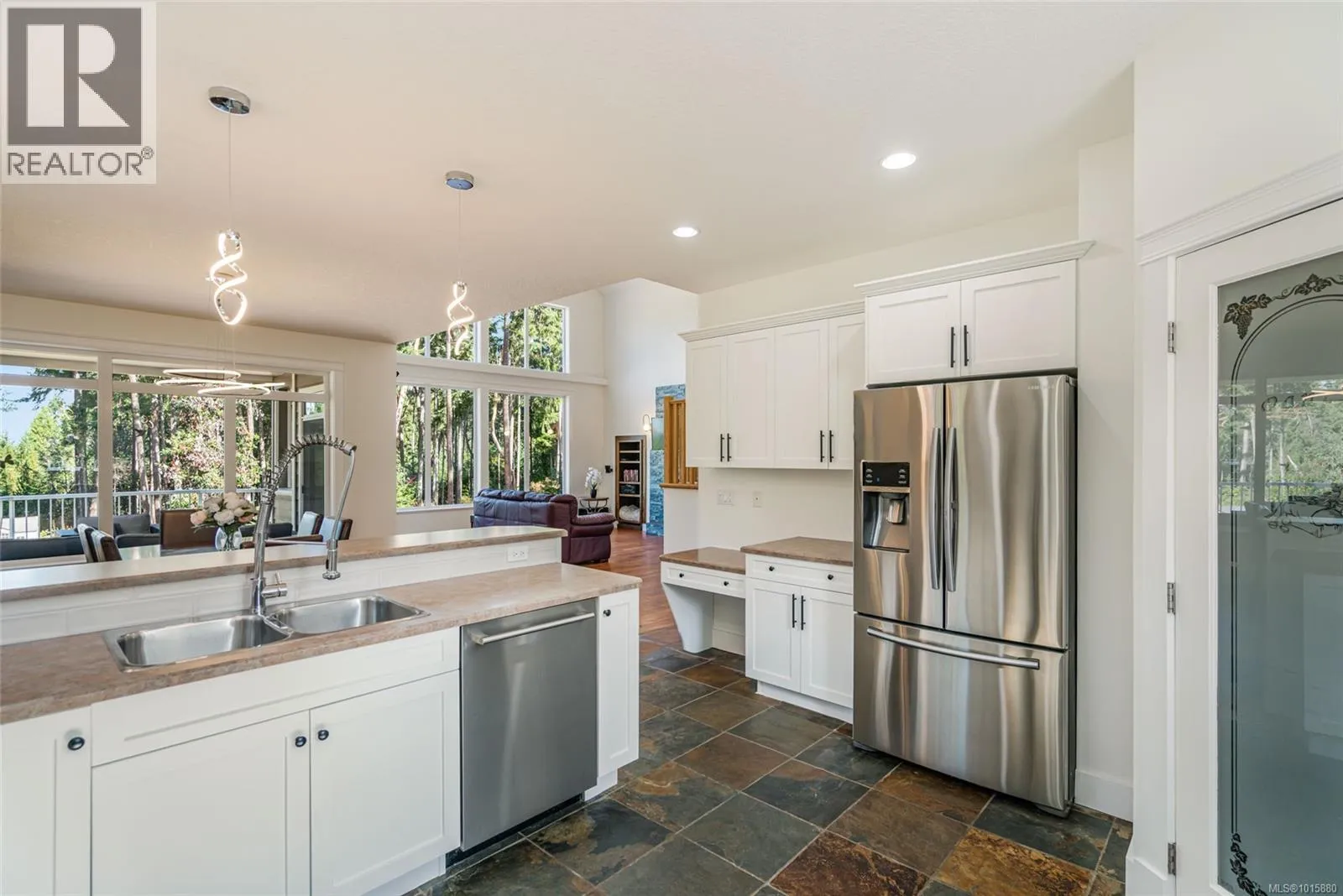 Resting on a private 2.5 acres, this generous Riverâs Edge Estate Home will delight every generation. A fully-fenced tranquil retreat, complete with meandering trail around your own private woods with mature Cedars, Douglas Fir, Arbutus, Hemlock and Pine trees. This spacious, quality home includes 4 bedrooms plus a den, with Primary on the main level. The Lower Level will surprise you with sizeable extra living space that could easily be converted into a suite for multi-generational living or additional rental income. A white and bright kitchen with walk-in pantry, stainless steel appliances, 2 balconies off the main level, Lennox heat pump, unlimited space for RV or boat parking and even room to Build a Shop completes the package, all located in the beautiful Natural community of Nanoose Bay. Vacation at home on spectacular Vancouver Island surrounded by Organic farms, fresh water, Sandy oceanside Beaches, Golf courses and the best climate in Canada. Live your Dream Today. (id:27476)